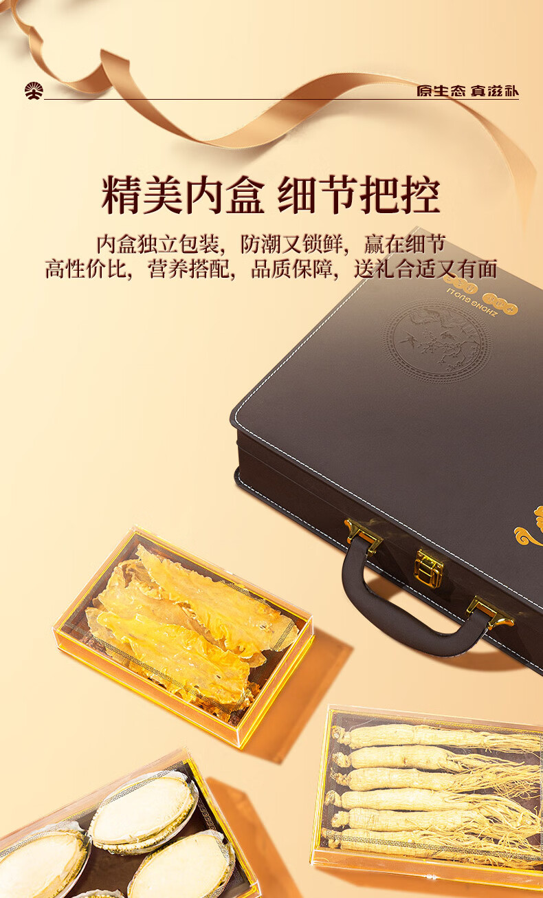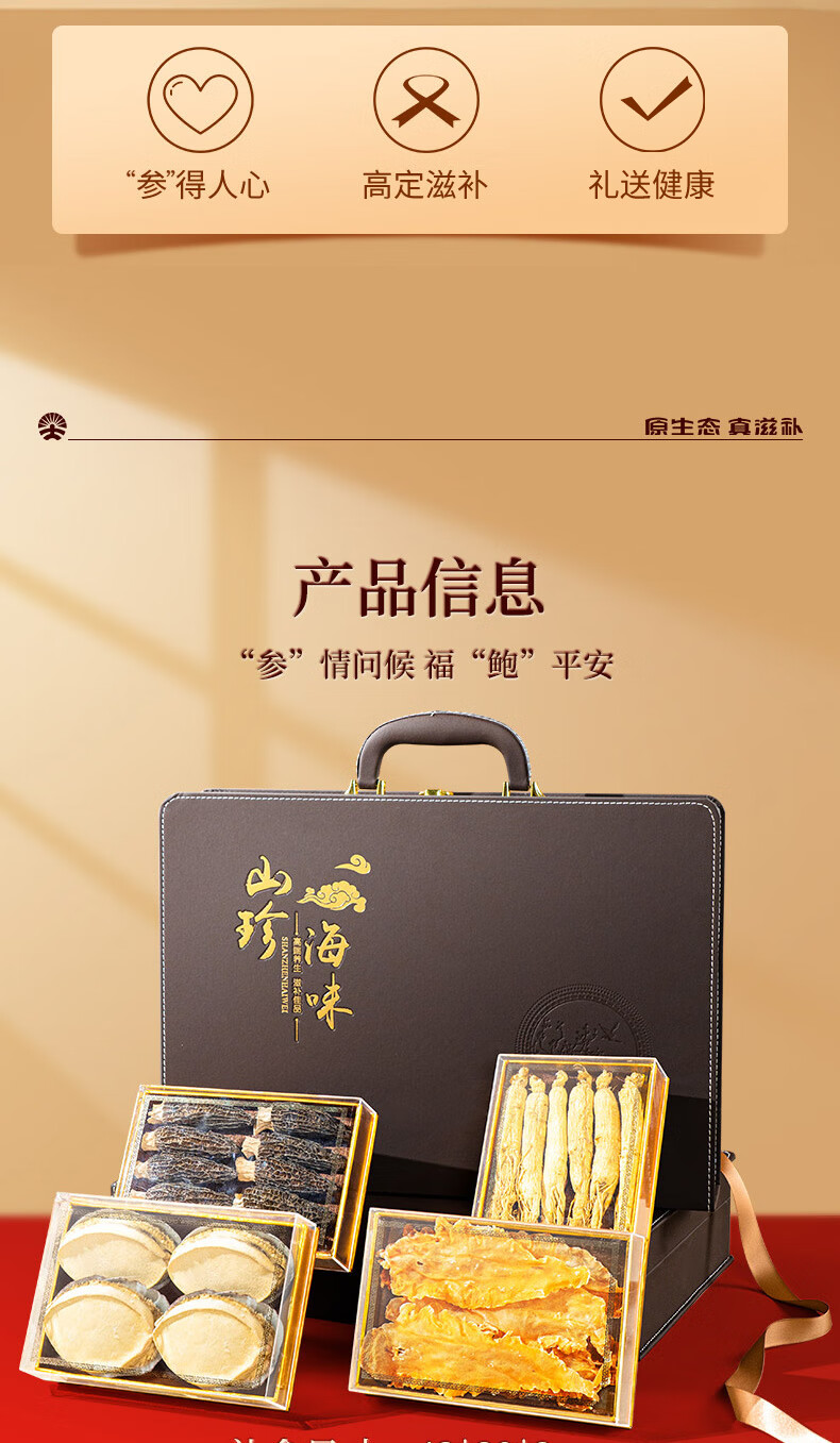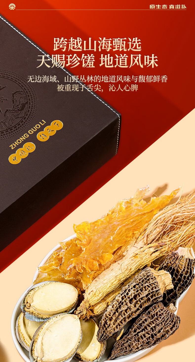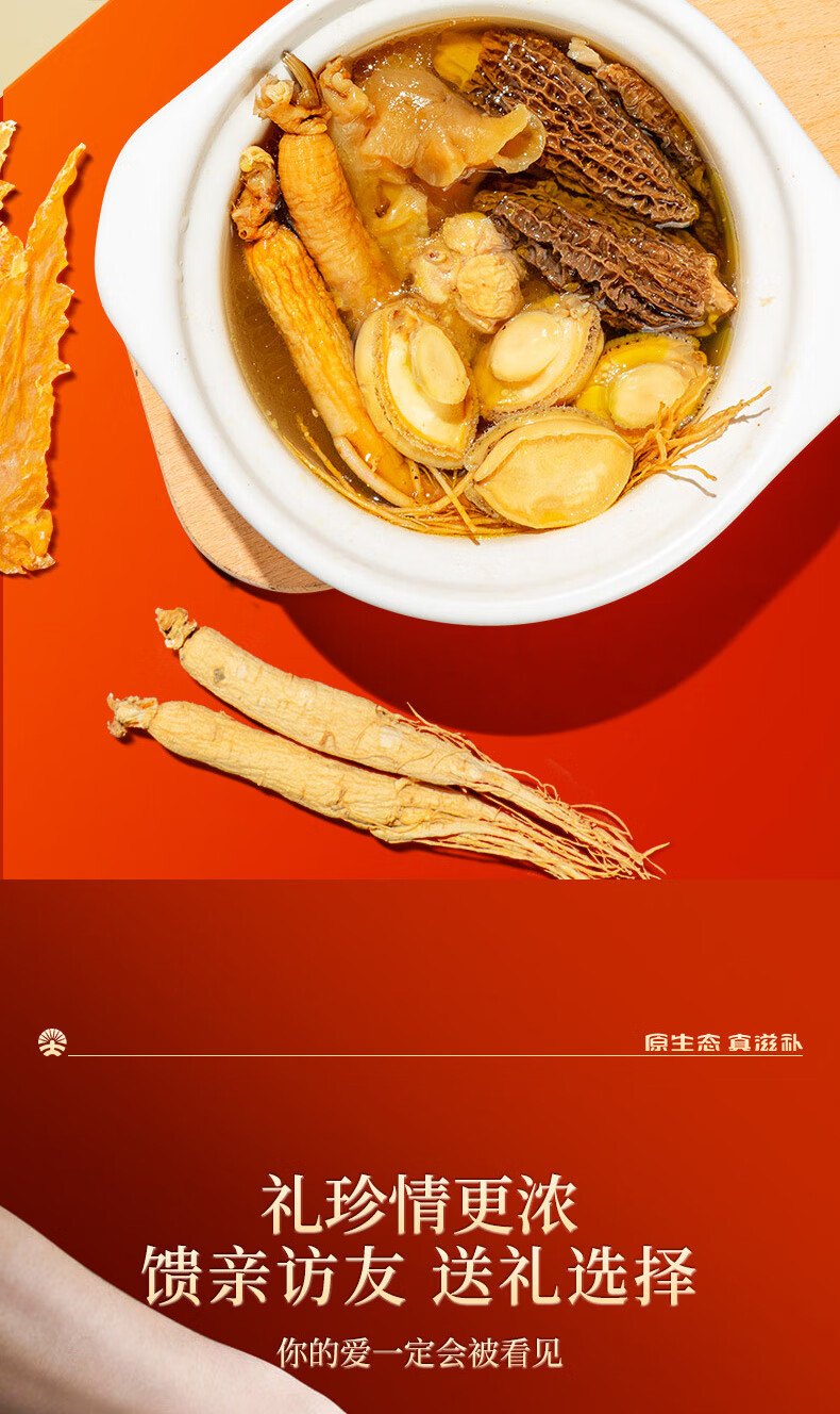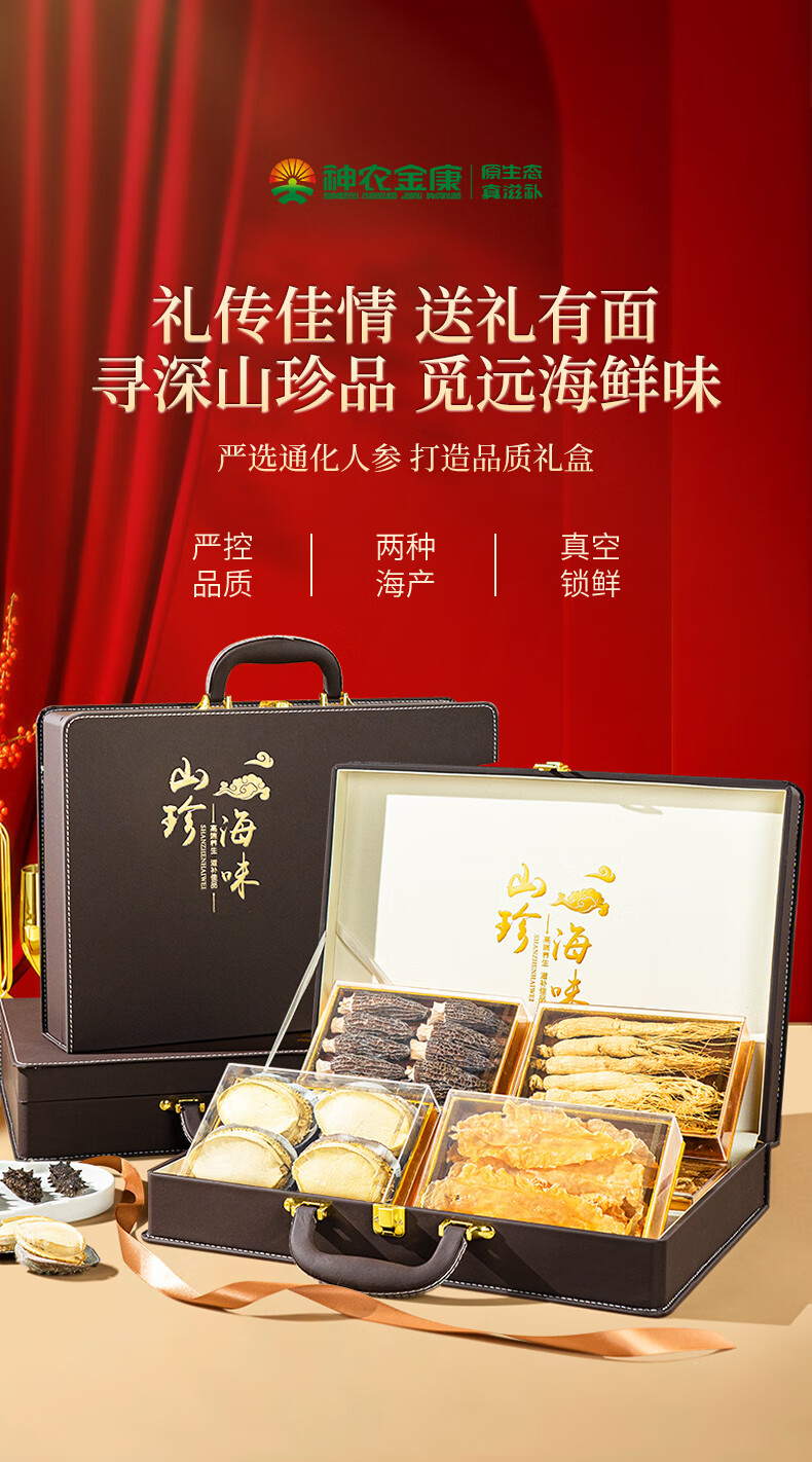 【礼盒】神农金康 鲍鱼鳕鱼胶羊肚菌人参海味山珍礼盒 220g 新中式滋补礼 原生态真滋补 喝护家人健康