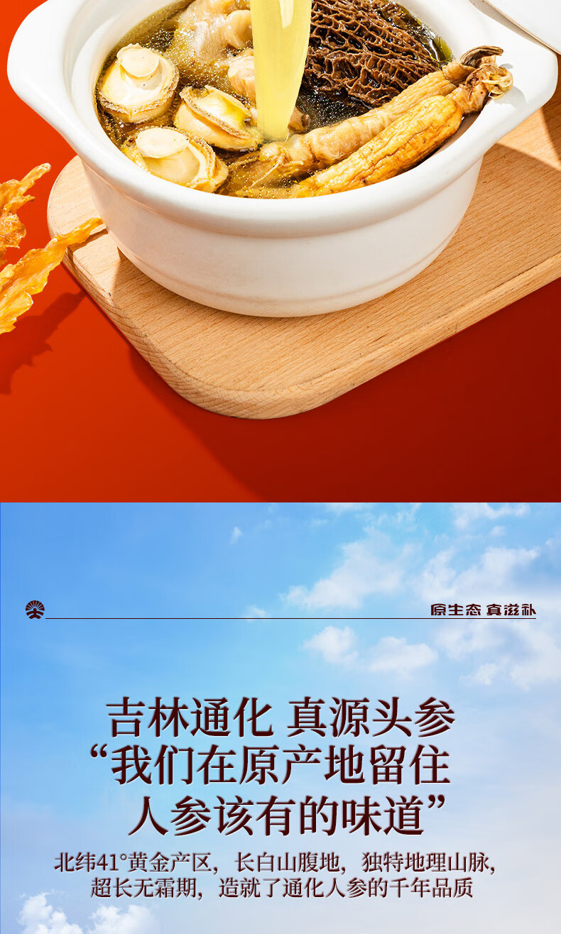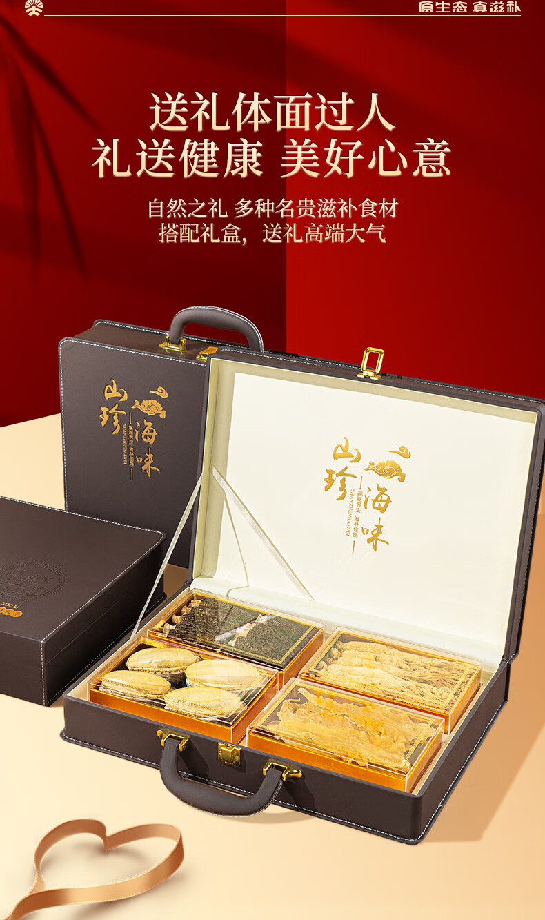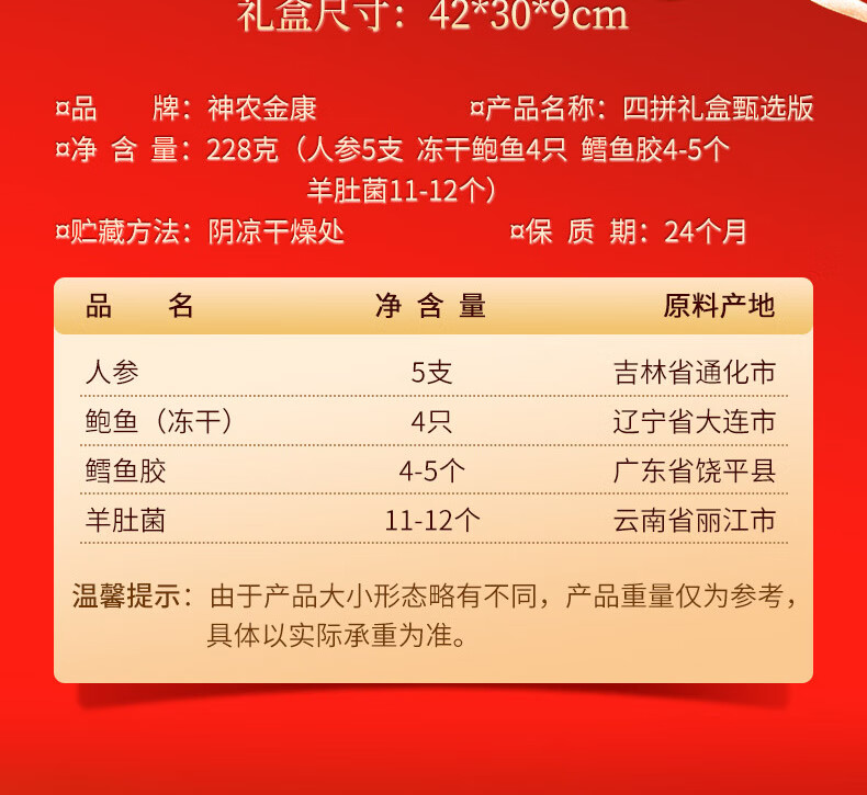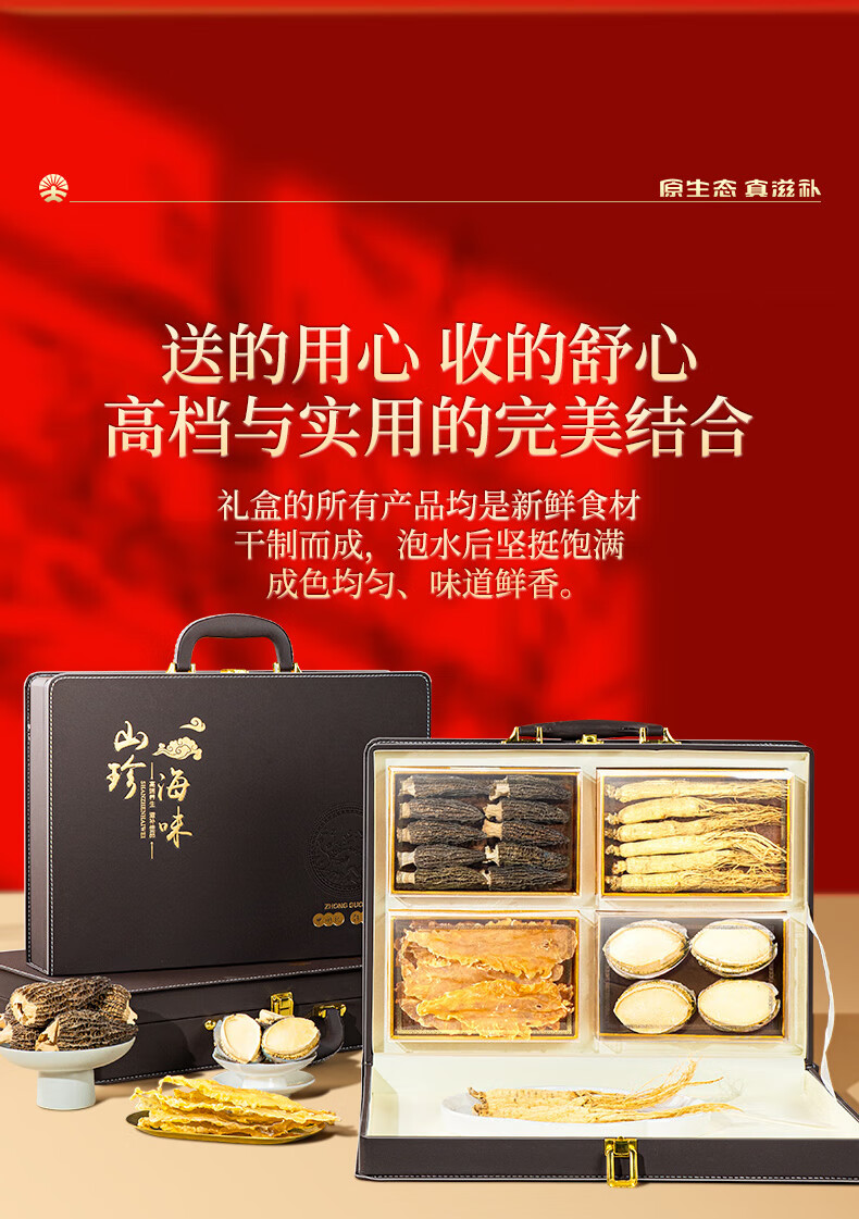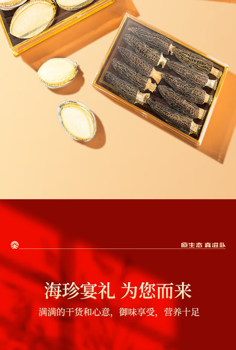 【礼盒】神农金康 鲍鱼鳕鱼胶羊肚菌人参海味山珍礼盒 220g 新中式滋补礼 原生态真滋补 喝护家人健康
