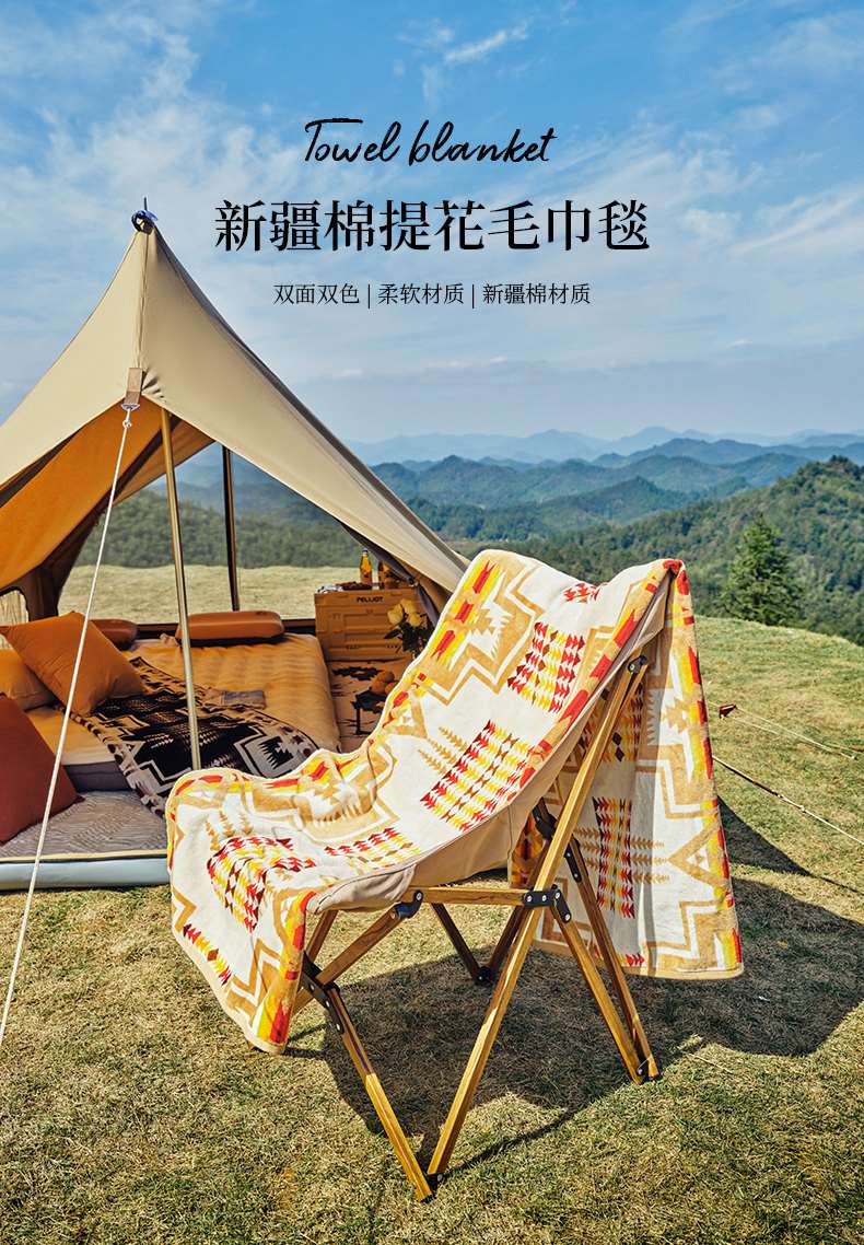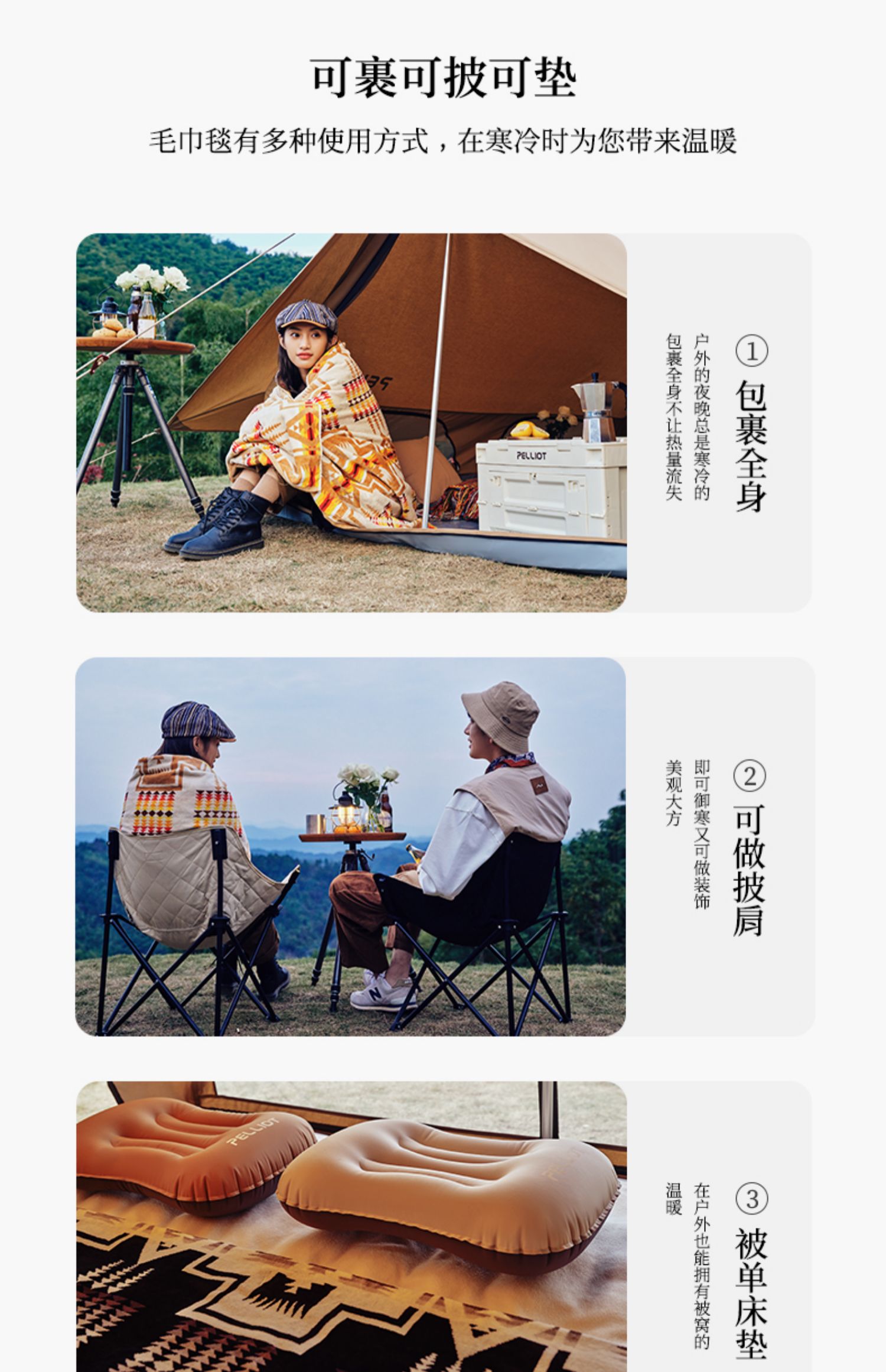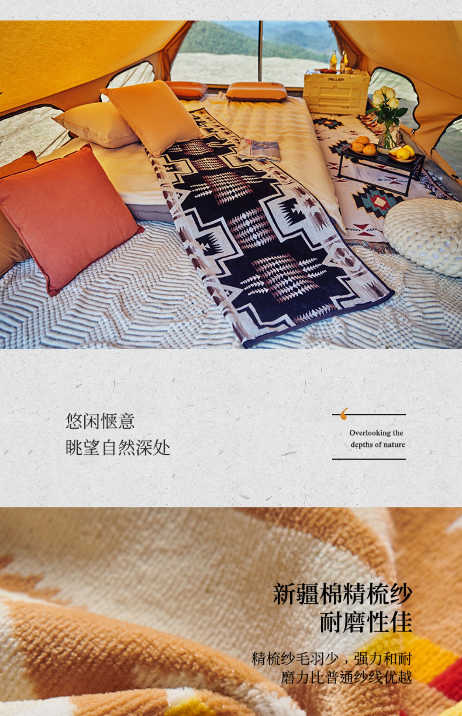伯希和户外露营毛巾毯子郊游加厚便携式野餐桌布多功能纯棉披肩女116102807