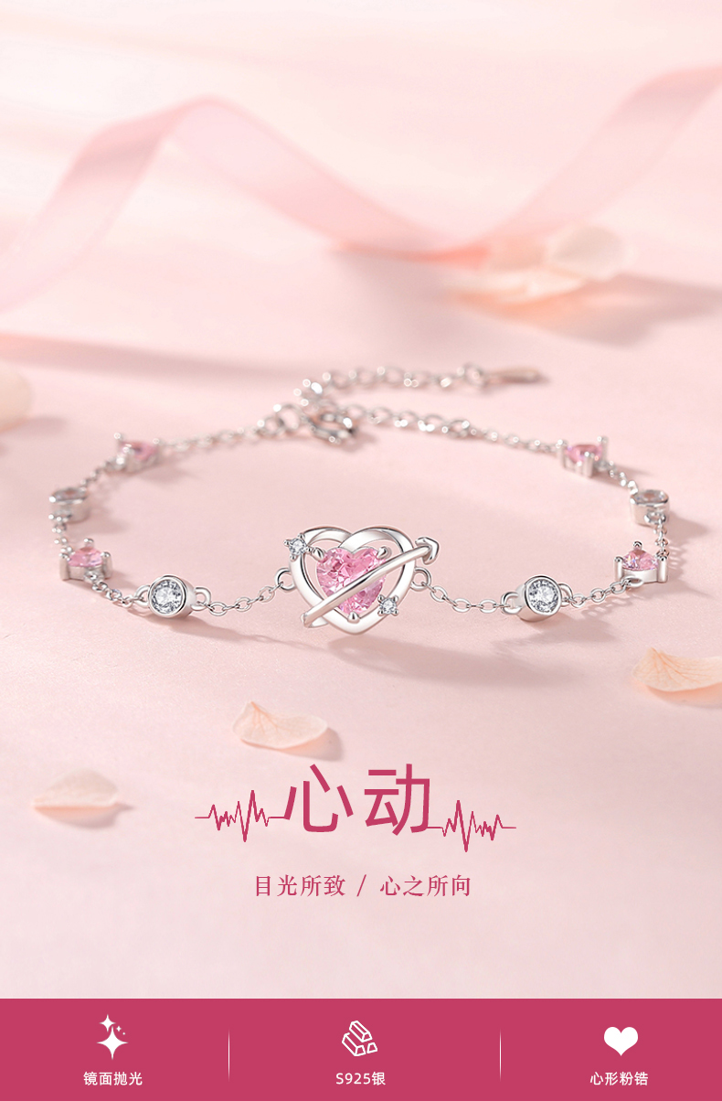 卡蒂罗/KADER 心之所向 心月相伴手链 轻奢爱心月亮满钻镶嵌 恋爱闺蜜生日礼盒装 穿搭高货配饰 925银
