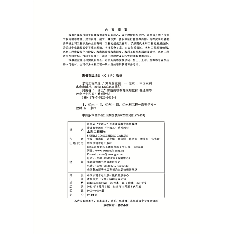 水利工程概论(河南省“十四五”普通高等教育规划教材 普通高等教育“十四五”系列教材)