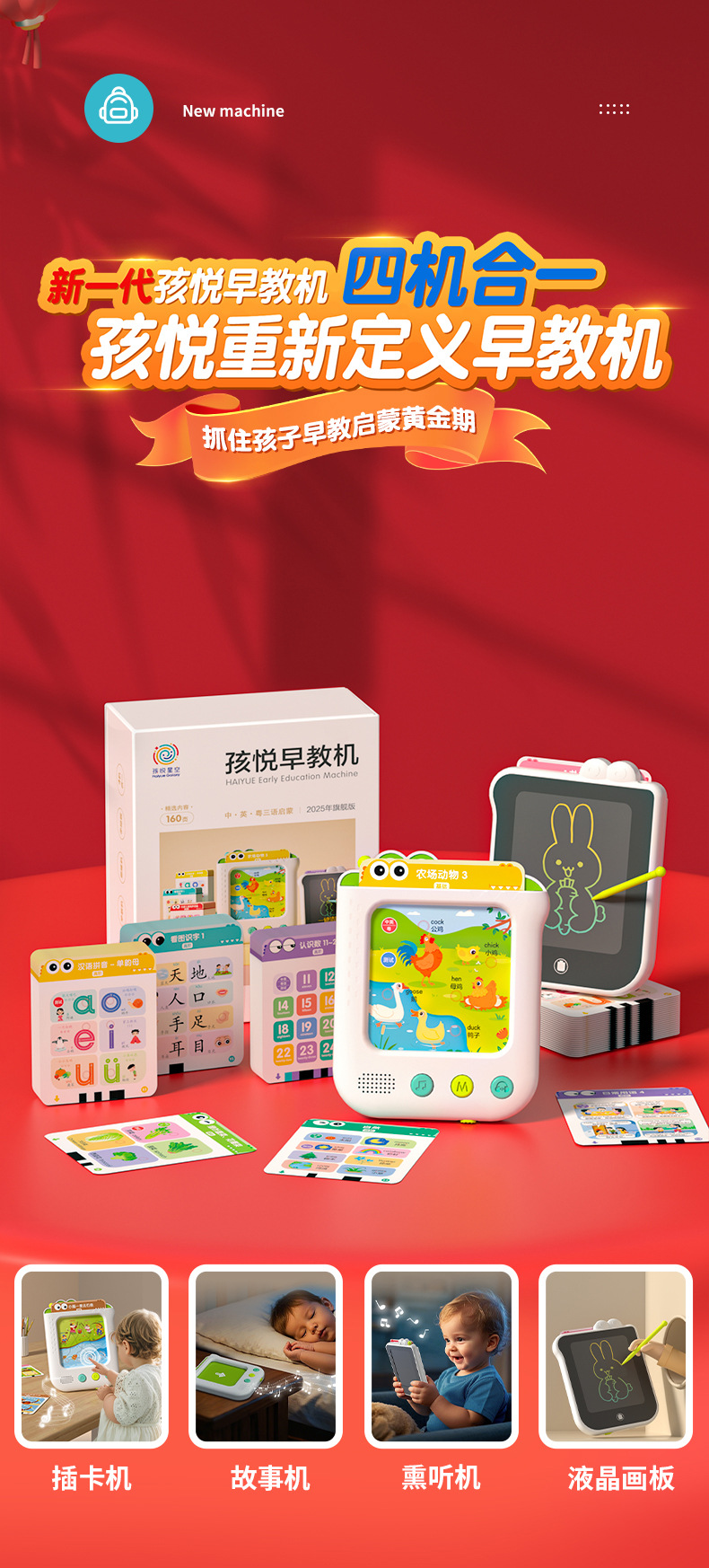神仙全能早教神器,1 机顶 4 机,宝宝的熏听机,故事机,液晶手写板,插卡早教机,一台满足孩子的多种早教场景需求!