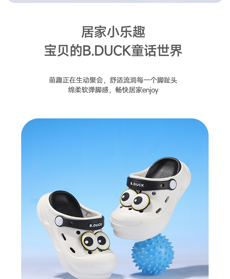B.Duck小黄鸭童鞋四季儿童凉拖鞋洞洞鞋22-34 B1515970