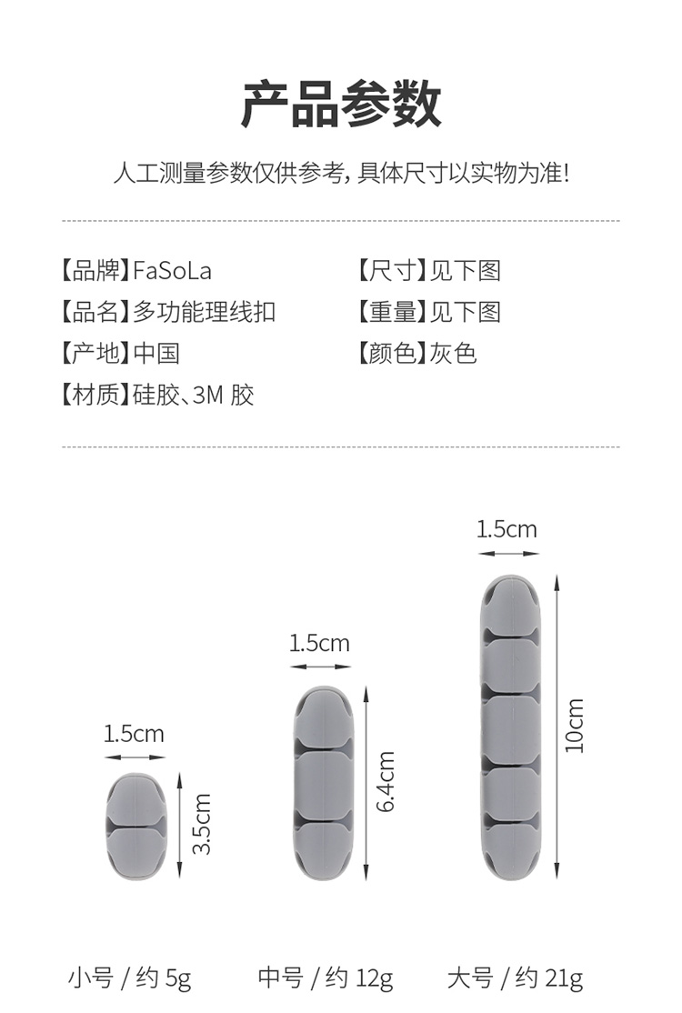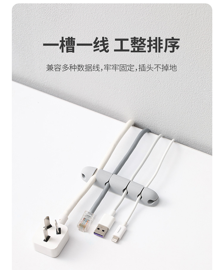 FaSoLa免打孔理线器桌面墙面粘贴无痕固线夹数据线网线收纳固定器