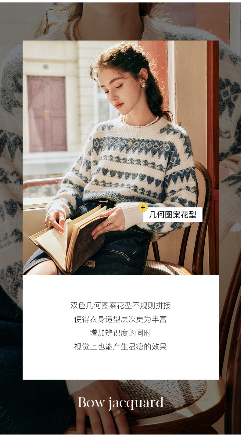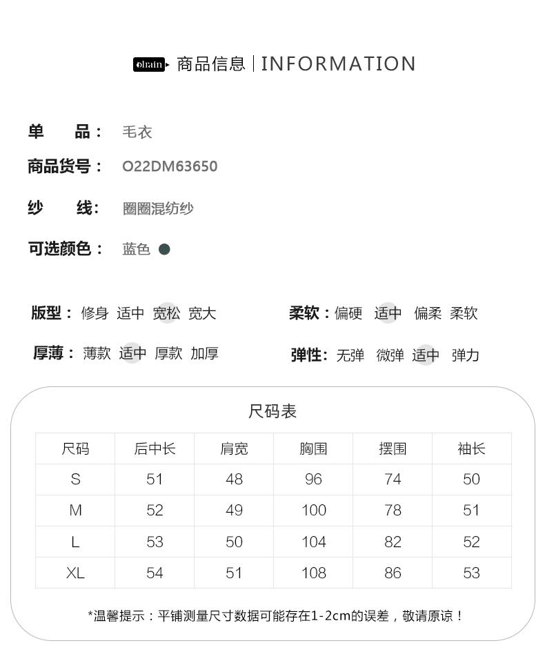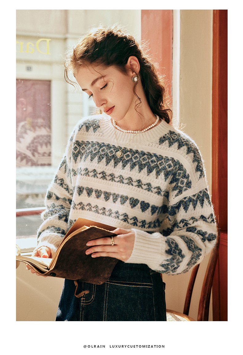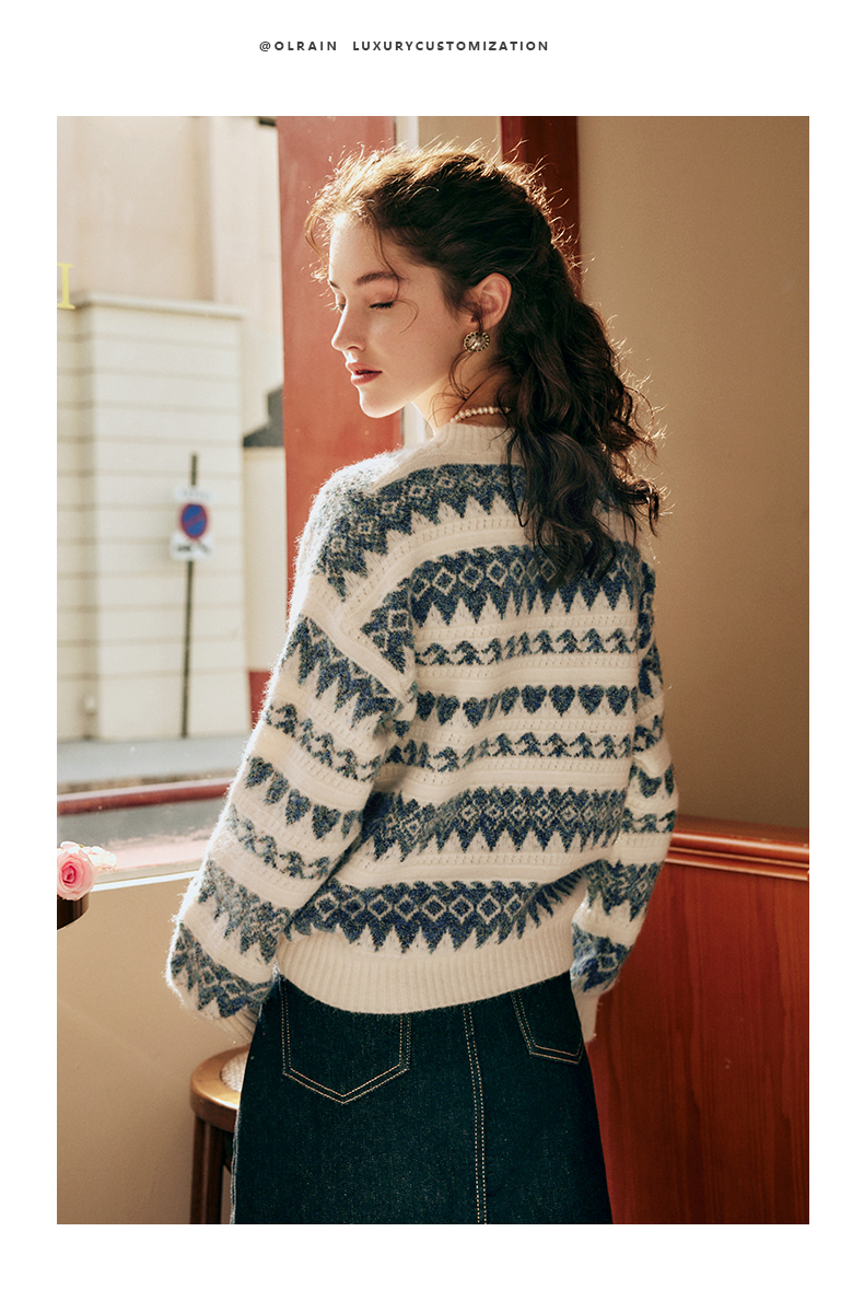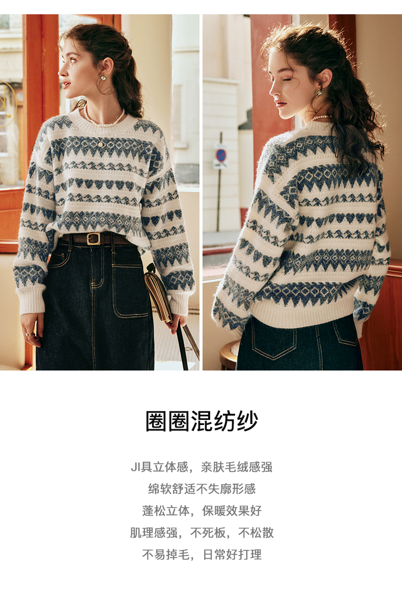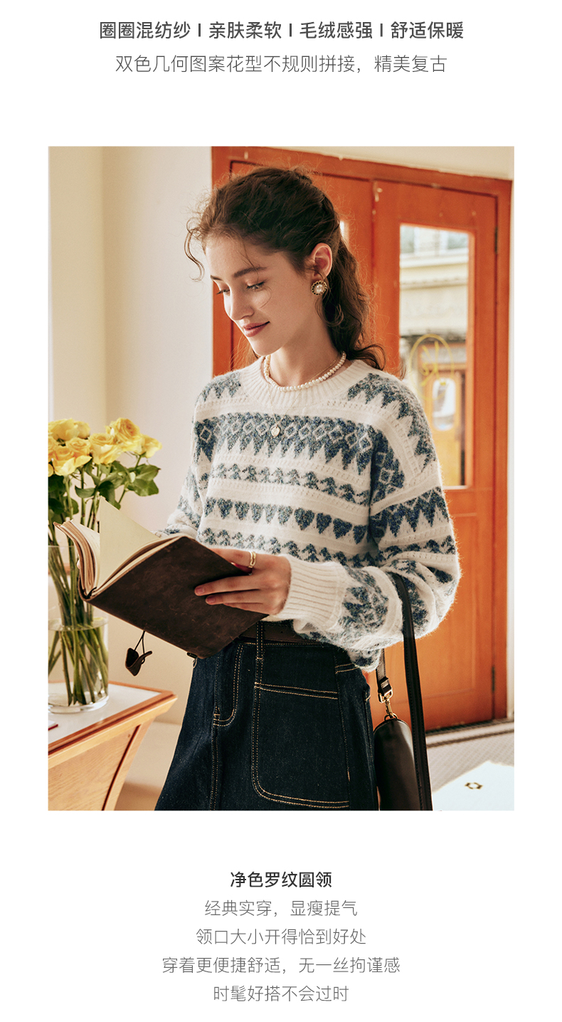 OLrain欧芮儿法式套头毛衣女秋季2023新款宽松慵懒复古毛绒针织衫