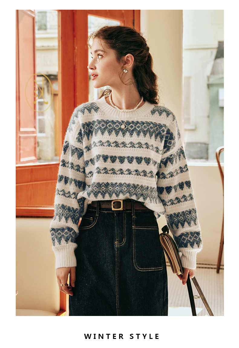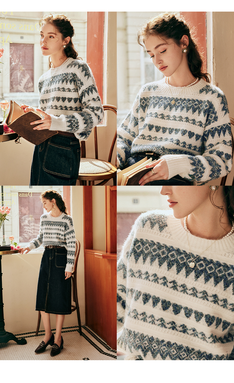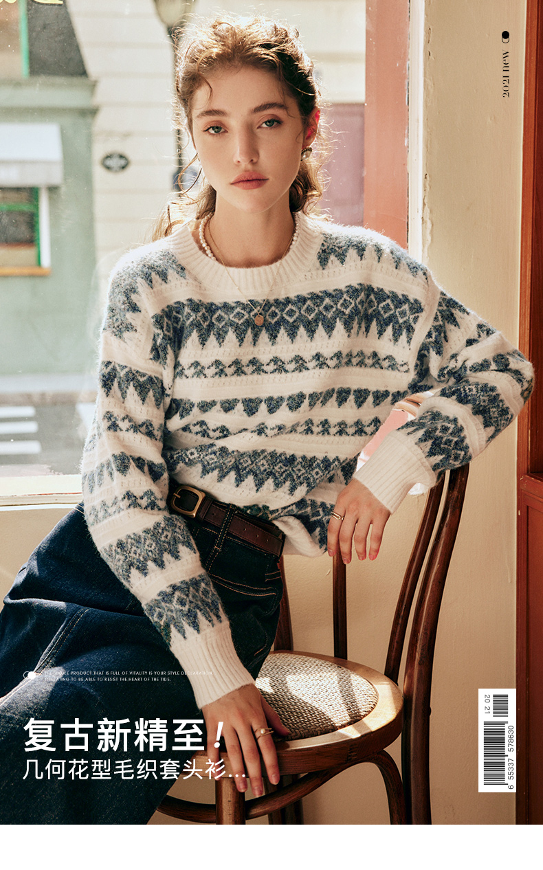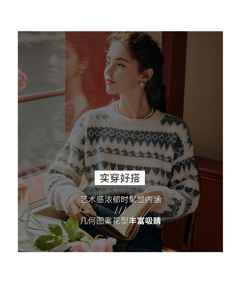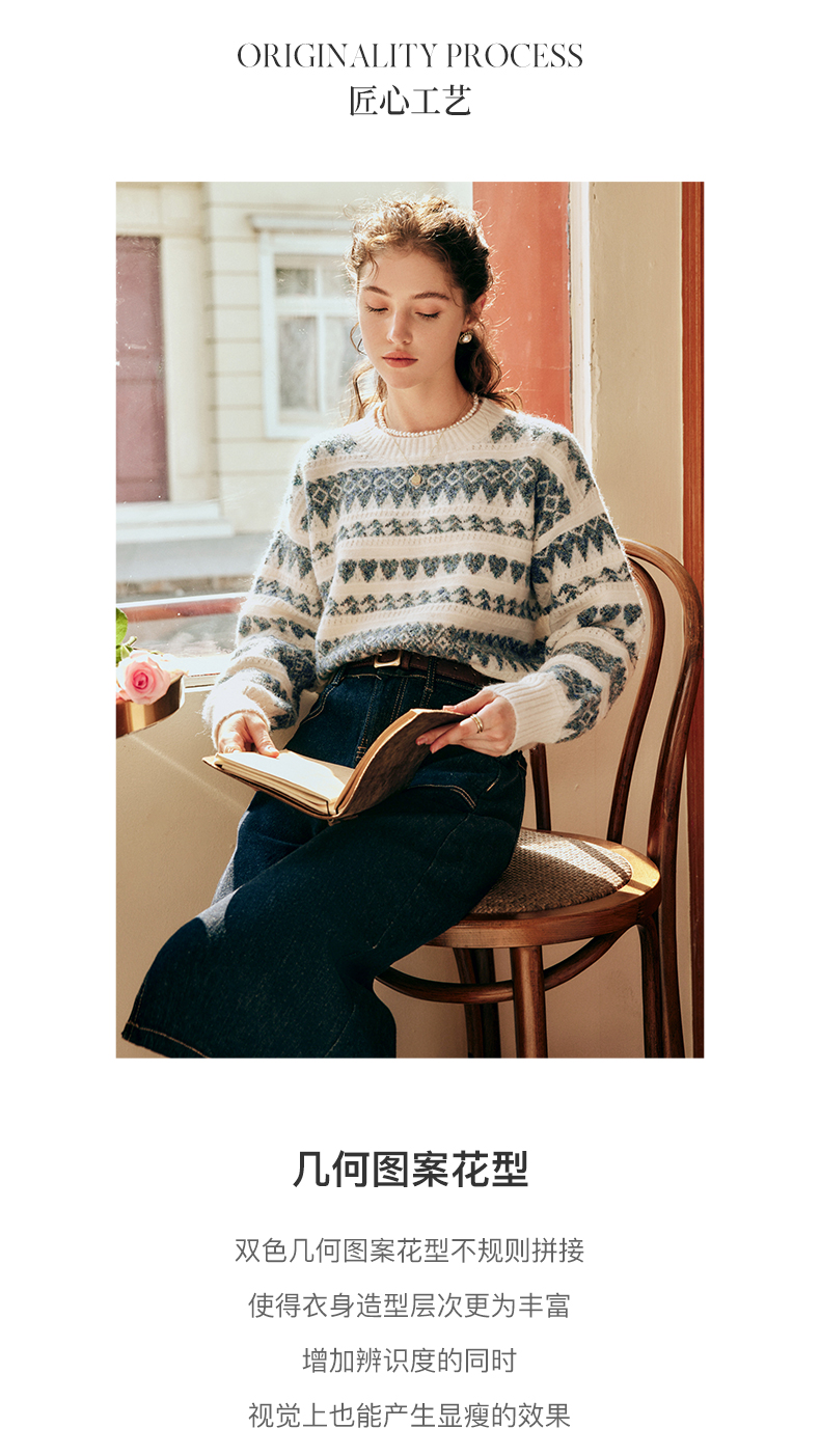 OLrain欧芮儿法式套头毛衣女秋季2023新款宽松慵懒复古毛绒针织衫