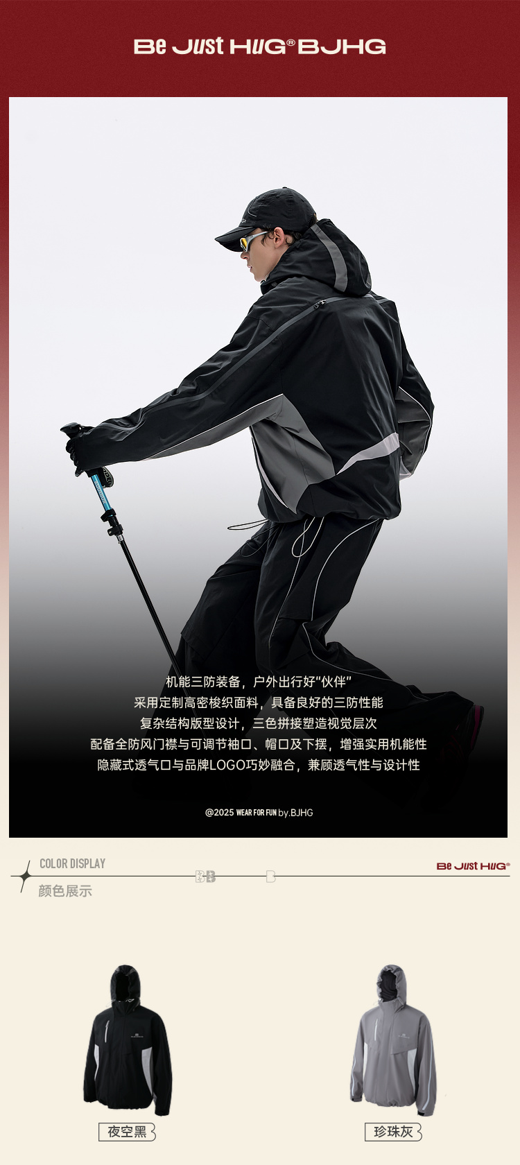 BJHG不计后果冲锋连帽外套男款秋季三防宽松舒适户外运动夹克上衣