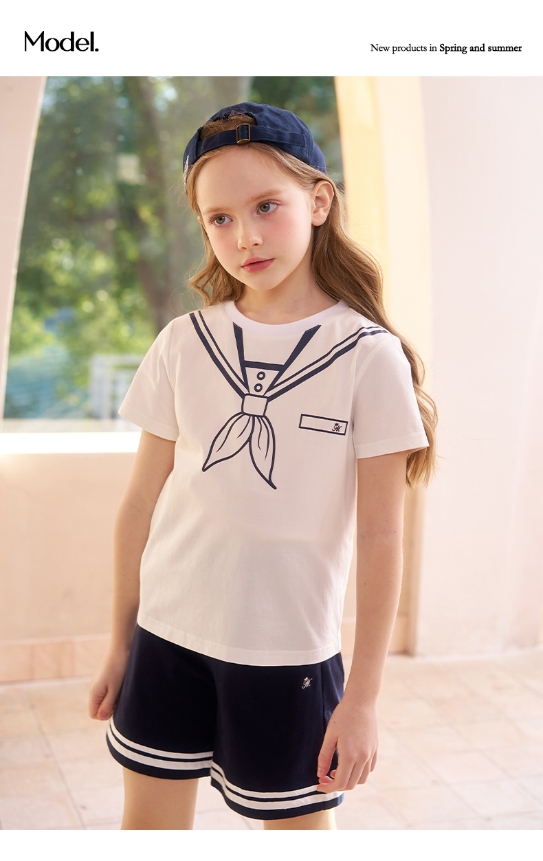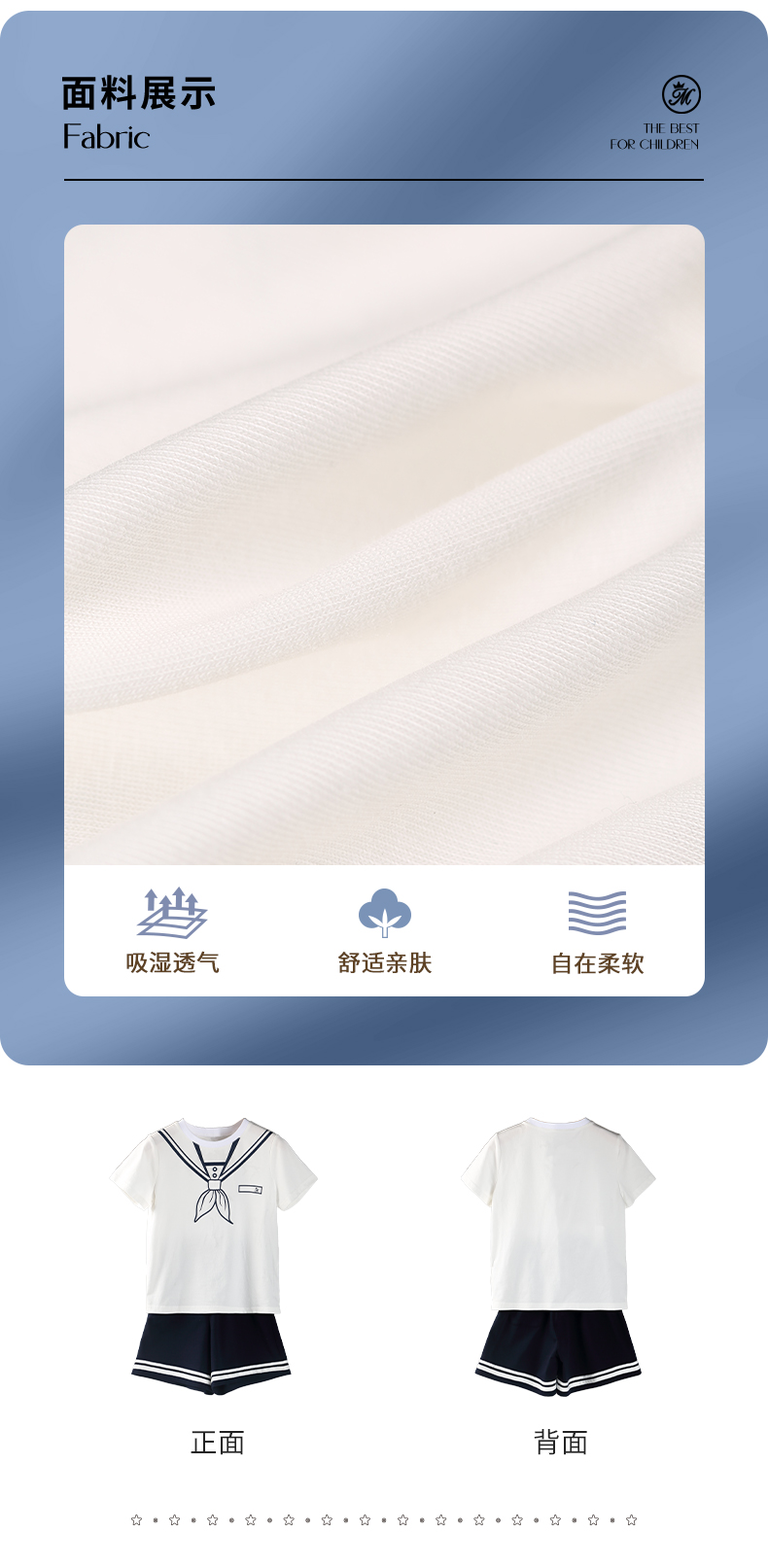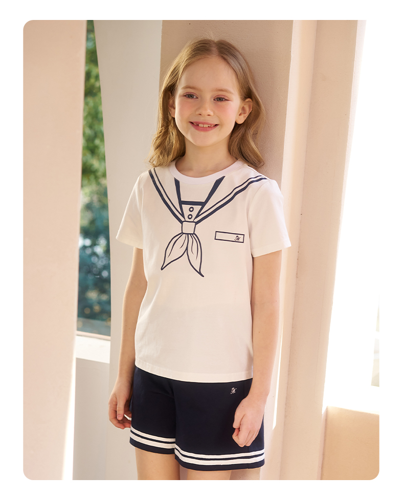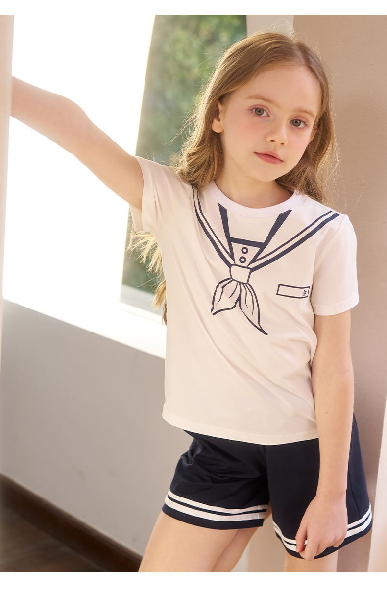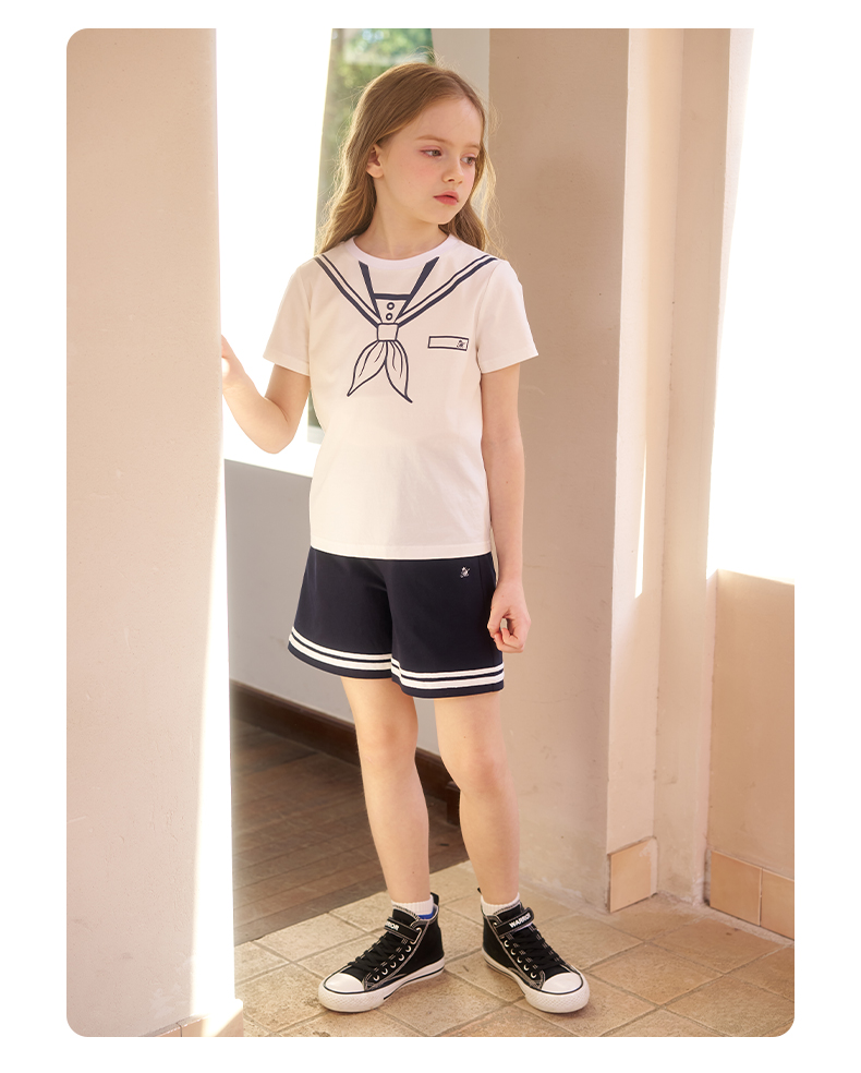 mettekids女童套装夏季海军风短袖t恤儿童短裤中大童洋气凉感童装