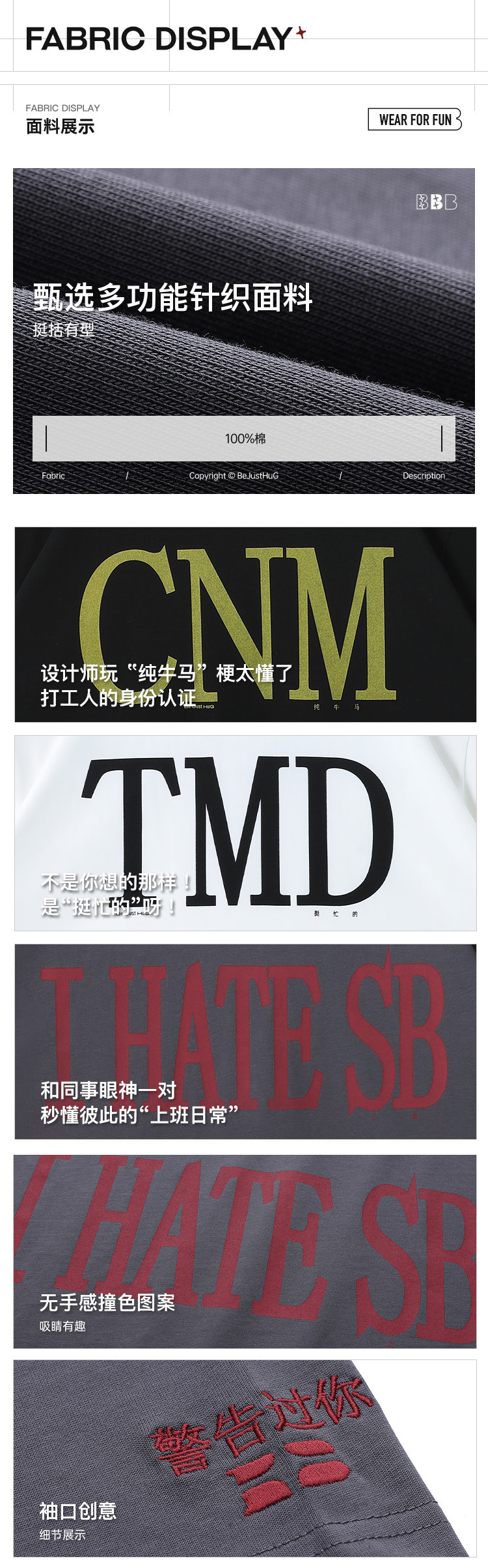 BJHG不计后果 美式短袖男款夏季潮圆领纯棉上衣抗菌防螨宽松t恤女