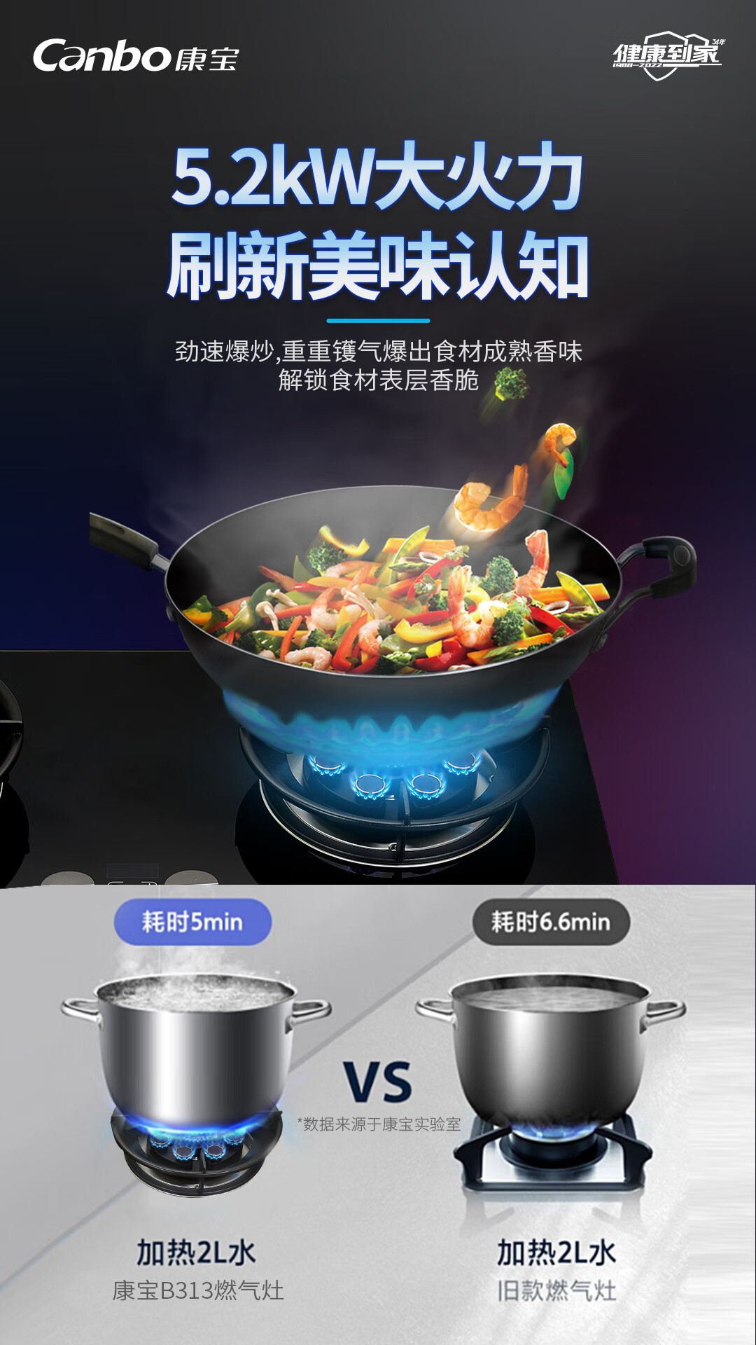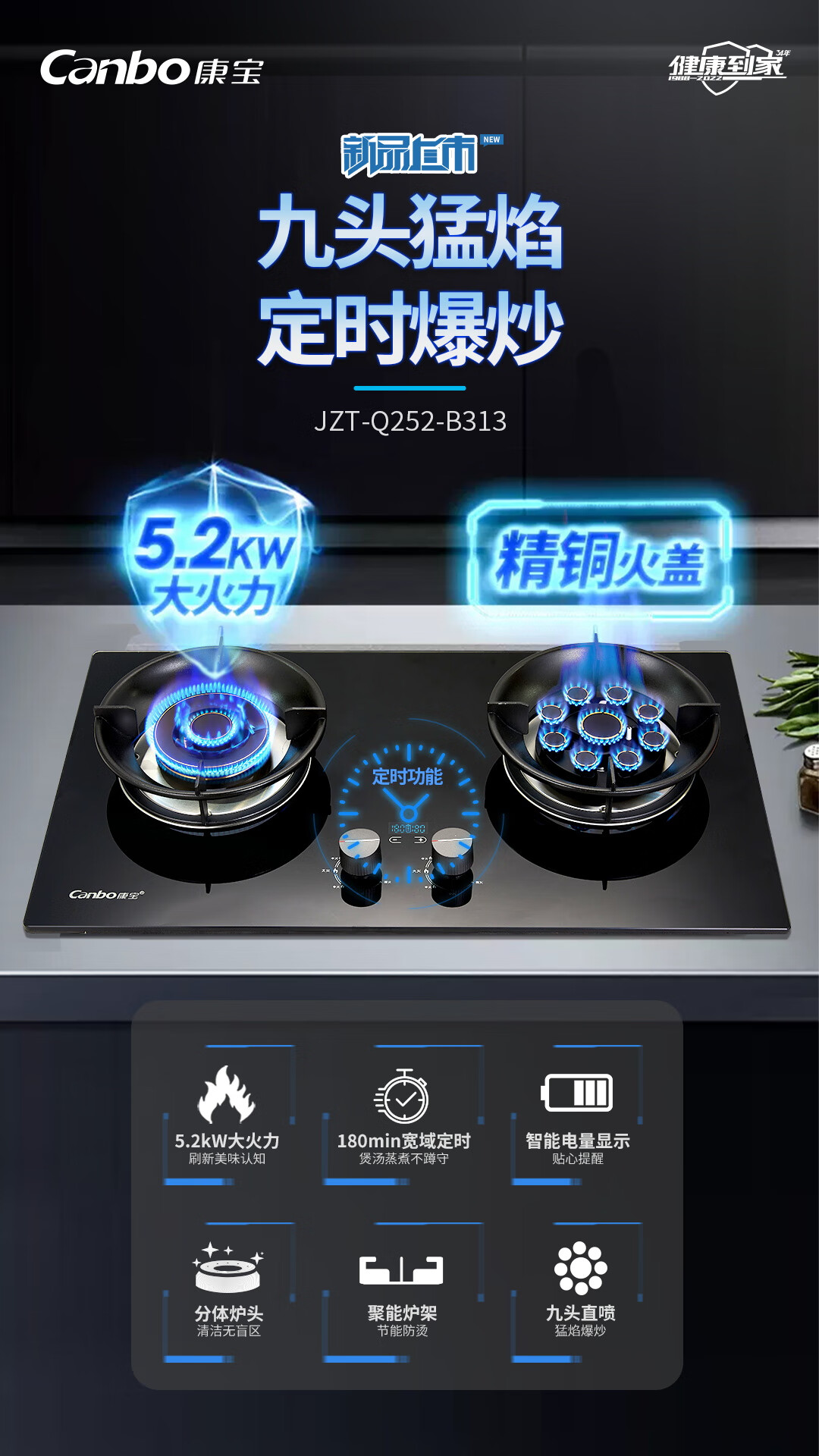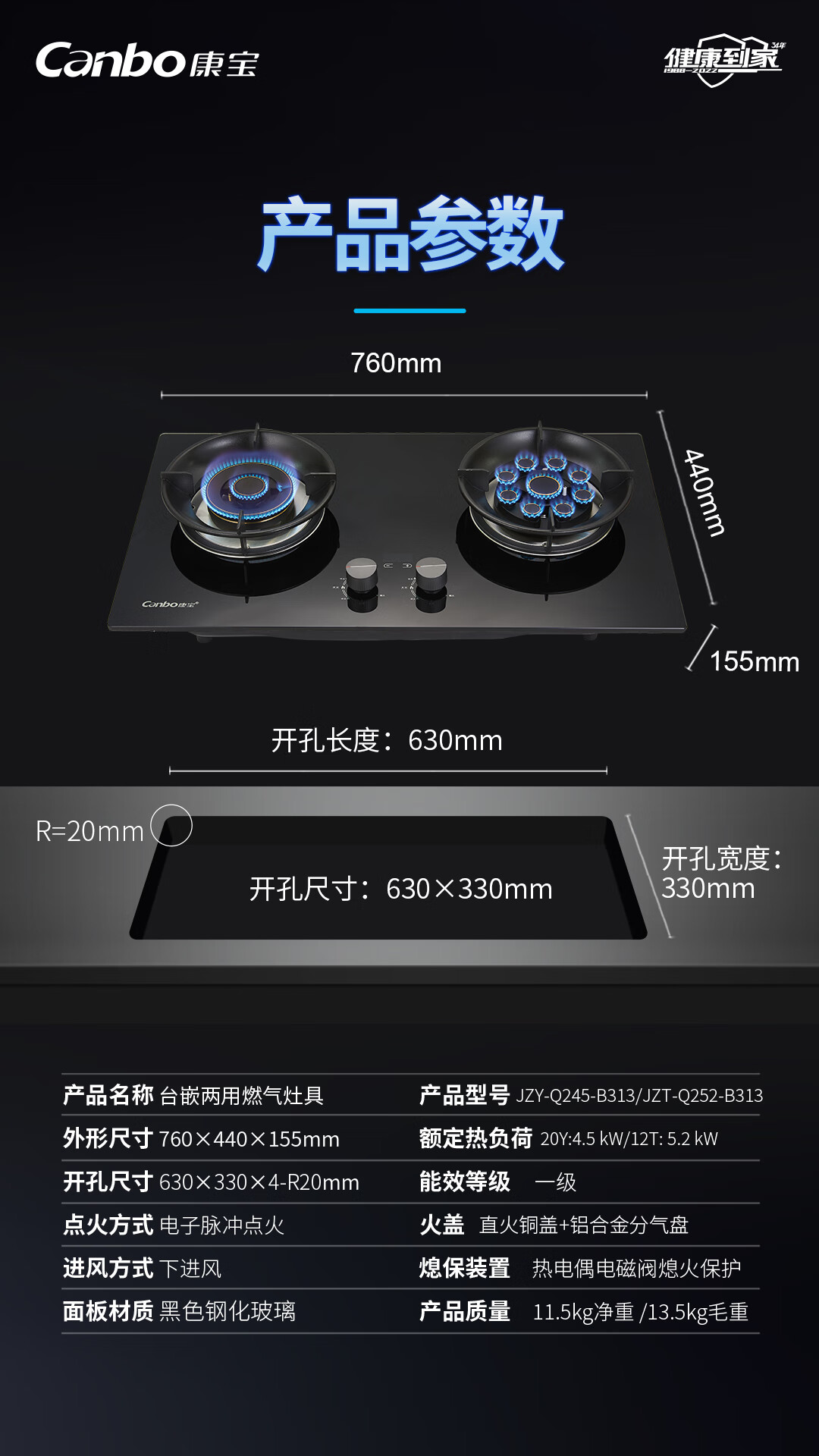 康宝(Canbo) 天然气 嵌入式 双眼节能燃气灶 超大火力 台嵌两用 JZT-Q252-B313 (液)