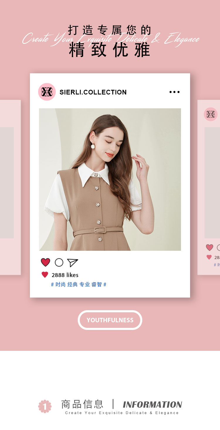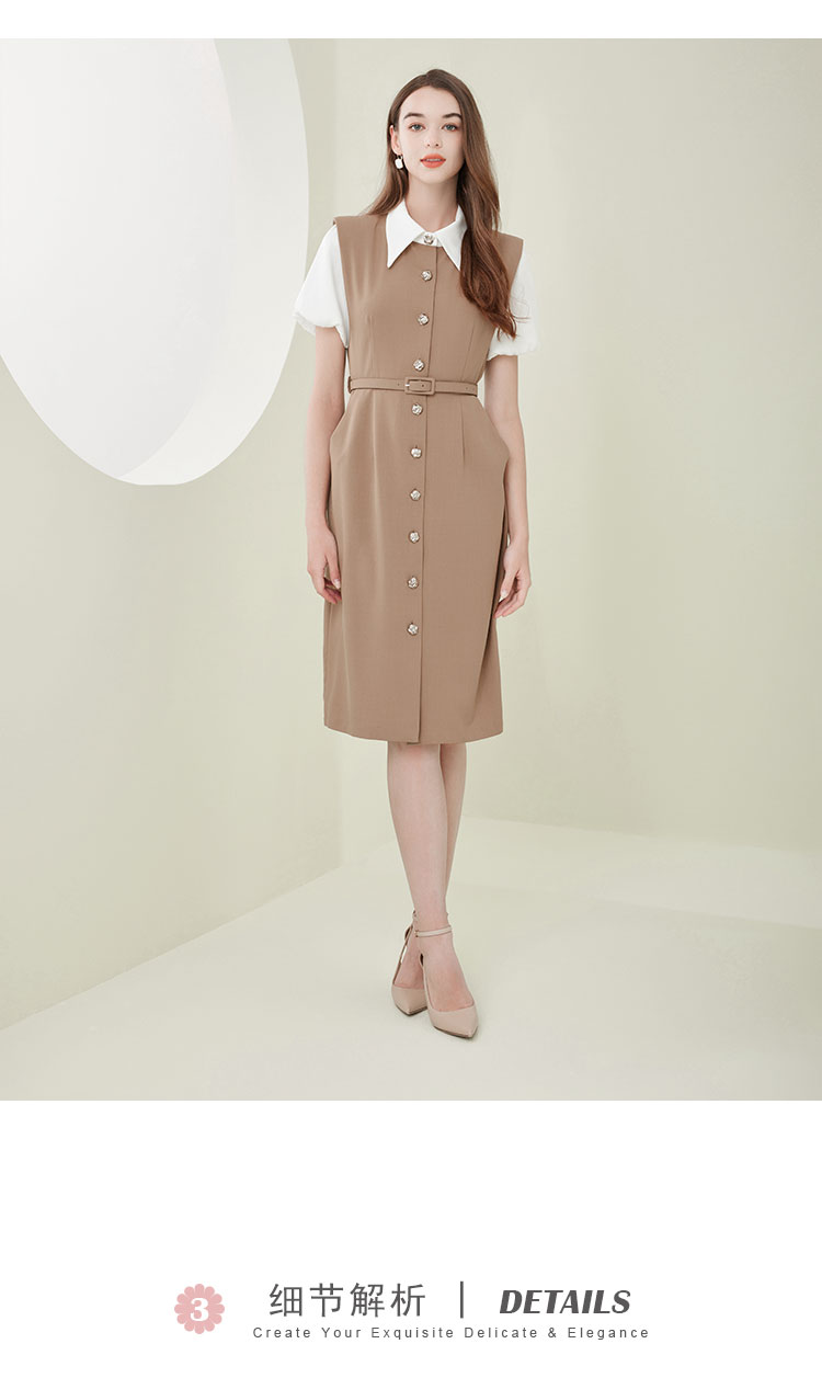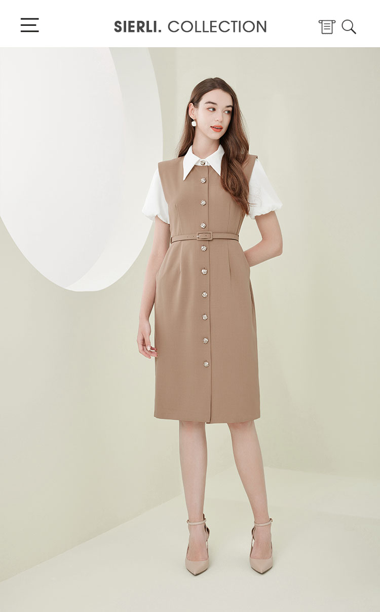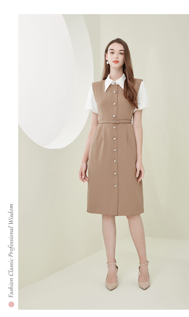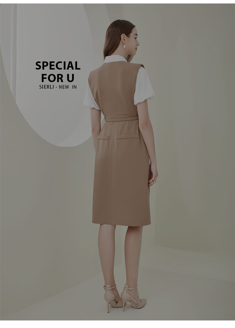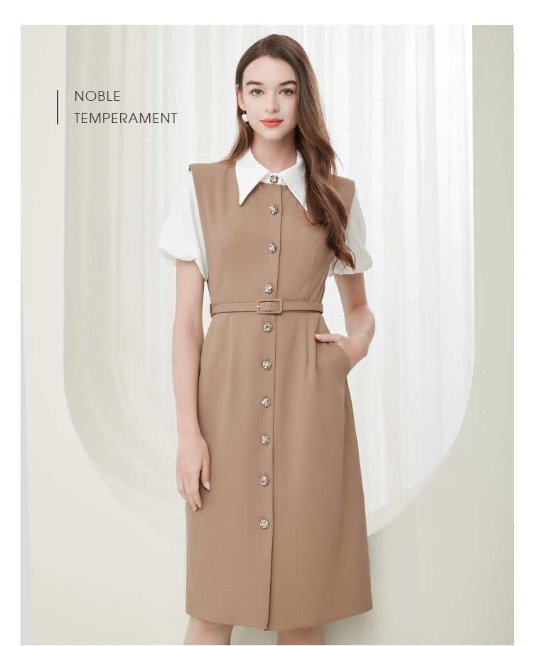 NF838斯尔丽瑟俪2023春夏新款假两件式撞色休闲连衣裙