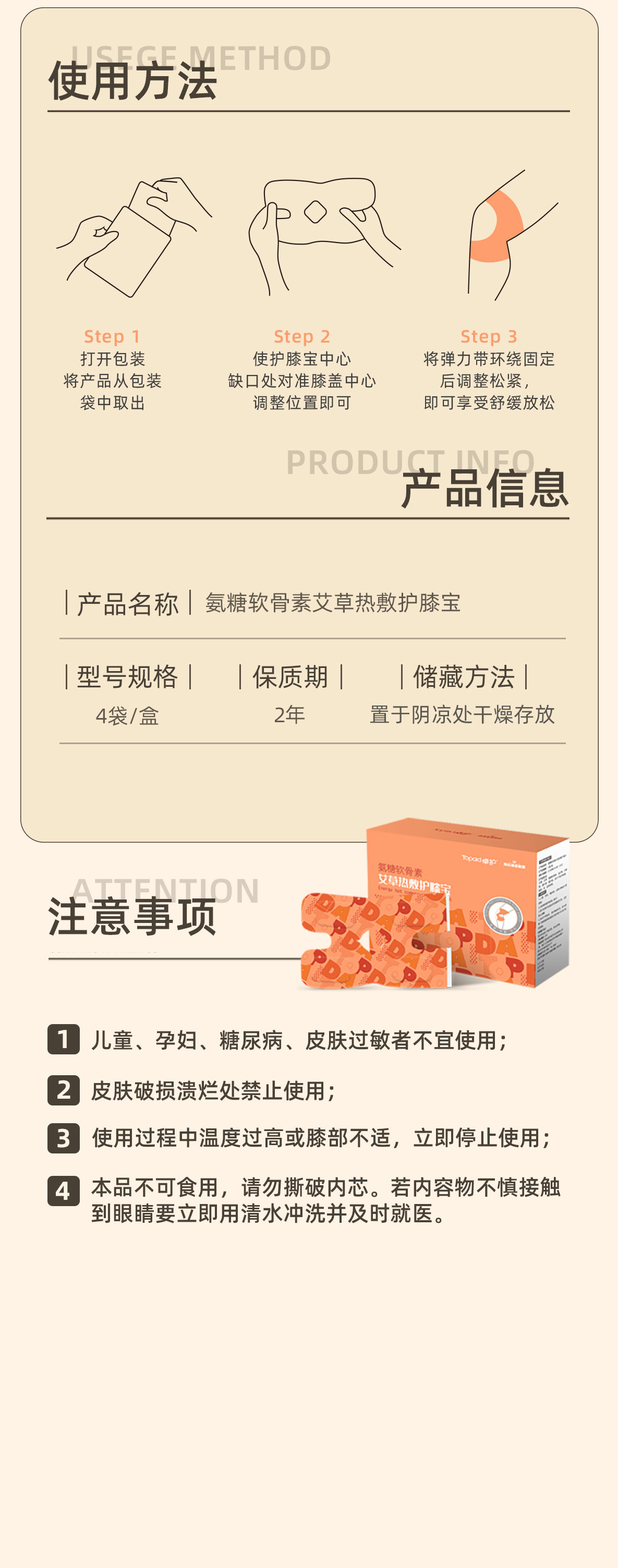 自营(卓护)-海氏海诺 艾草热敷护膝宝 暖膝贴发热膝盖热敷 4片/盒
