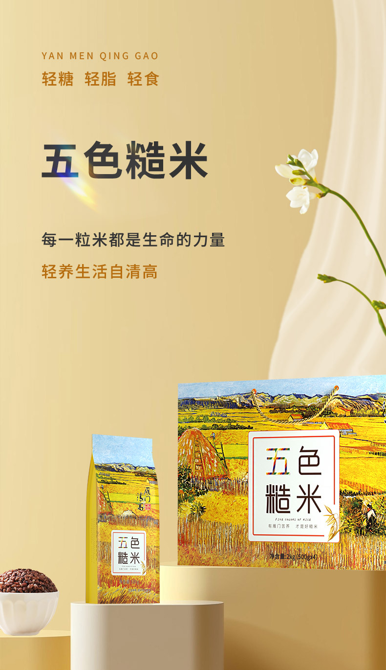 雁门清高五色糙米礼盒2kg五谷杂粮糙米苦荞麦米黑米红米麦仁米健身代餐