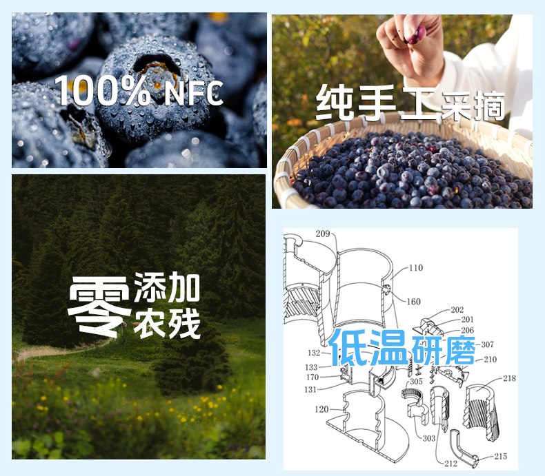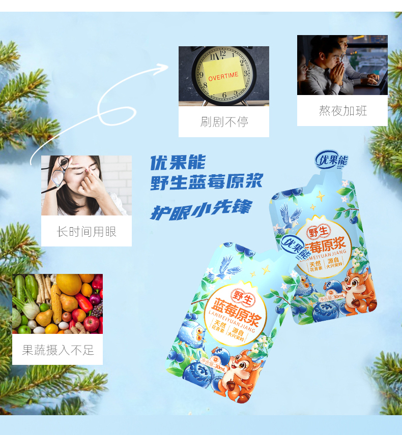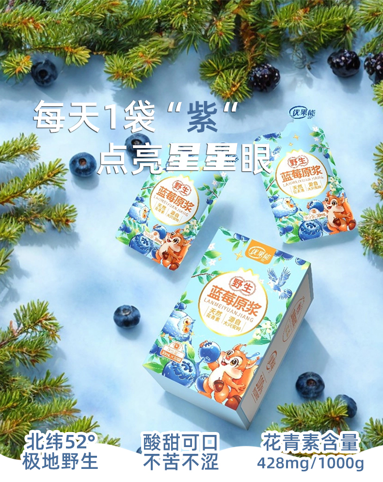 【买5赠1】优果能野生蓝莓果原浆 小分子原浆专利技术更易吸收NFC无添加便携直饮原生态