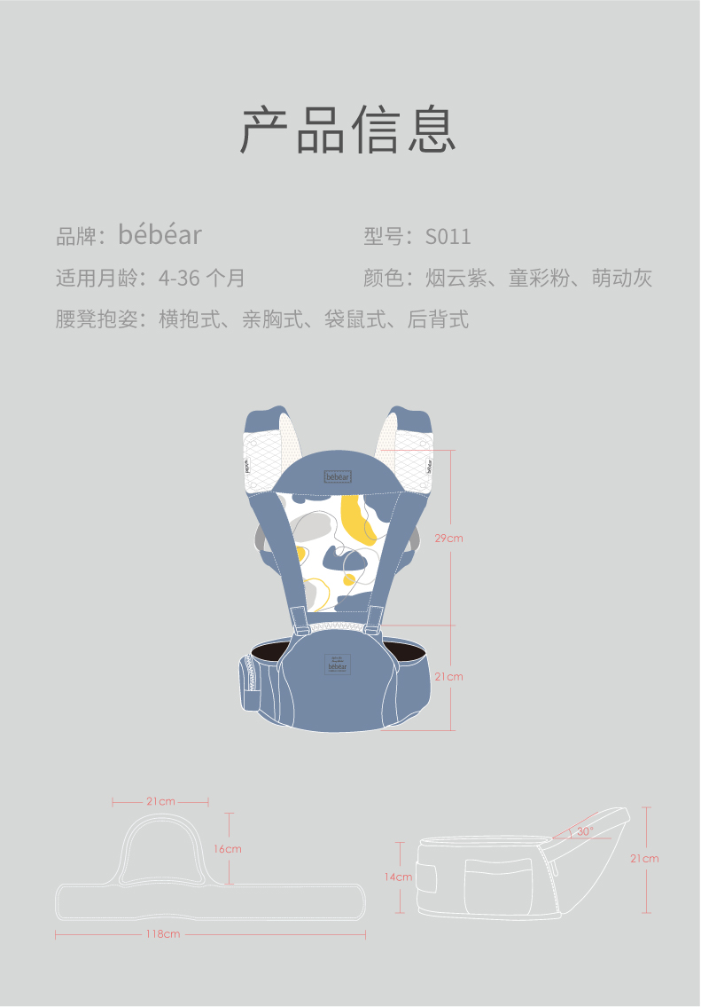 抱抱熊bebear轻便透气腰凳背带S011
