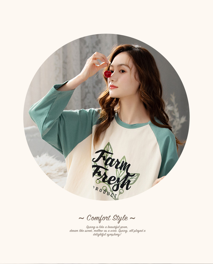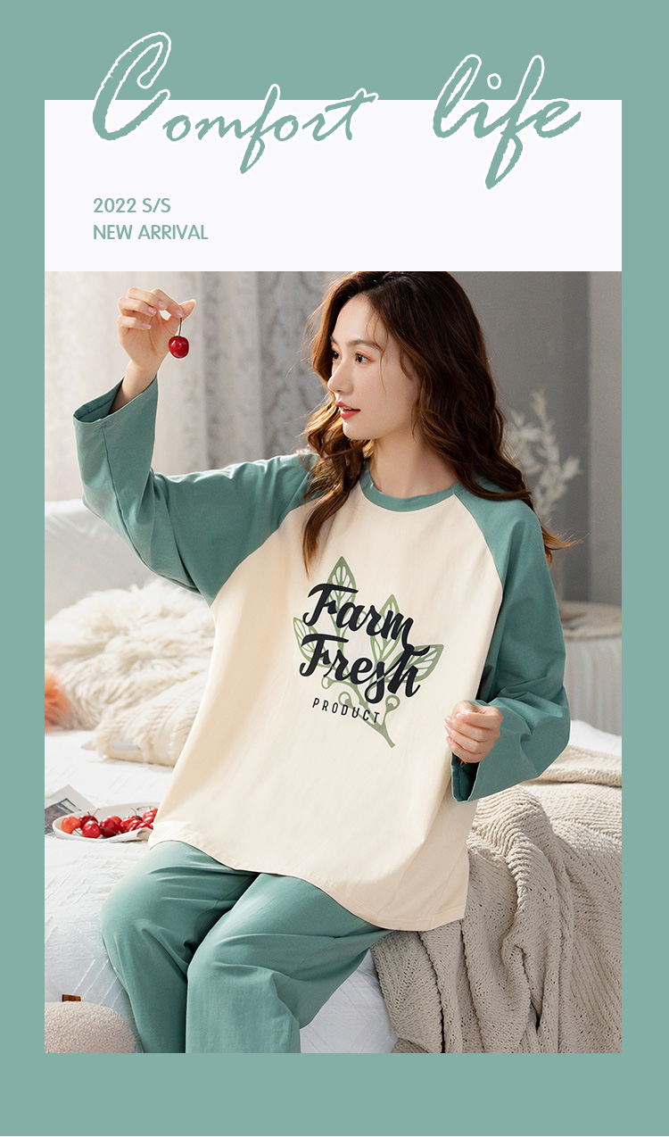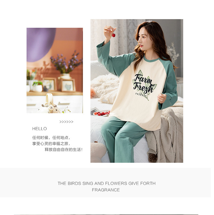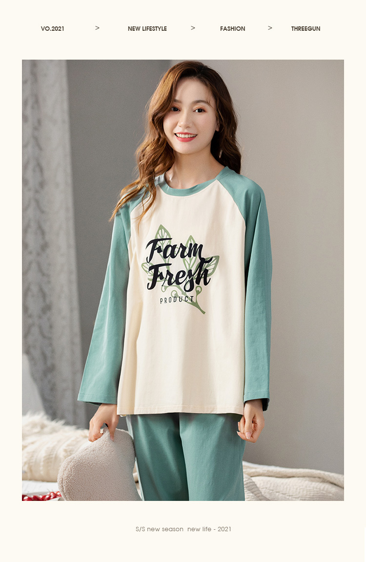 洁丽雅内衣全棉字母圆领长袖长裤睡衣女士家居服套装