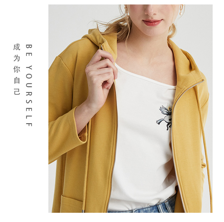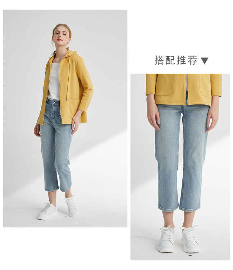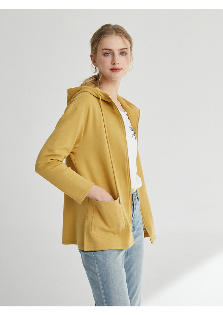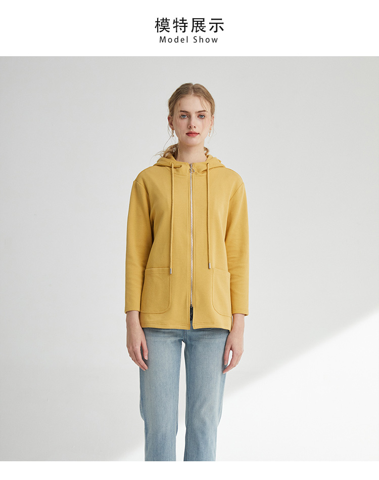 VIVIAN LIU薇薇安刘R2417306春女装新款连帽贴兜门襟拉锁针织上衣
