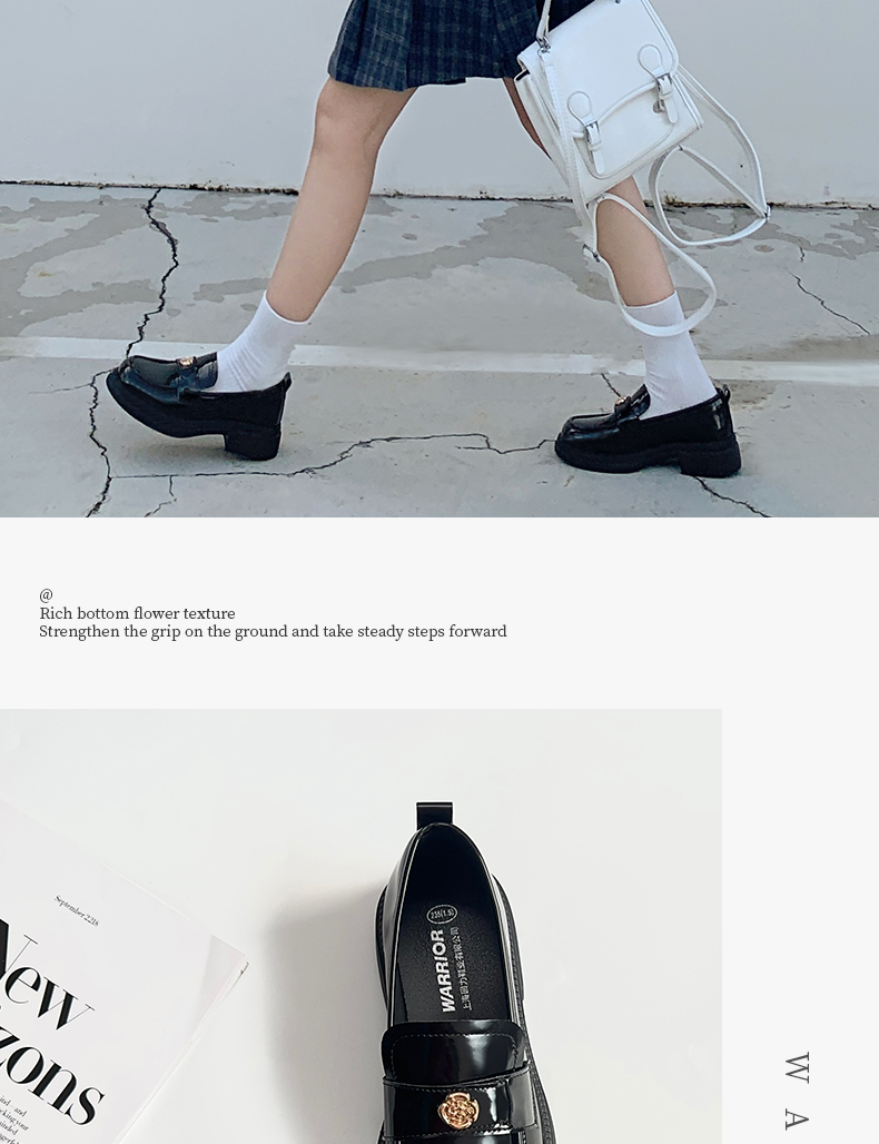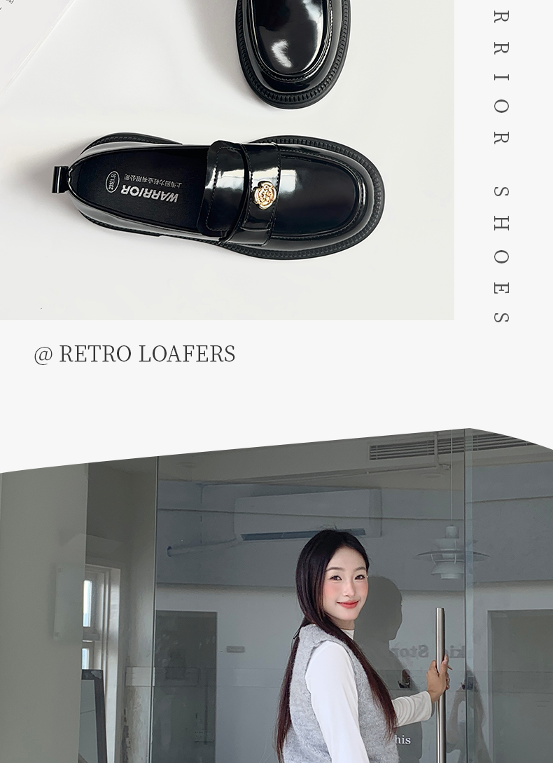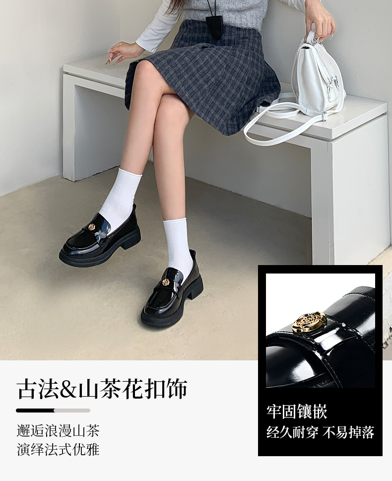回力山茶花乐福鞋女2025秋冬新款厚底英伦风复古黑色小皮鞋女单鞋