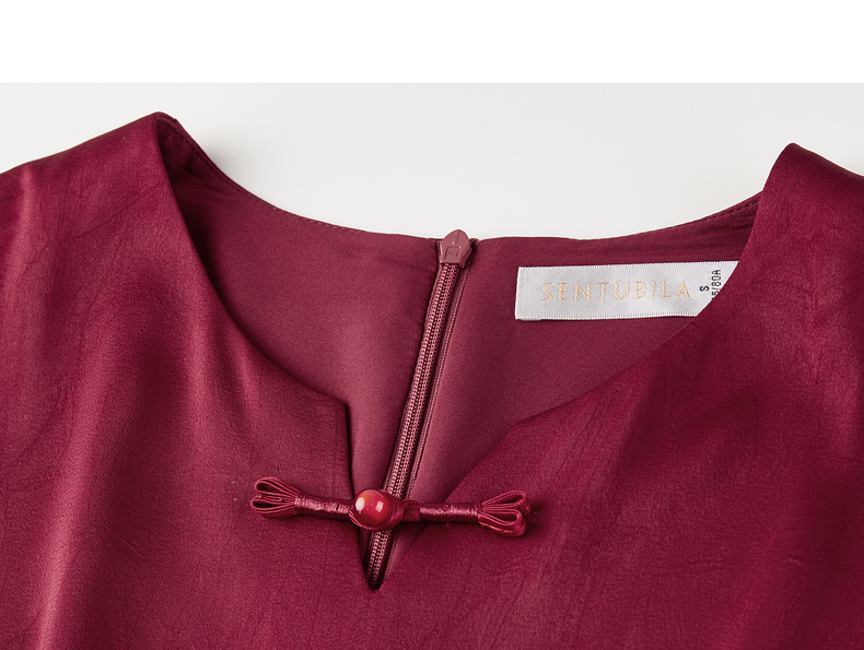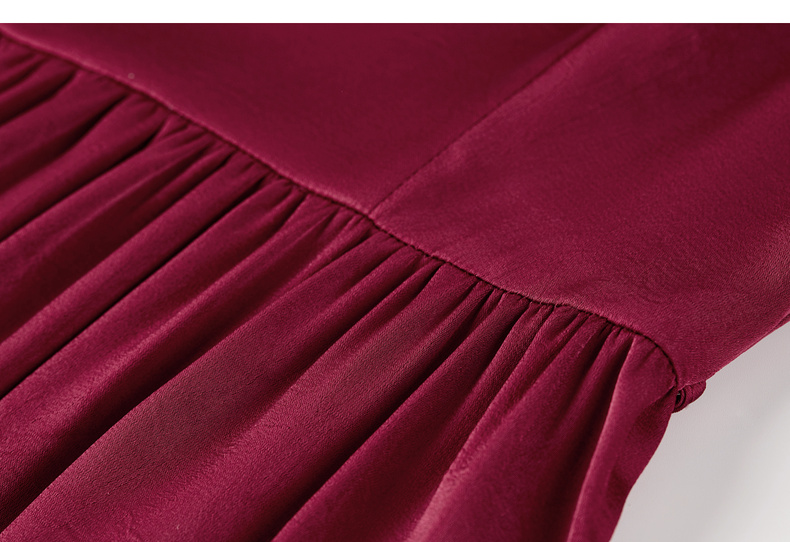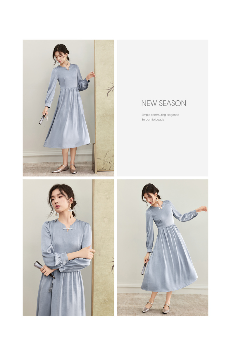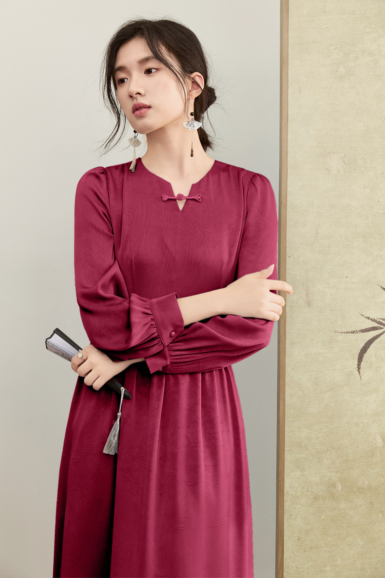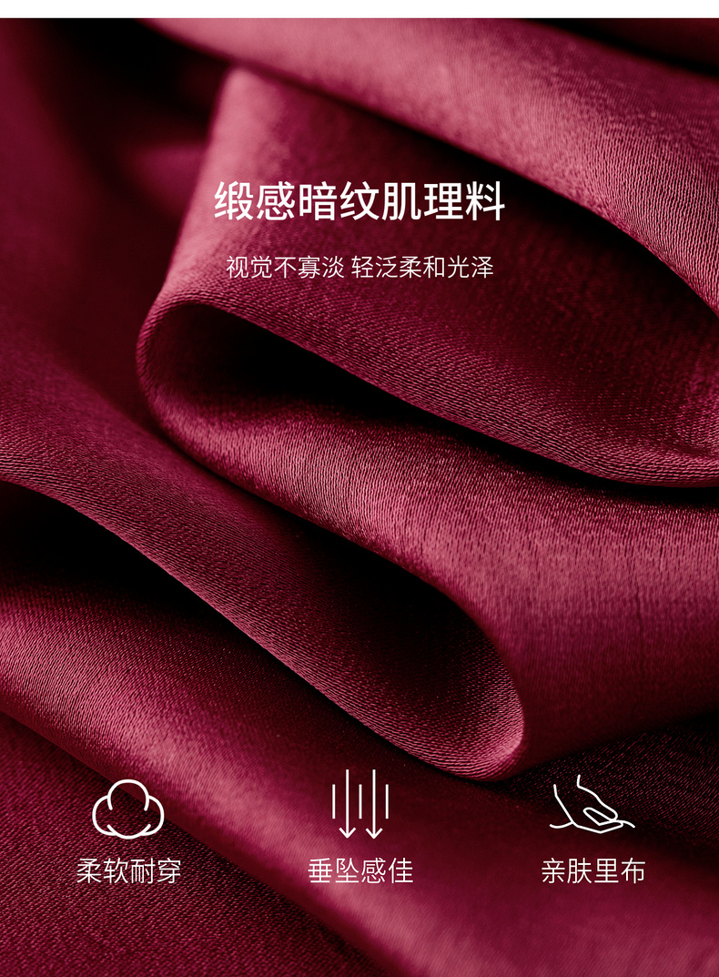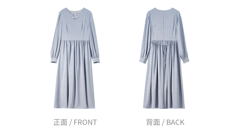 【内购】【藏肉显瘦】优雅通勤圆V领盘扣系绑带收腰哑光肌理缎感连衣裙-153LI2638