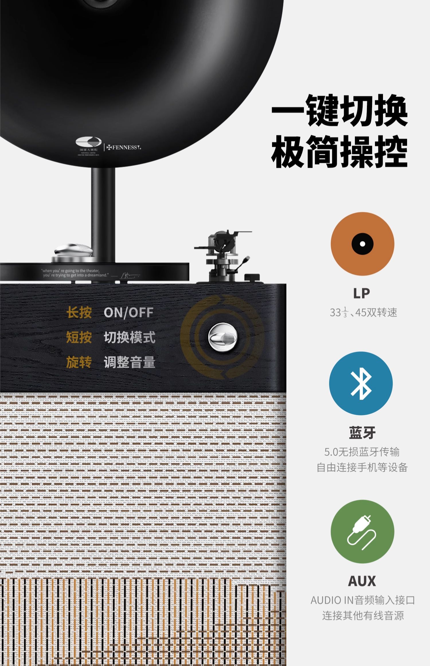 梵尼诗 i5国家大剧院联名黑胶唱片机HiFi留声机蓝牙音响