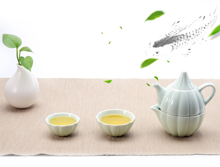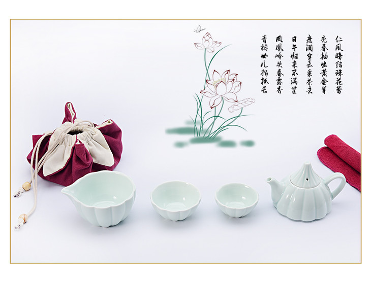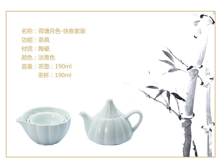 原初格物荷塘月色旅行茶具190ml+190ml+60ml+40ml/TST301便携泡茶杯子礼品套装
