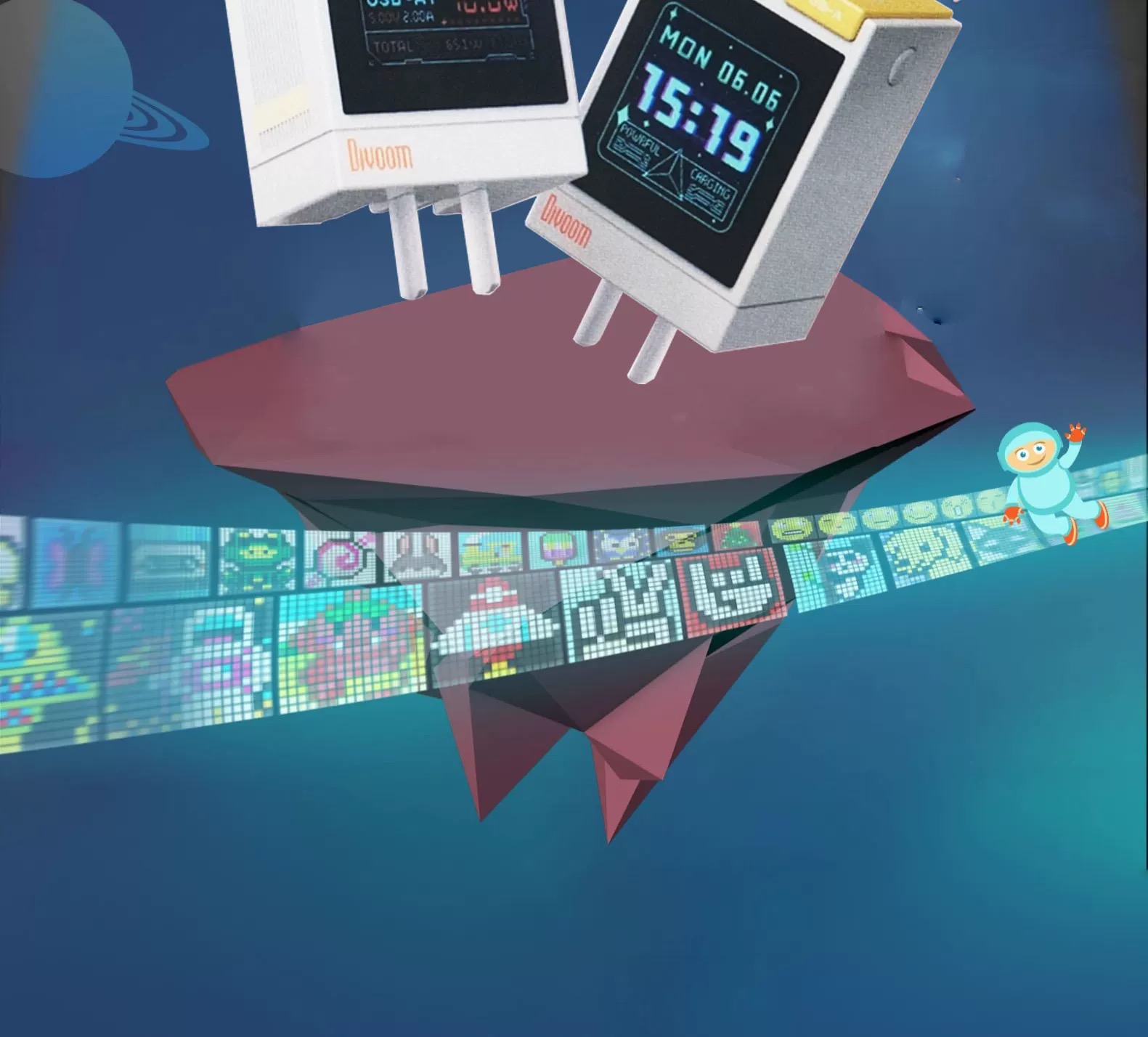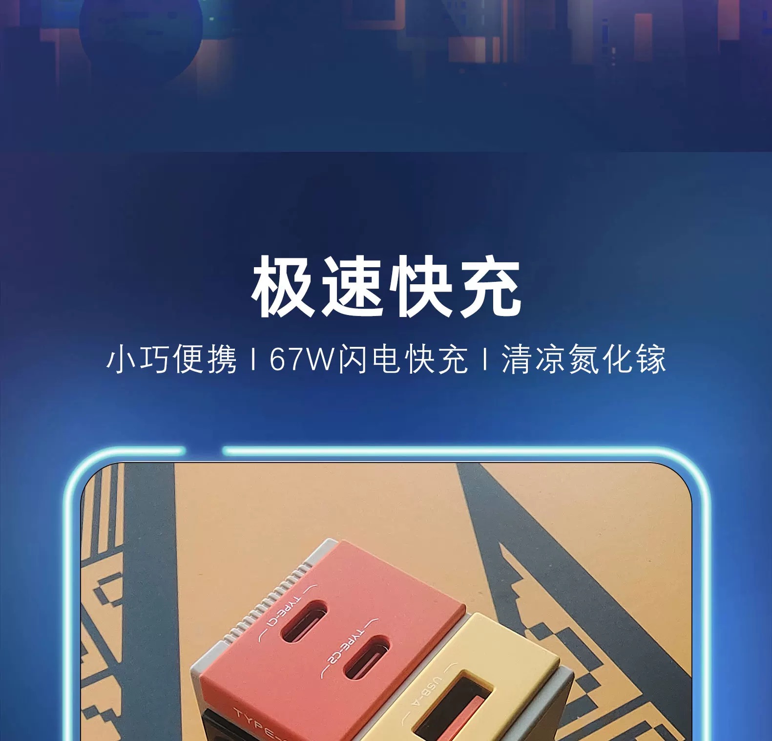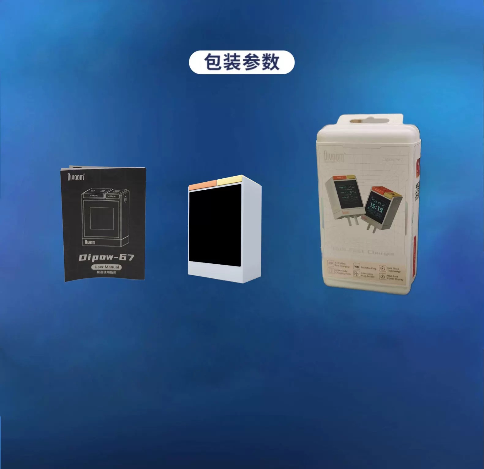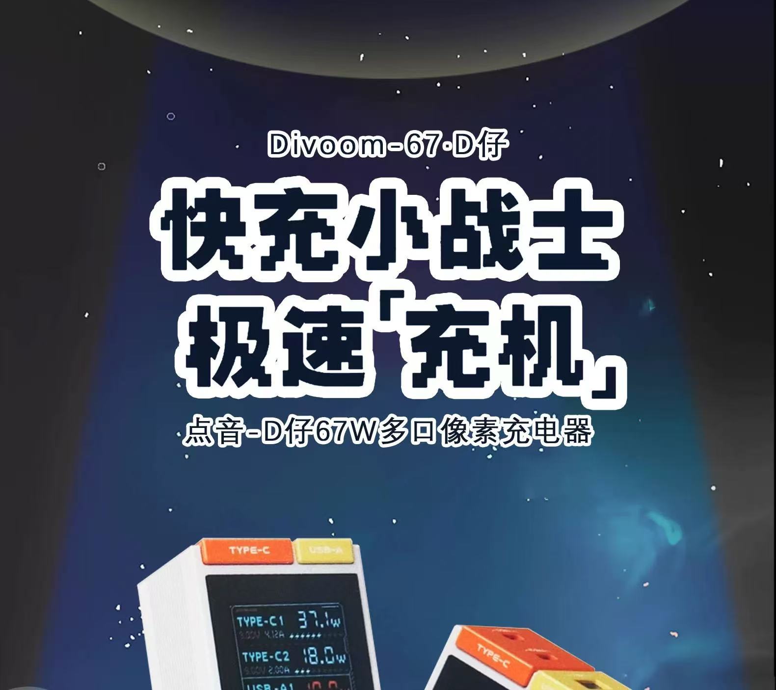Divoom D仔67W多口快速充电器 点音像素屏充电头67W氮化镓快充多口适用华为16苹果17安卓手机