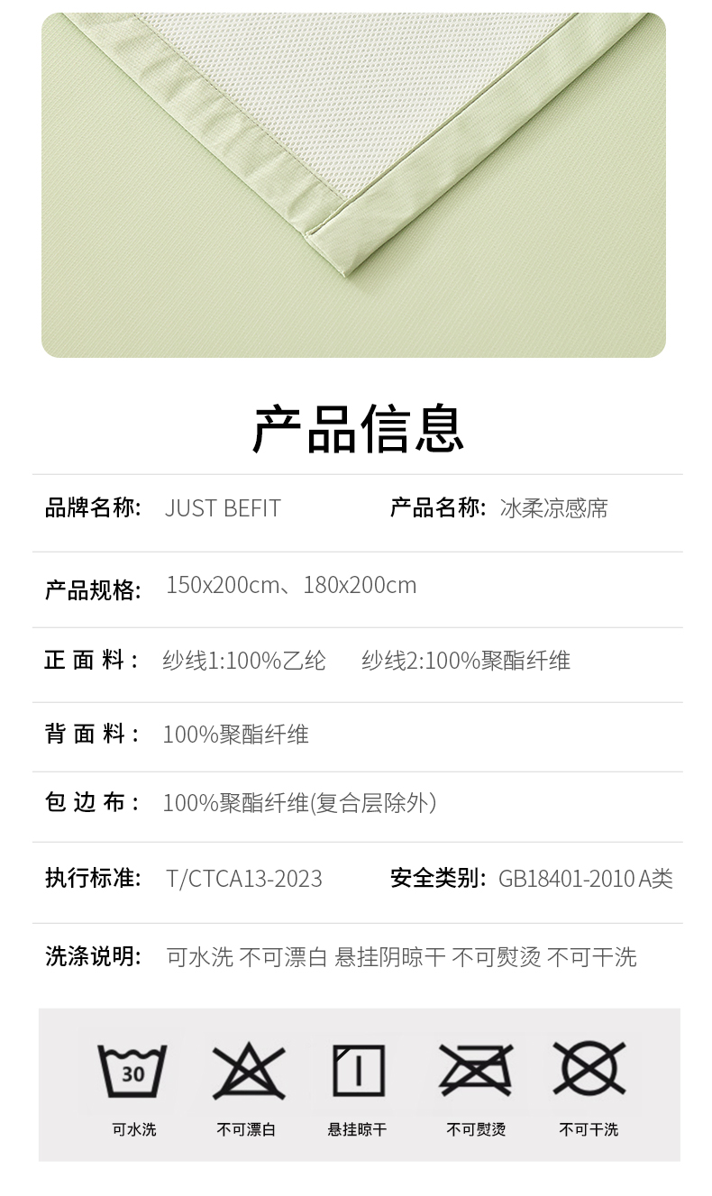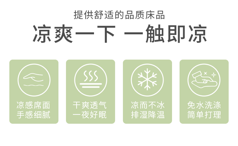 严选 | 加倍生活冰柔凉感席 150*200cm/180*200cm 凉而不冰 顺滑透气 A类标准可水洗