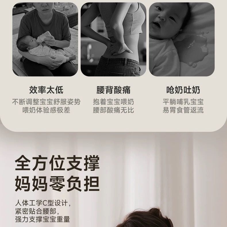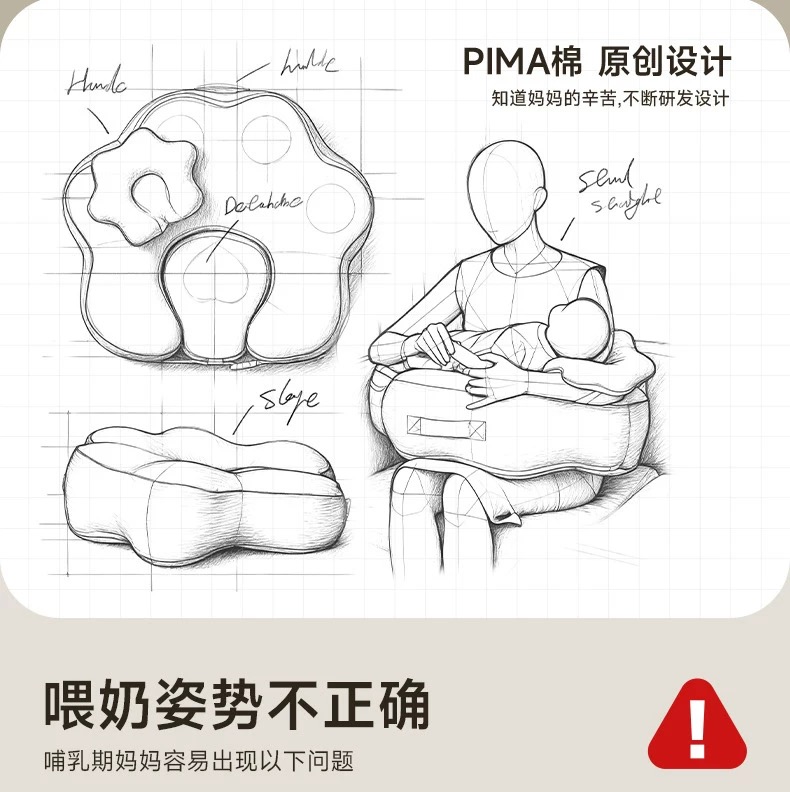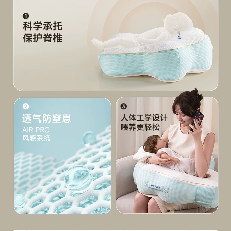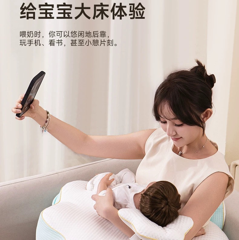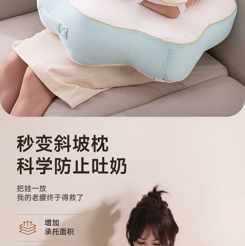 Pima棉云朵哺乳枕坐喂护腰解放双手婴儿防吐斜坡枕喂奶神器二合一