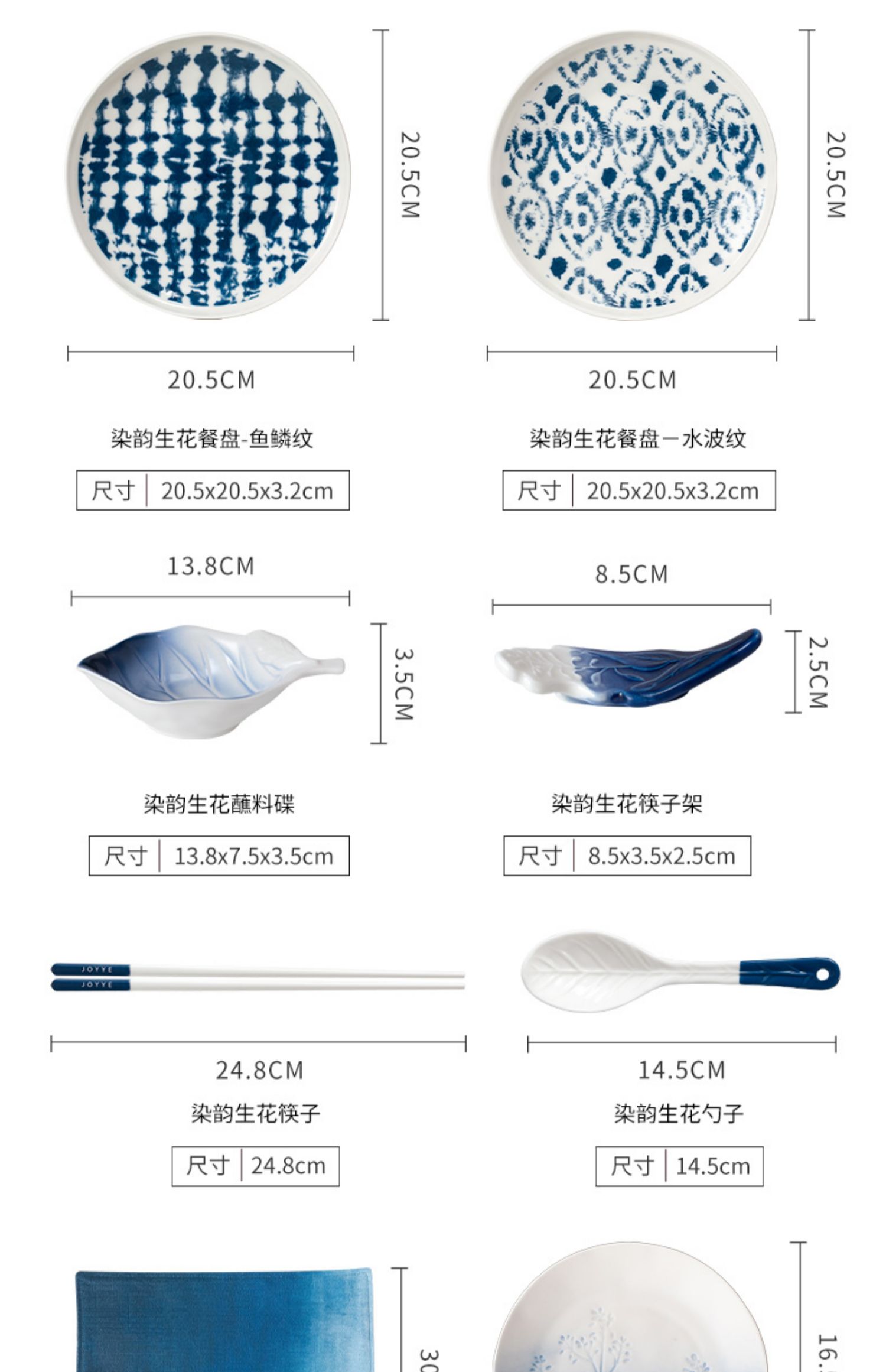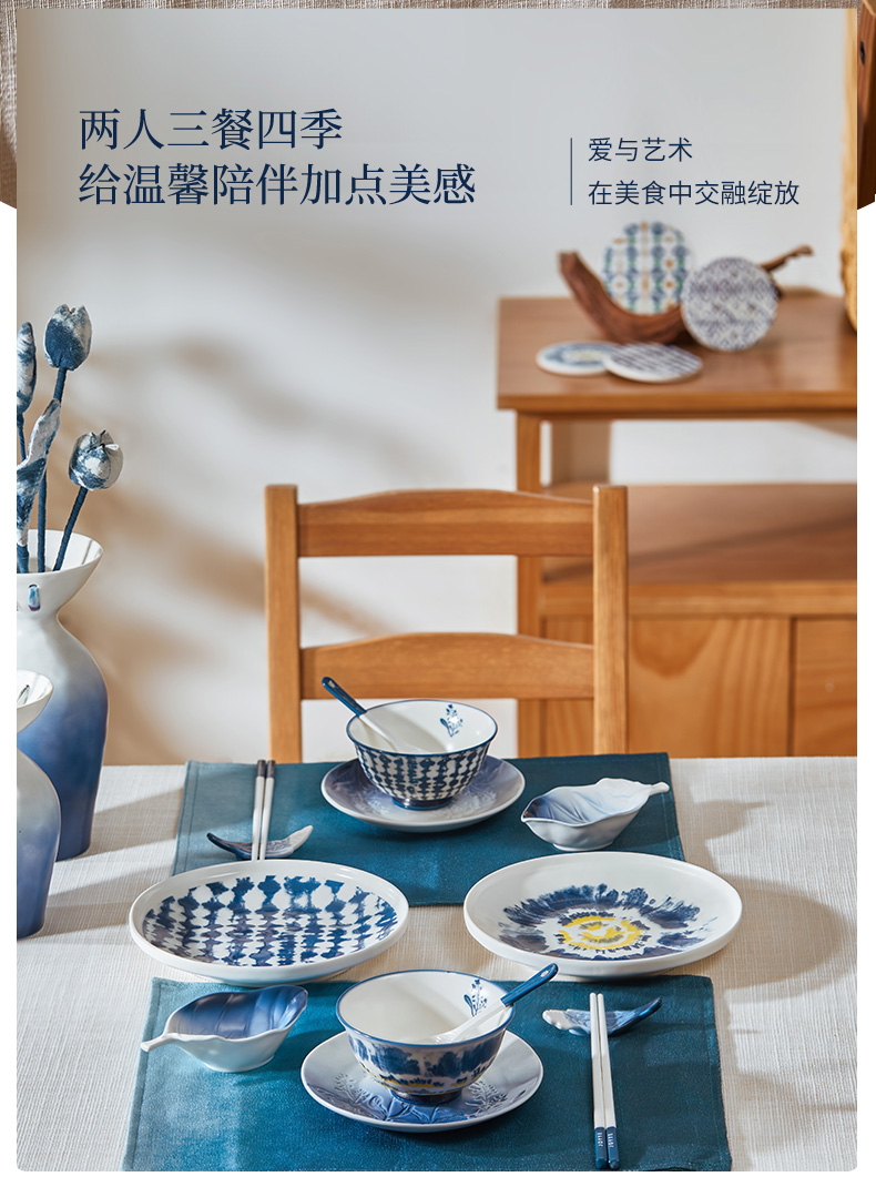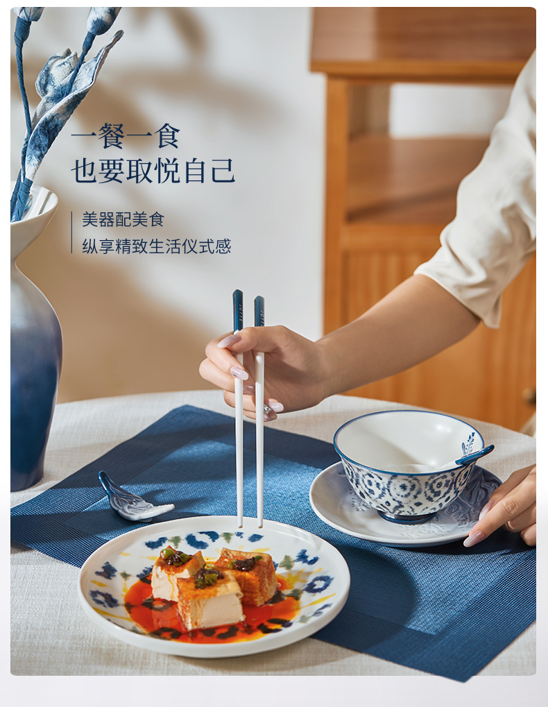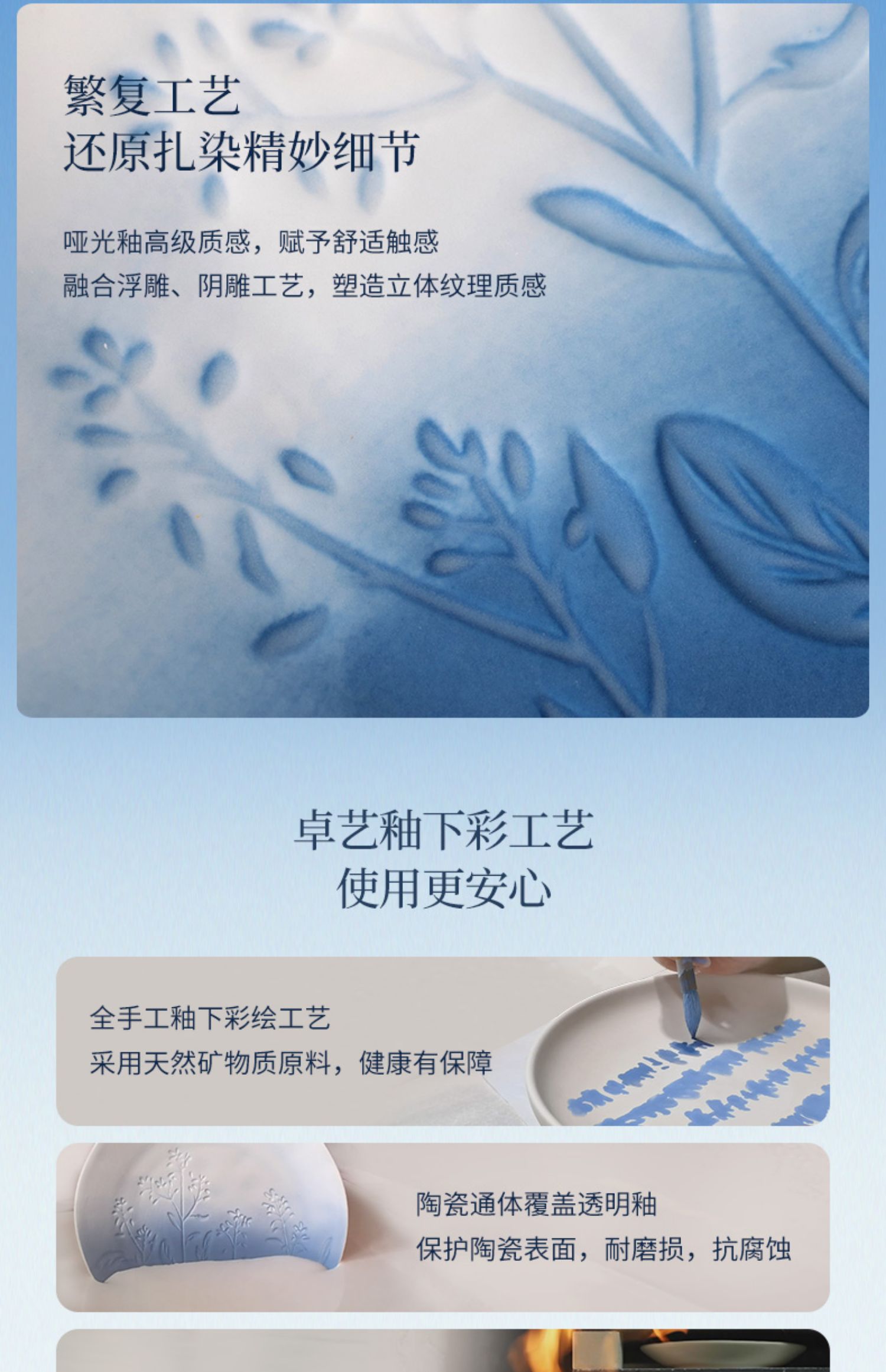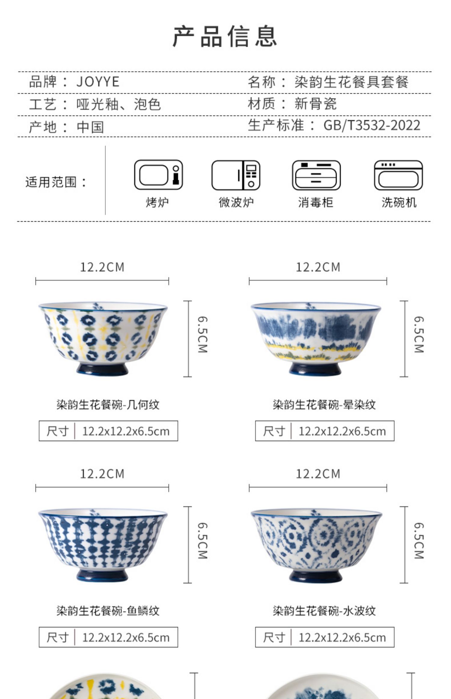 JOYYE 釉下彩新骨瓷浮雕陶瓷碗碟餐具碗盘家用套装2025新款可微波