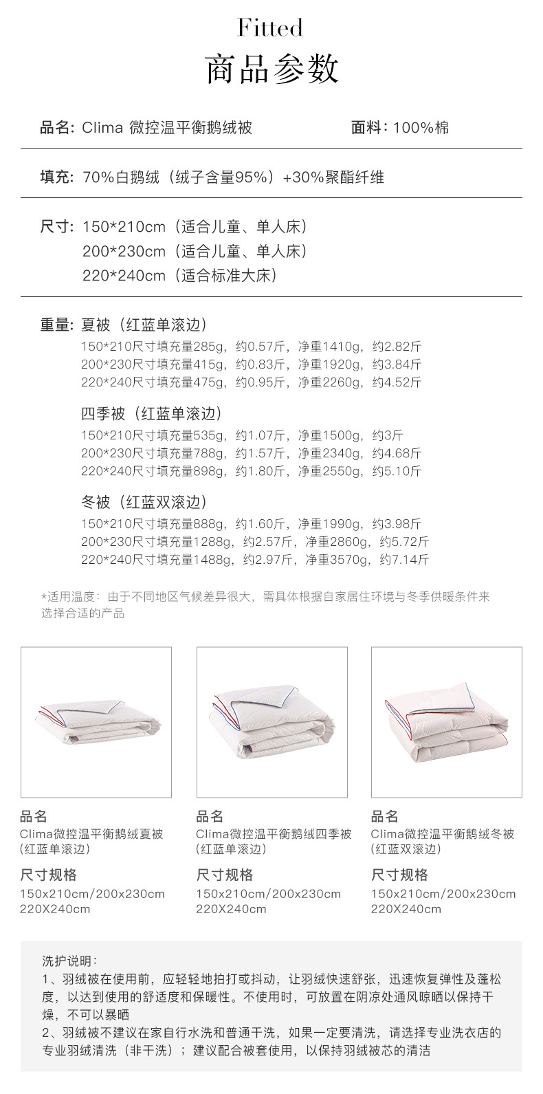 【双十二特惠】|Downland Clima微控温平衡鹅绒被 春秋四季被150*210cm[福利品