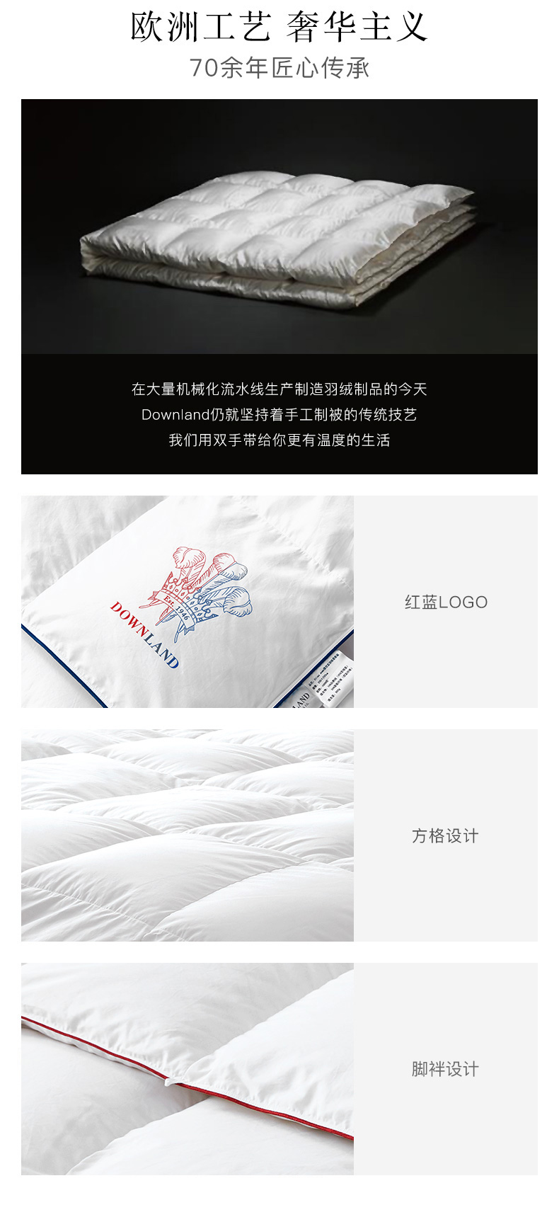 凭借年轻时掌握的羽绒制作手艺,他坚信,一场好的睡眠对「人的自我修复」有着至关重要的意义,通过优质的睡眠产品,DOWNLAND为更多饱受战后睡眠障碍困扰的同胞提供「良好睡眠」的解决方案。如今DOWANLAND已成为英国四大顶级床品之一。