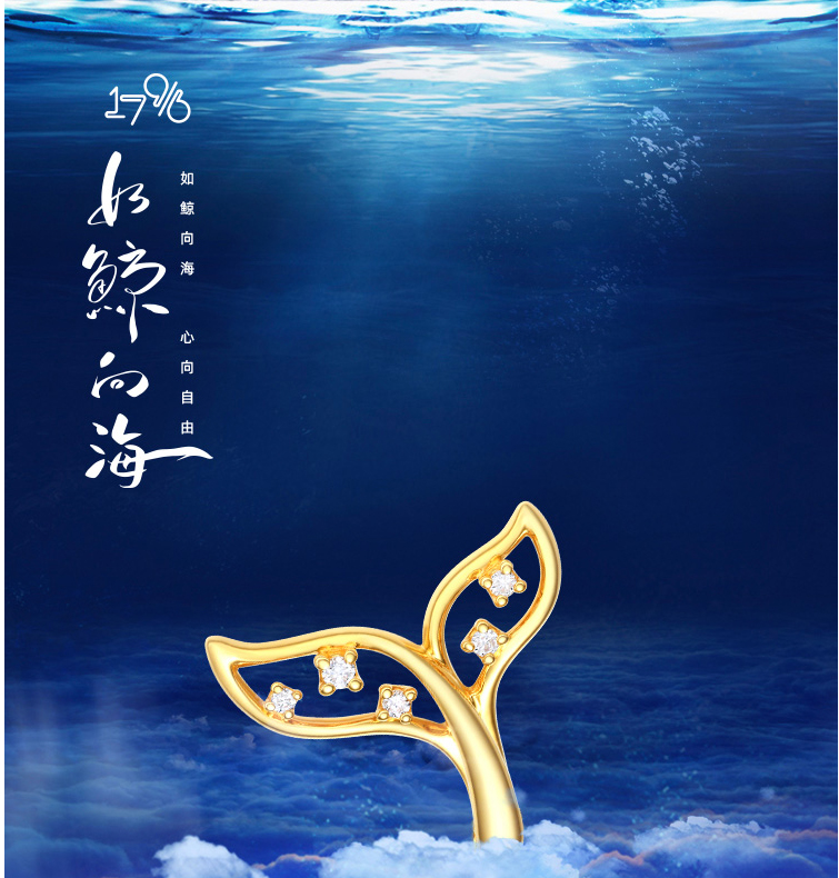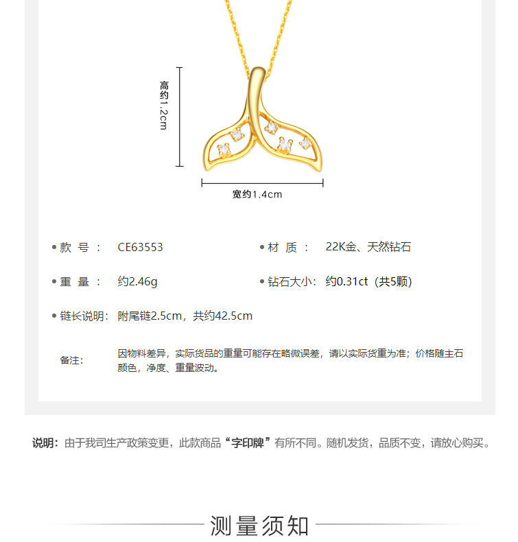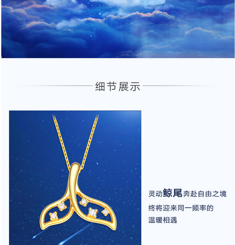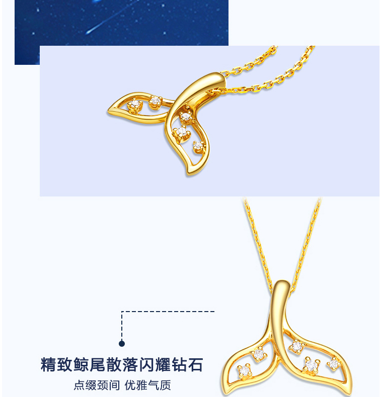 周大福17916系列如鲸向海22K金鲸鱼尾镶钻项链CE63553