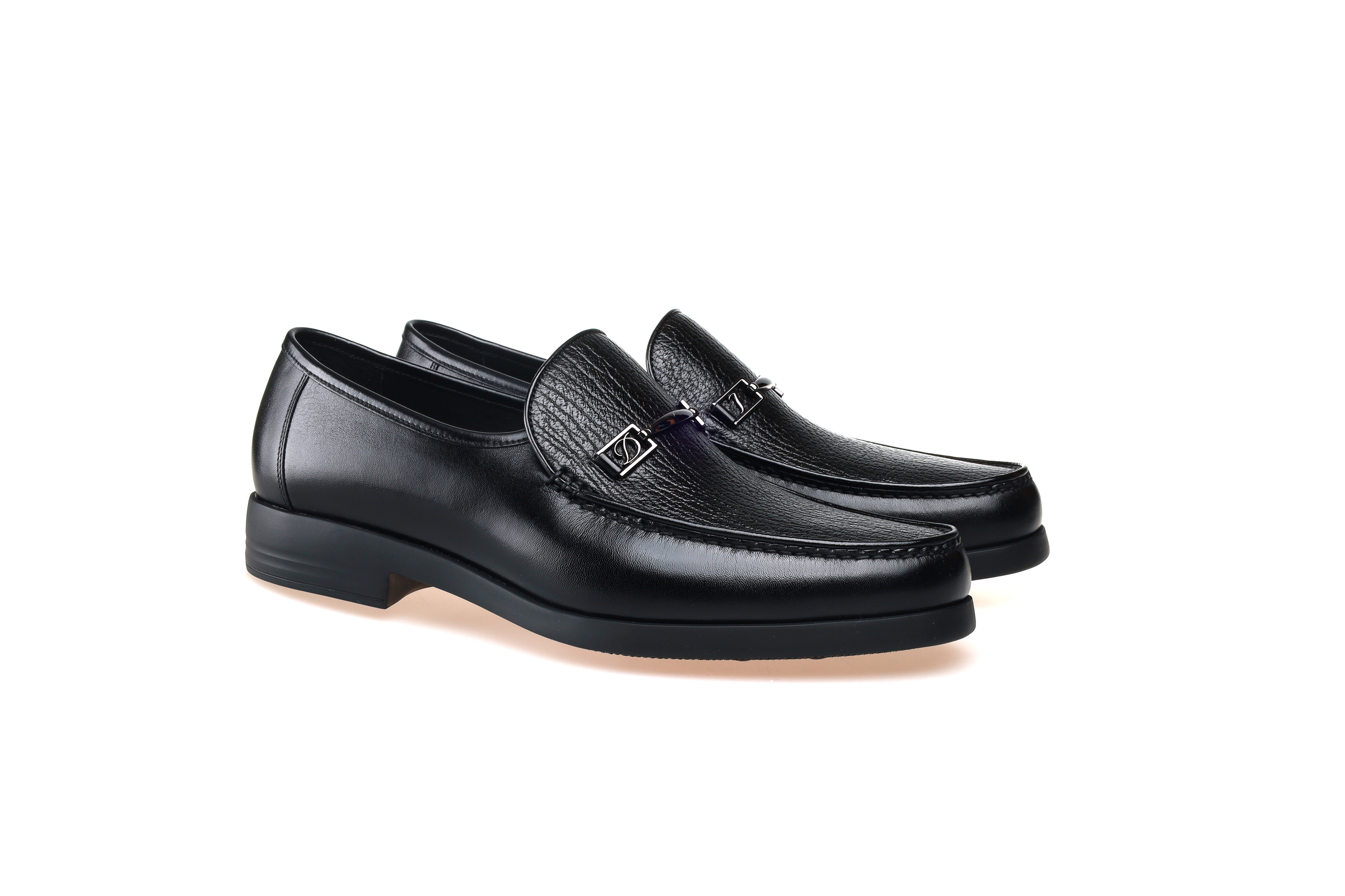 豪麟名鞋都彭男鞋袋鼠皮革+海豹皮革商务鞋E32240420黑色