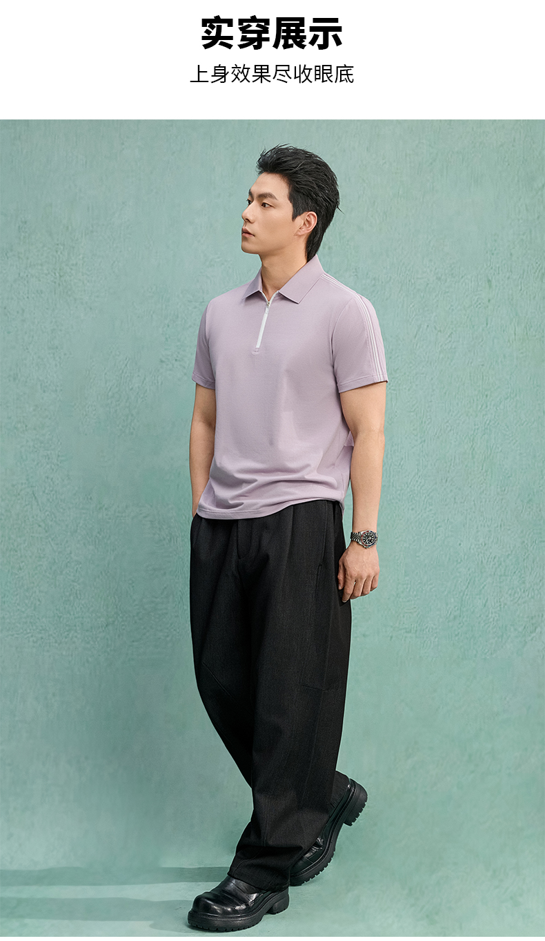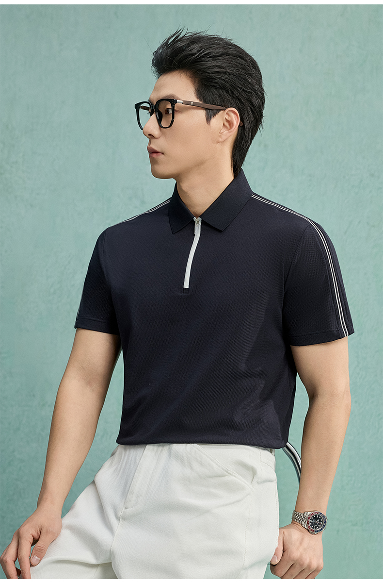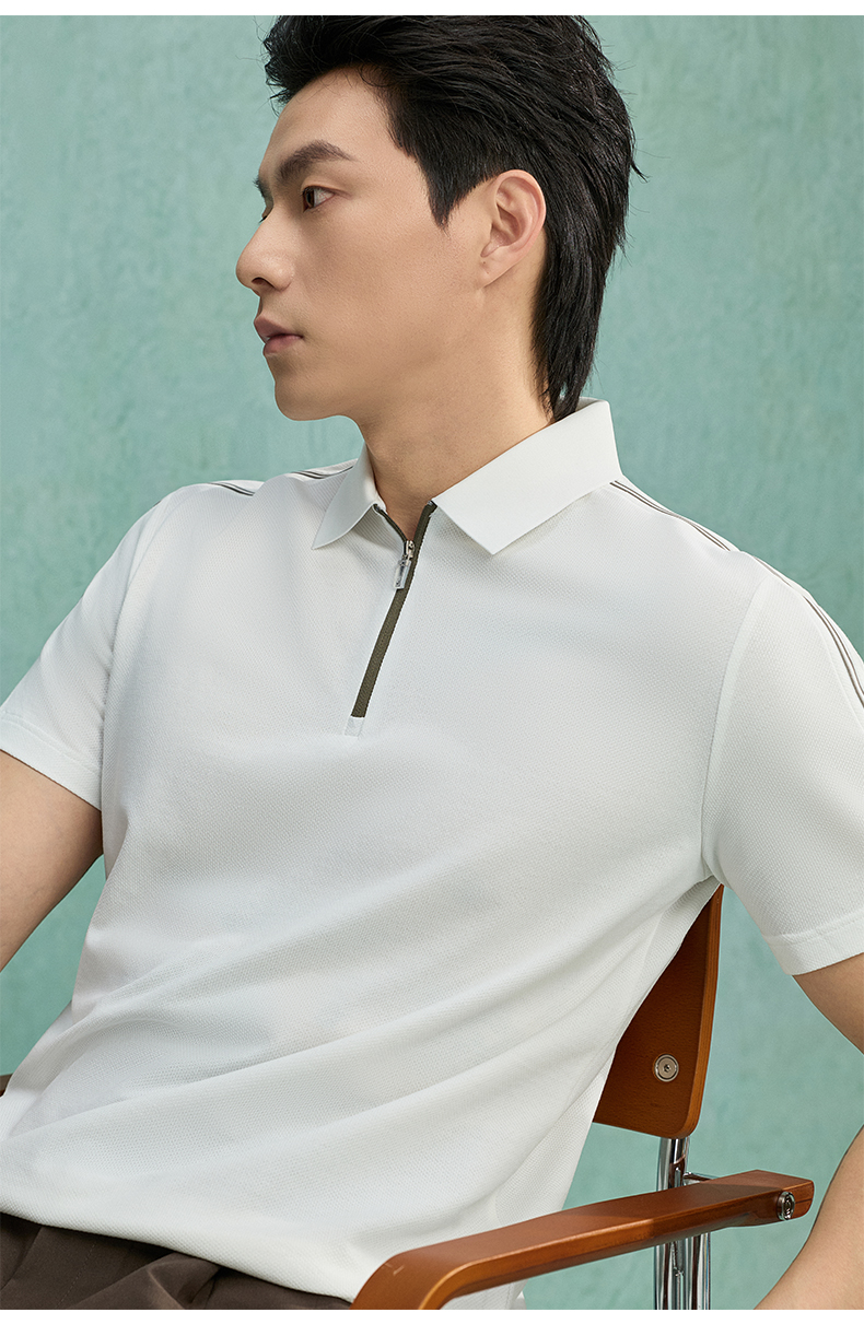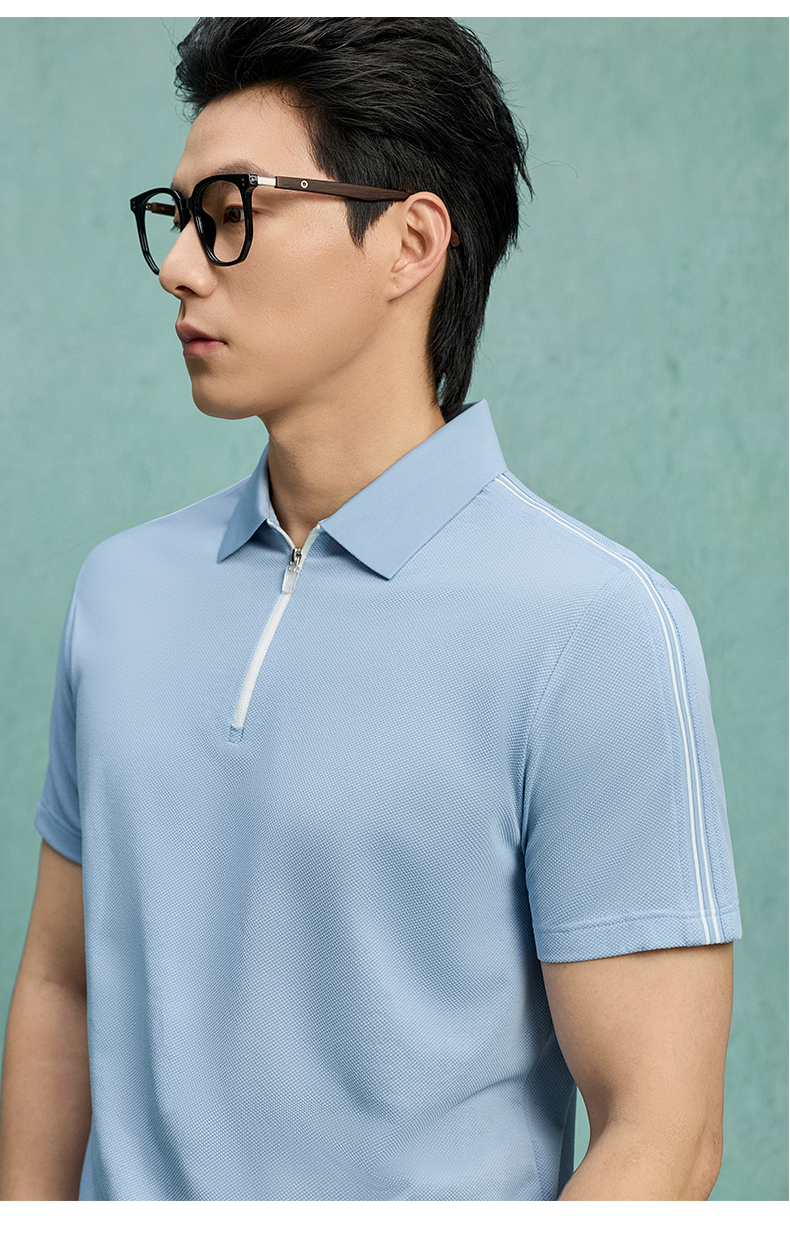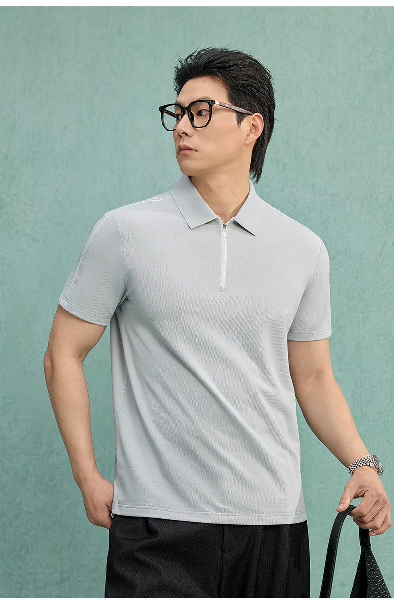 半身缘男装 夏季商务微弹亚麻抗菌防晒短袖POLO衫877