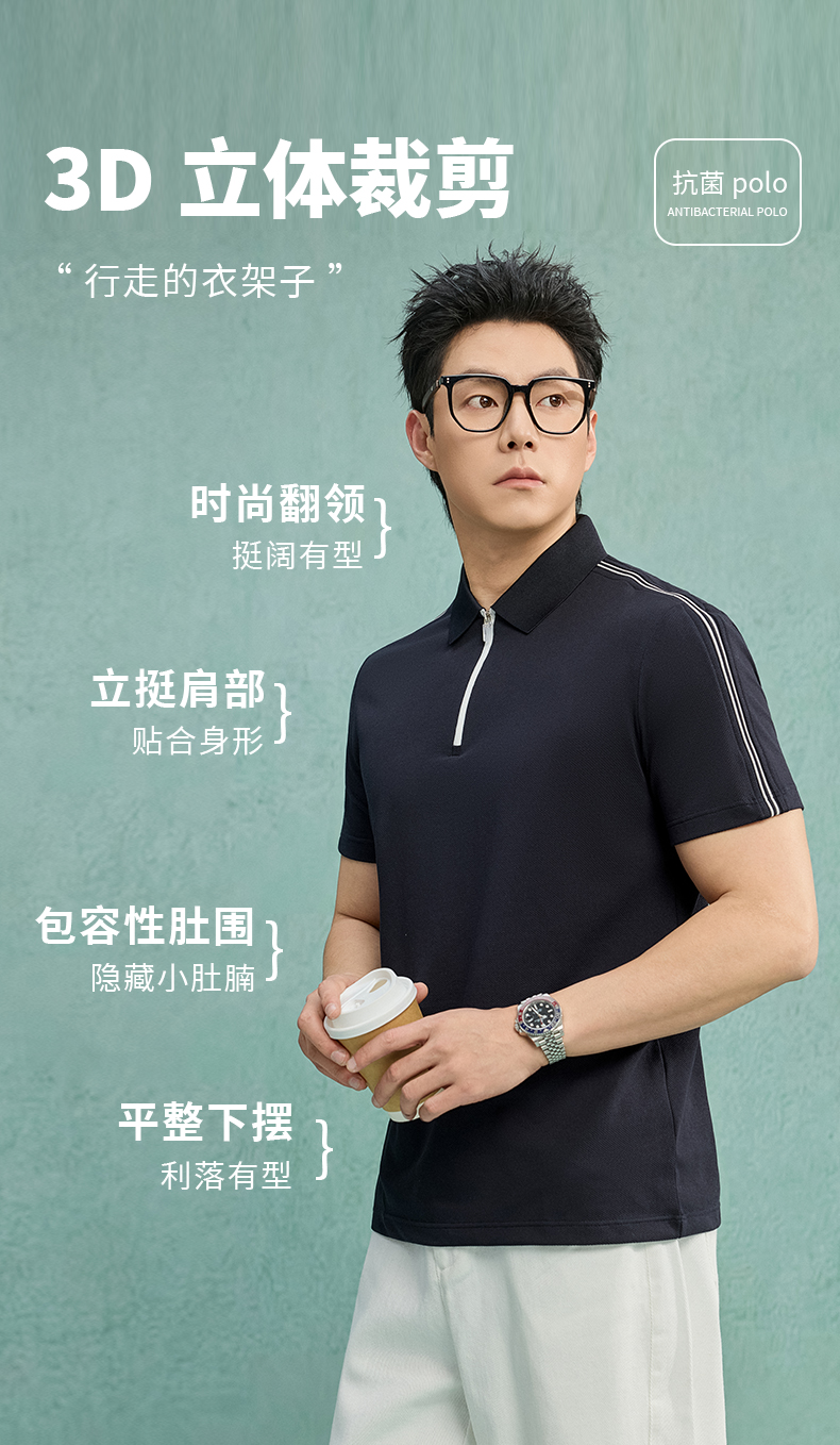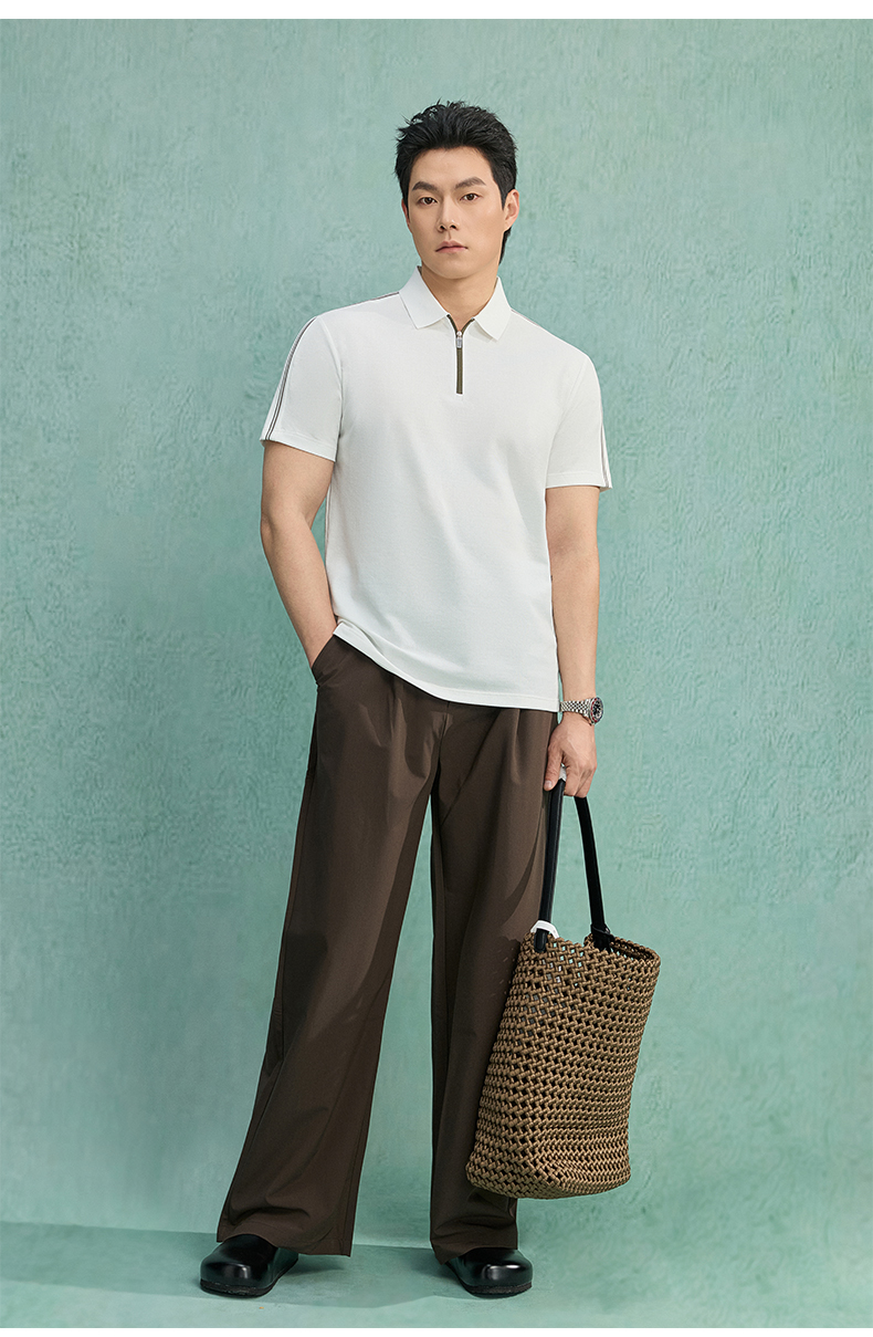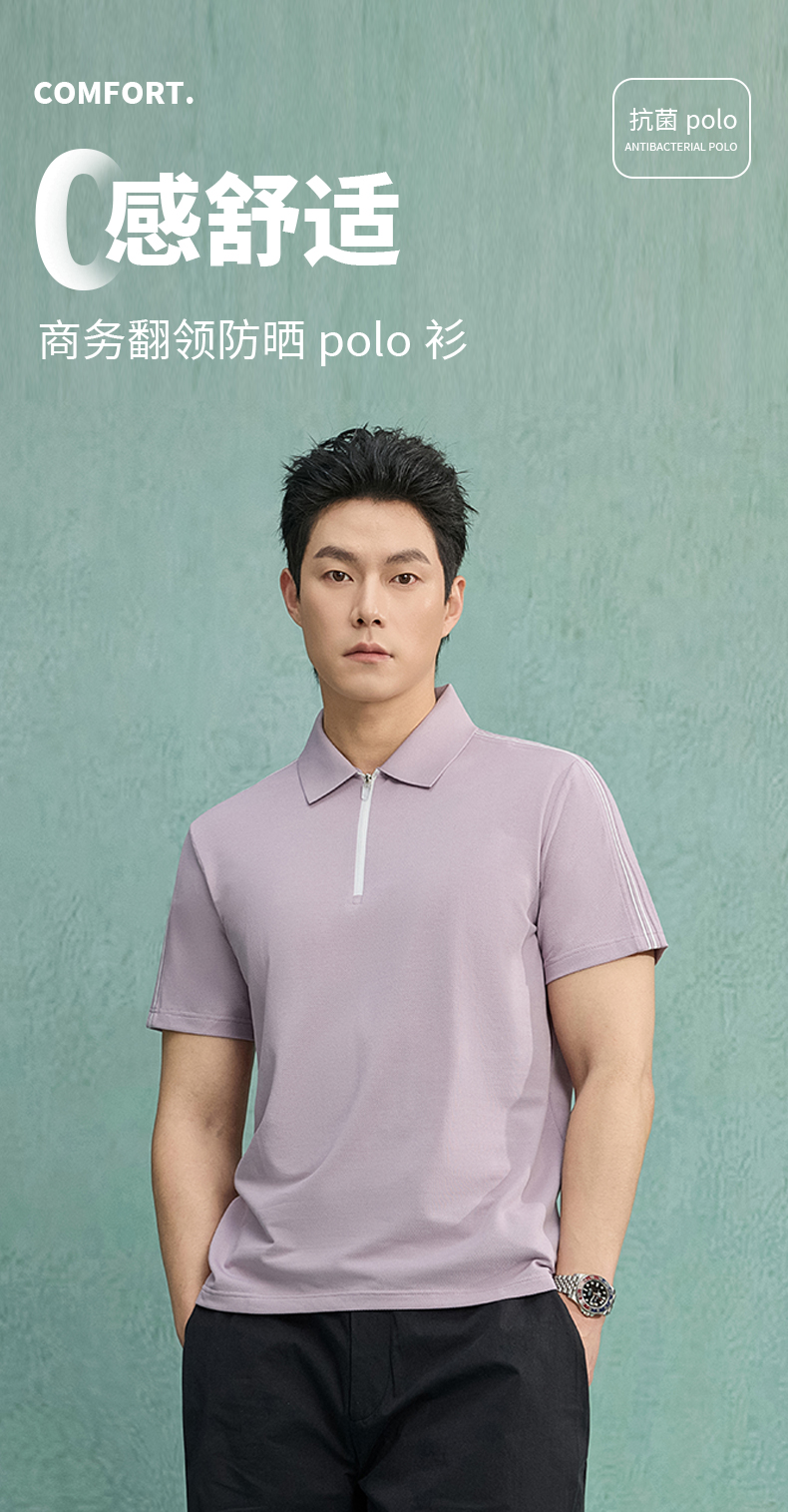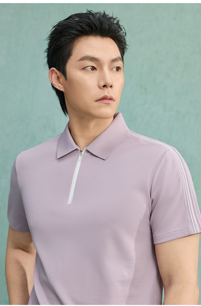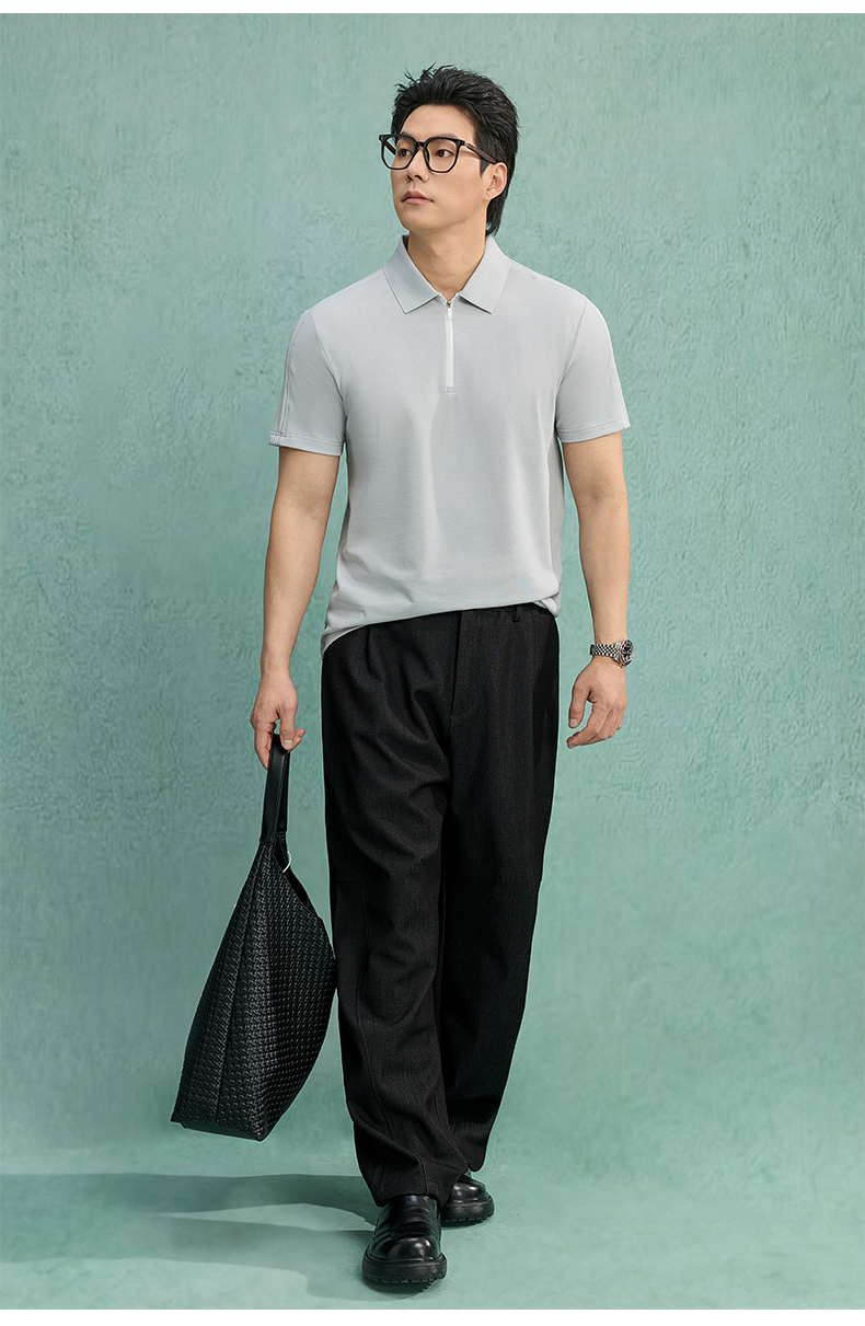 半身缘男装 夏季商务微弹亚麻抗菌防晒短袖POLO衫877