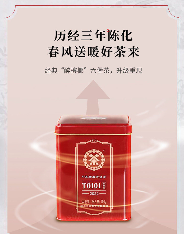 中粮-中茶 2022年T0101槟榔香广西一级窖藏黑茶六堡茶150克散茶叶罐装/原产地直发