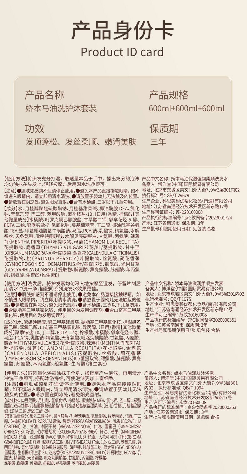 | 京G妆网备字2020000353 | 娇本马油润肤沐浴露 |