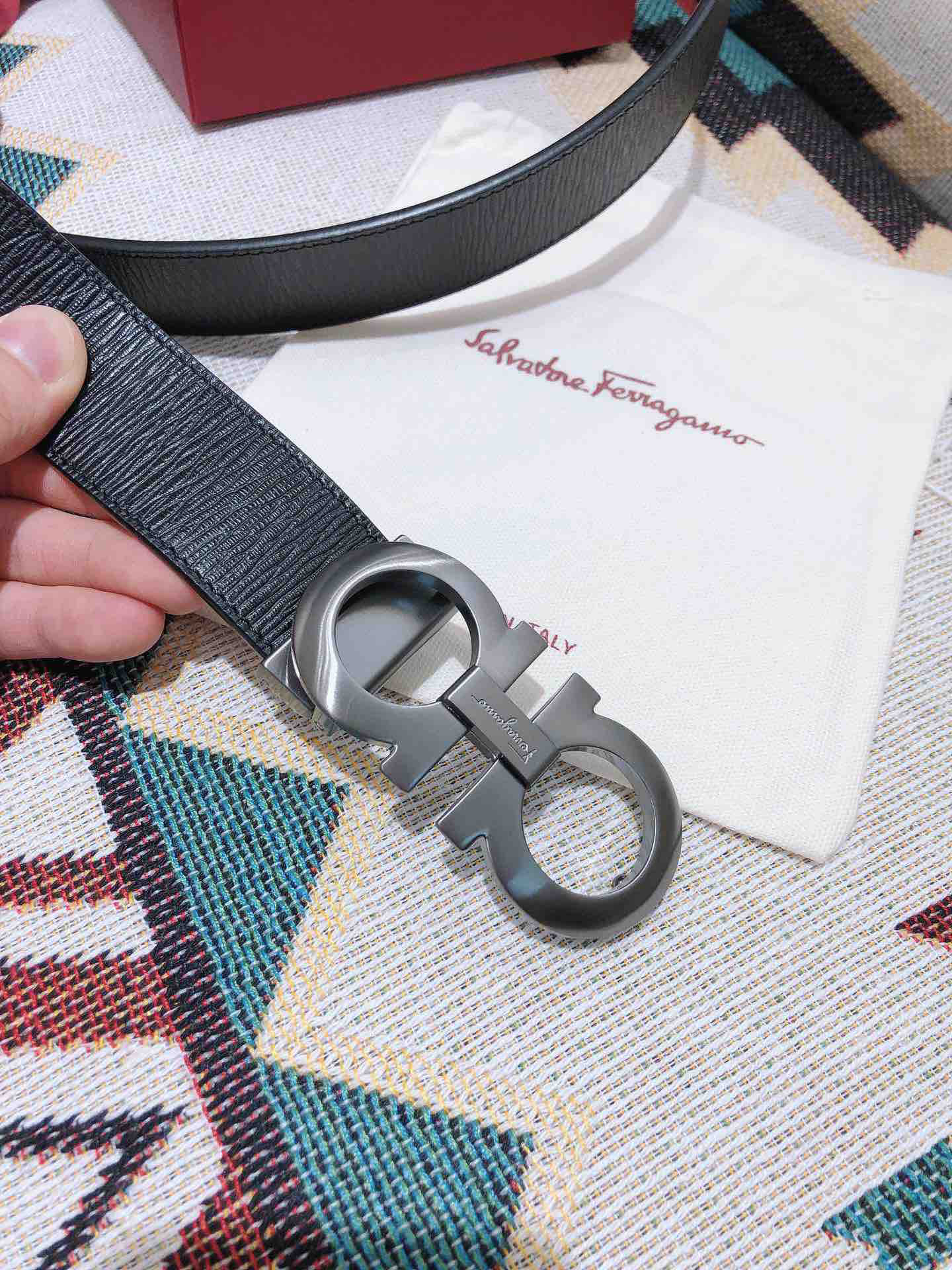SF菲拉格慕-枪色扣-水波纹牛皮