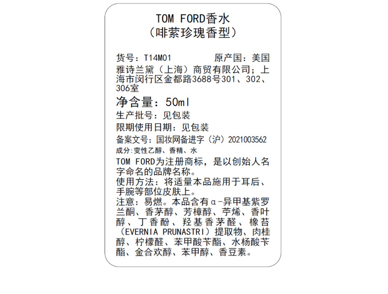 TF 啡萦珍瑰香水咖啡玫瑰香水