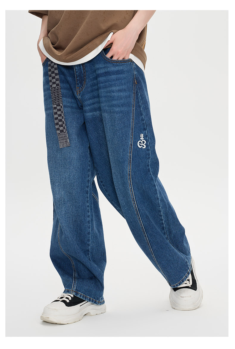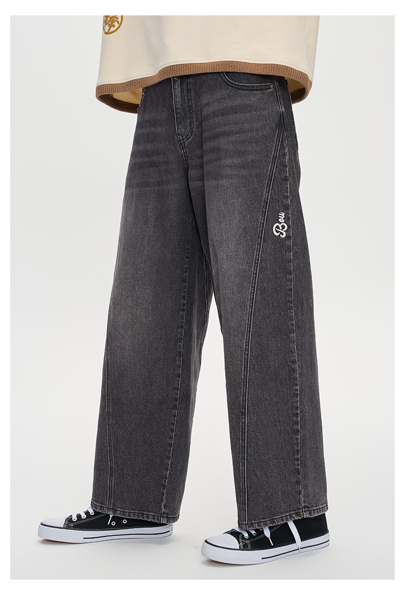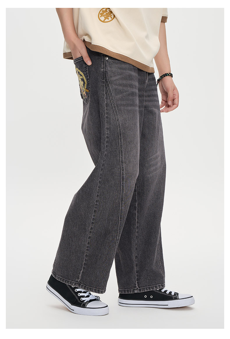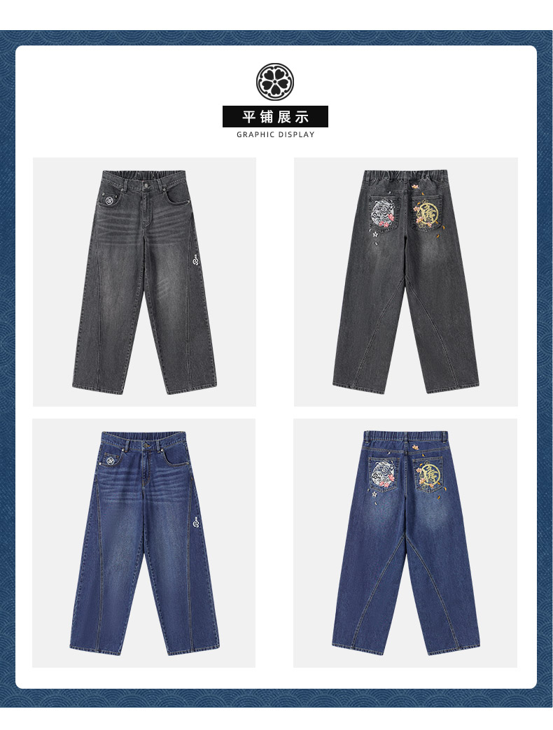 ONIARAI/鬼洗25秋冬棒达摩樱花弯线廓形分割牛仔长裤男式 25N4409