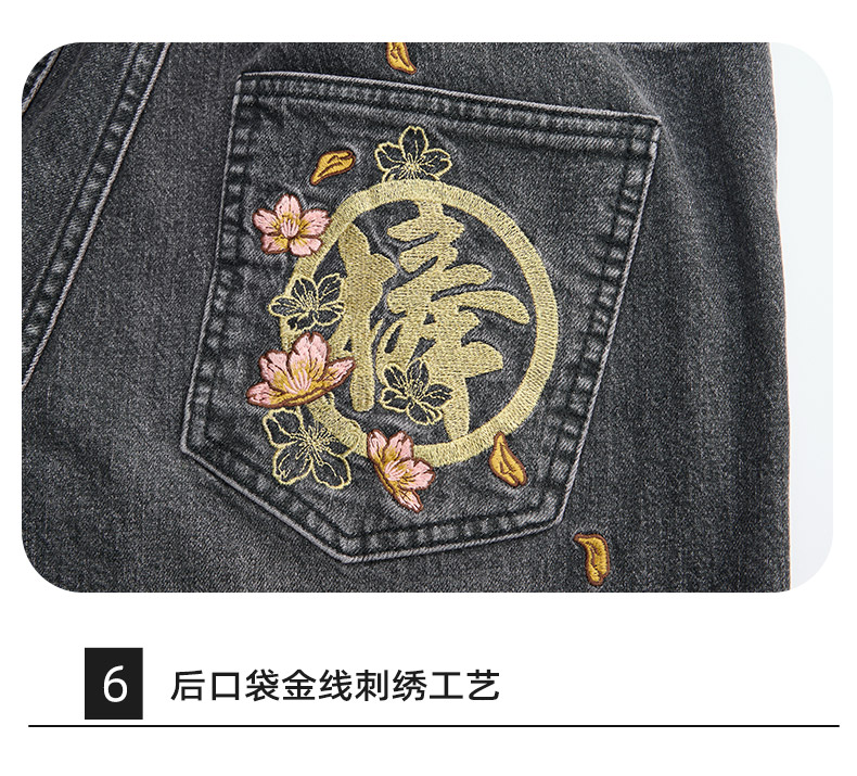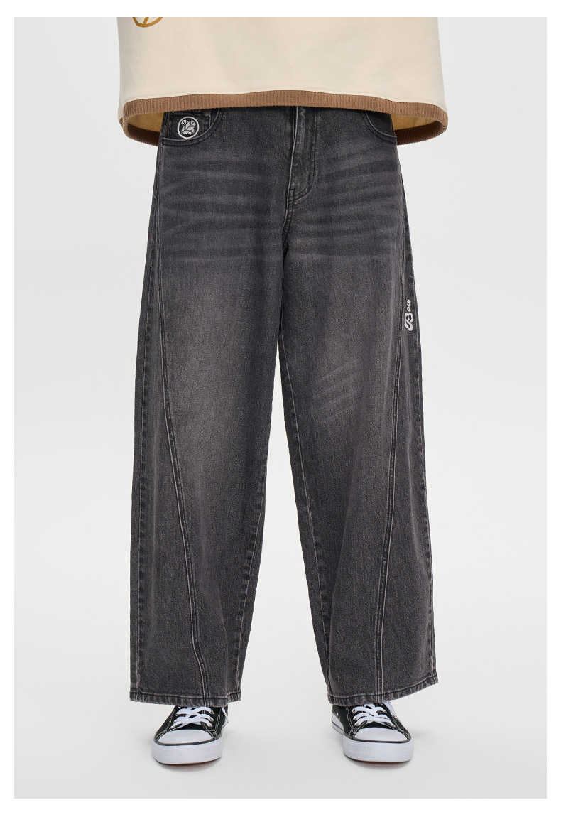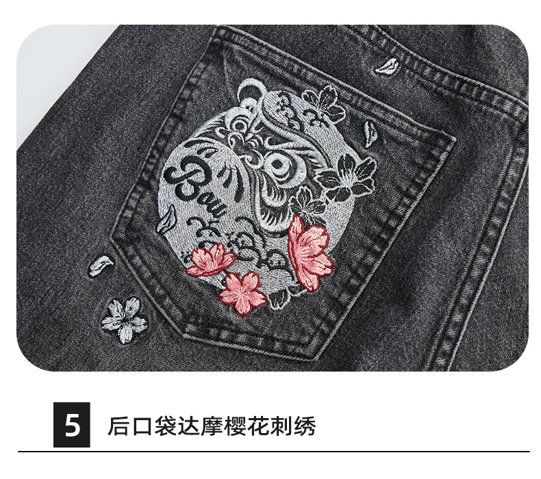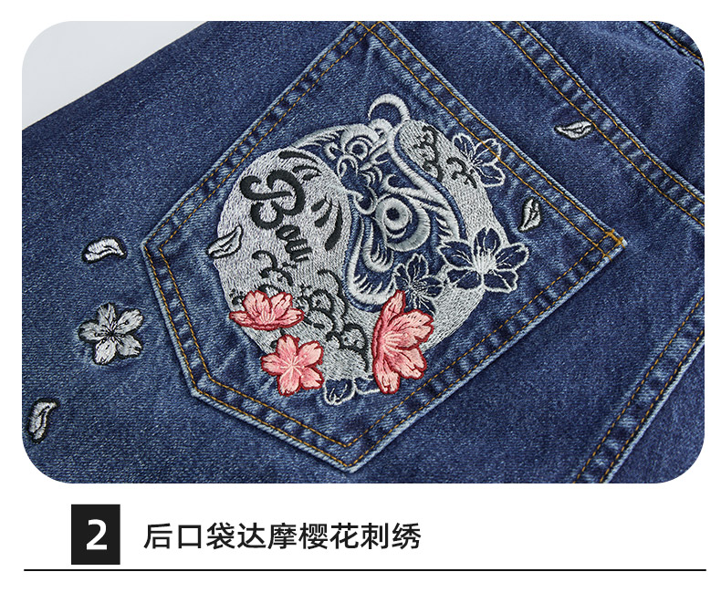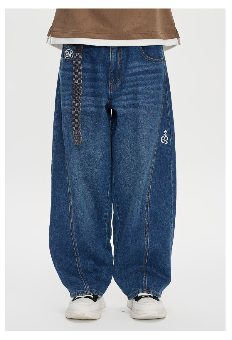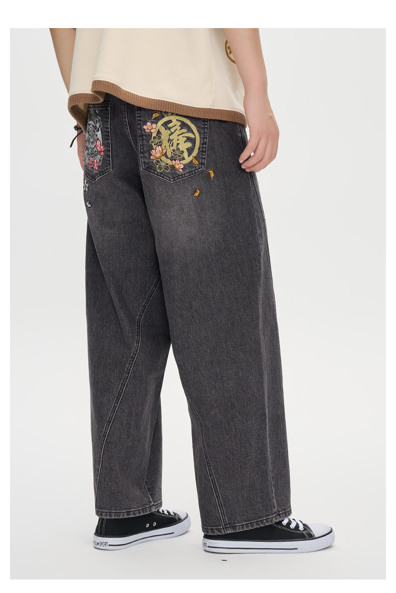 ONIARAI/鬼洗25秋冬棒达摩樱花弯线廓形分割牛仔长裤男式 25N4409