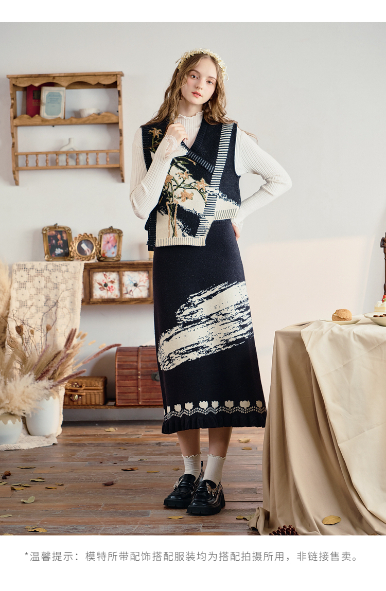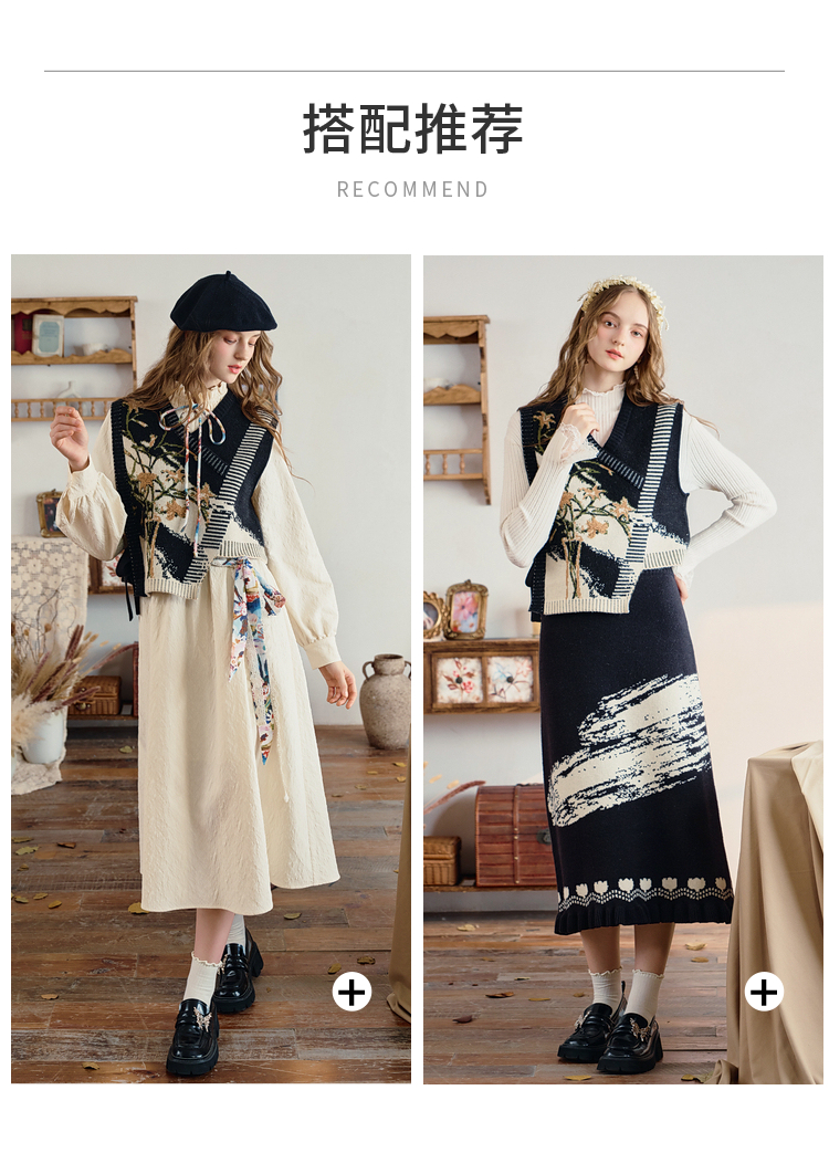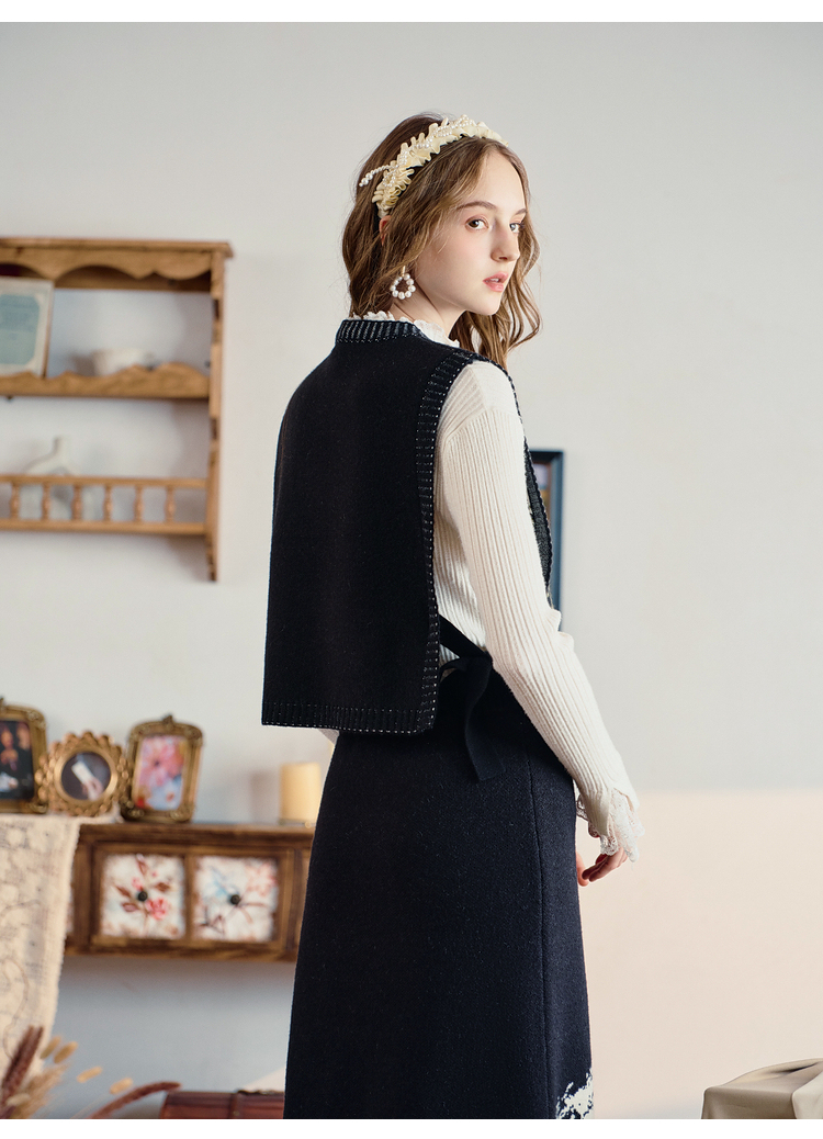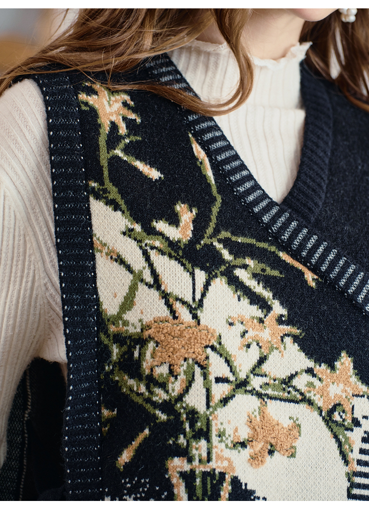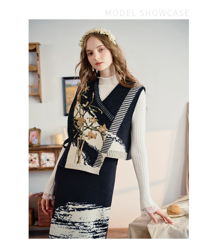 两三事梵高文艺塞纳花房2025冬新款毛巾绣绑带花色毛织马甲女宽松