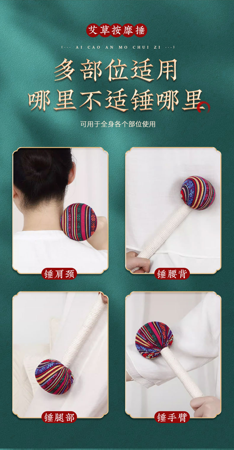 艾草锤厂家 颈椎腰部背部艾草填充养生锤批发