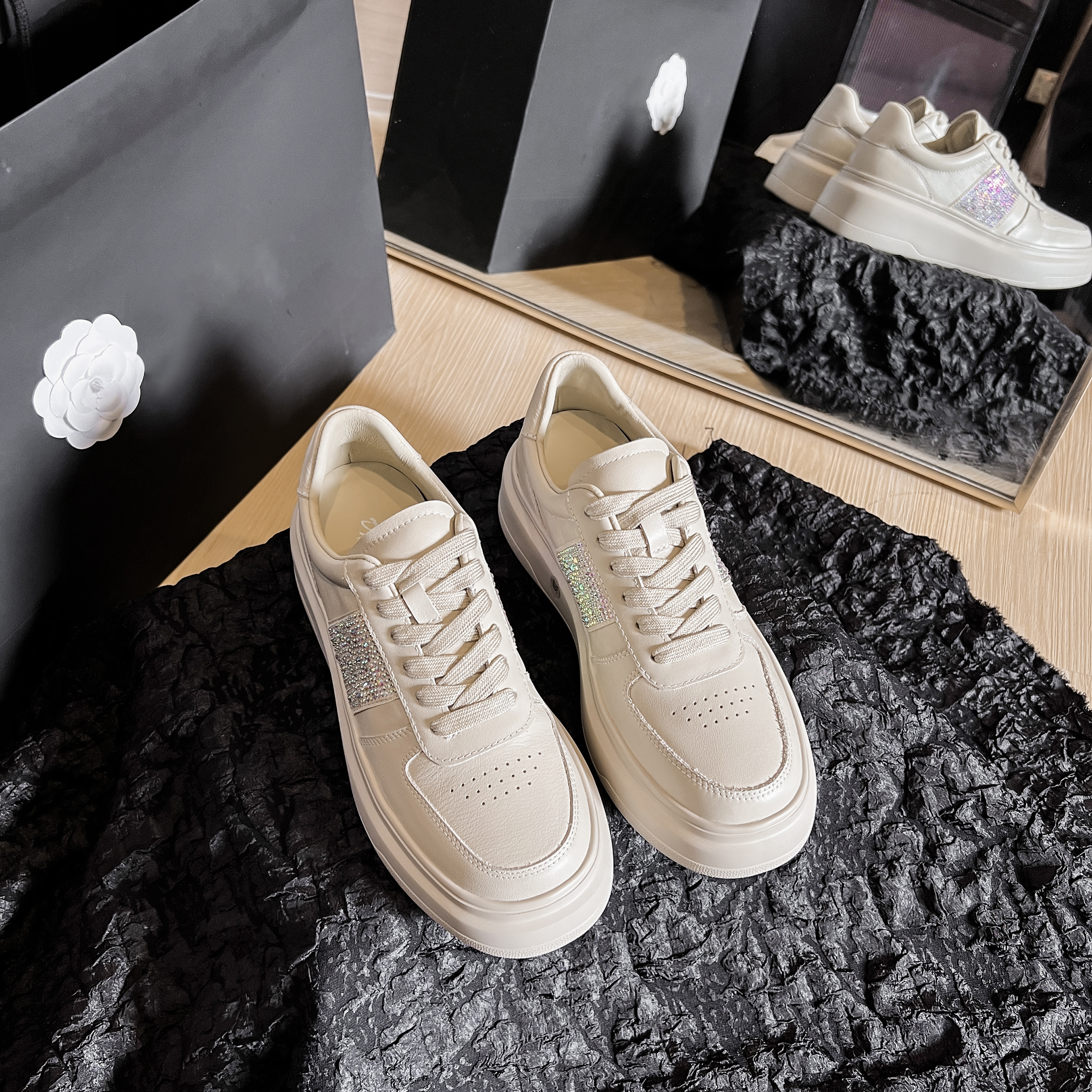 【颜色】:白色、杏色 【内里材质】:羊皮