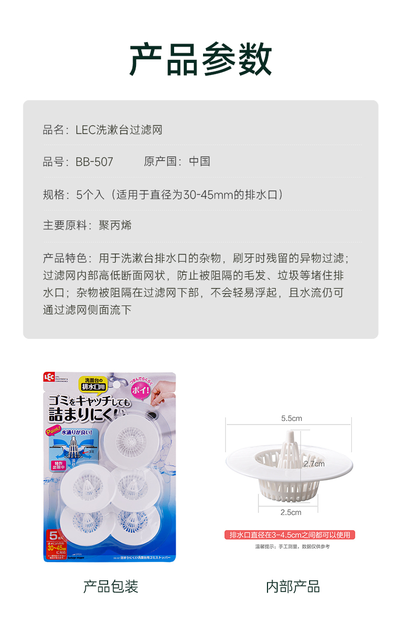 日本LEC丽固洗漱台用杂物过滤网
