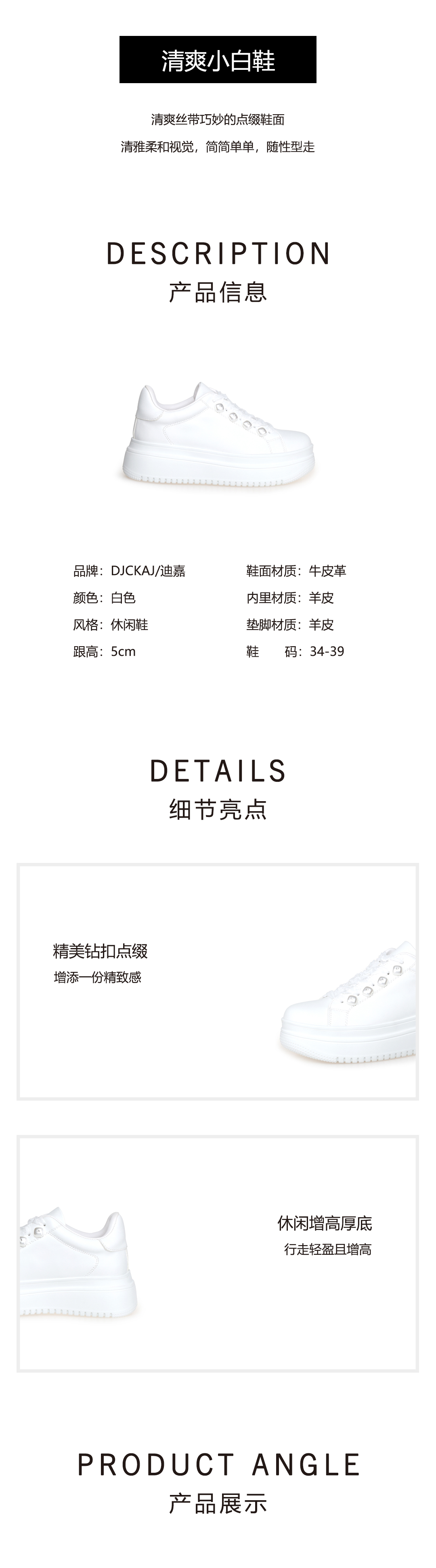 豪麟名鞋奥莱迪嘉女鞋时尚休闲鞋牛皮革DJJGA51WX006白色 原价1960元