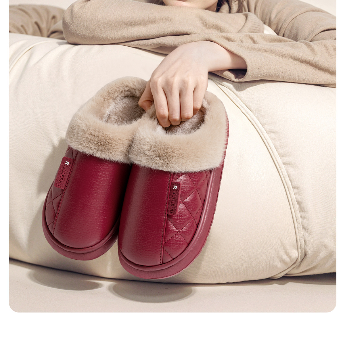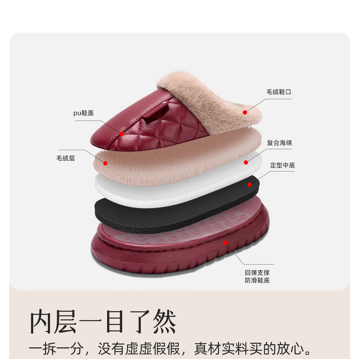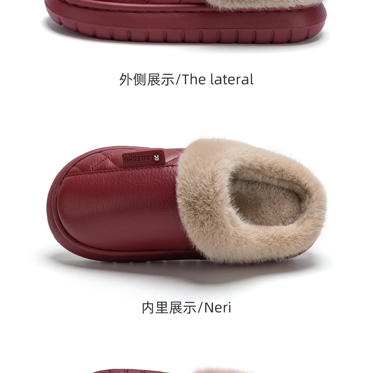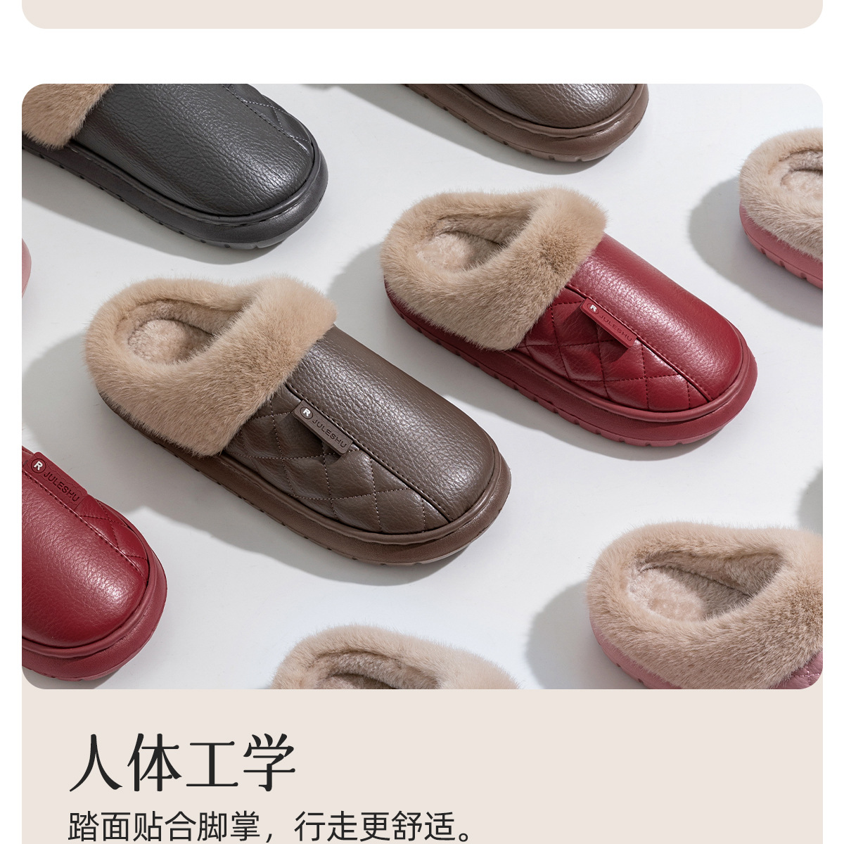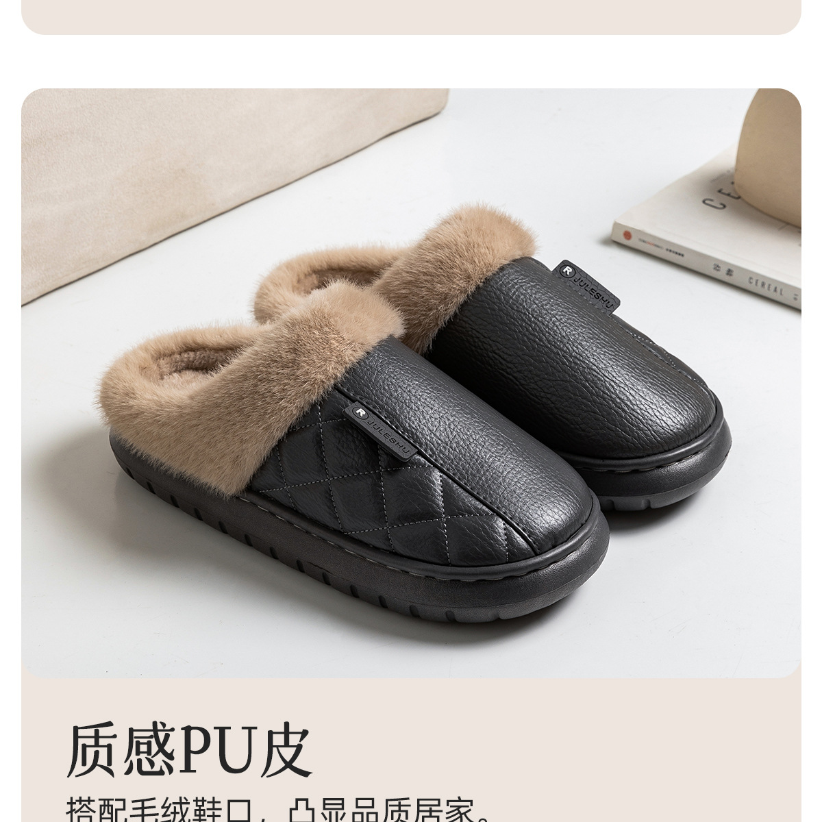 洁丽雅防水老人棉拖鞋女冬季防滑2025新款室内家居保暖pu皮拖鞋男