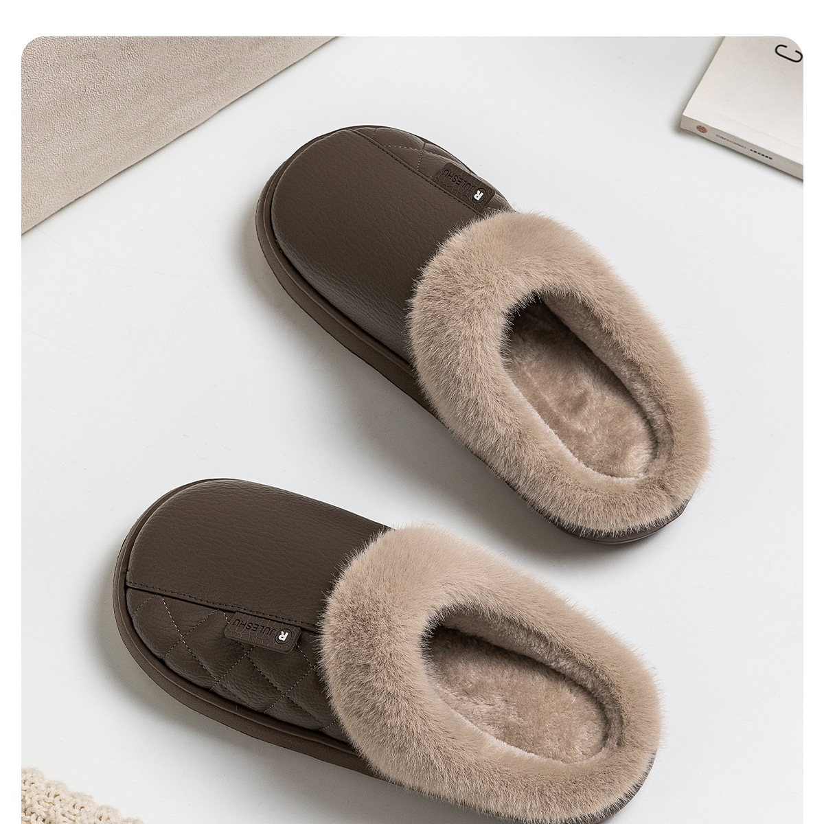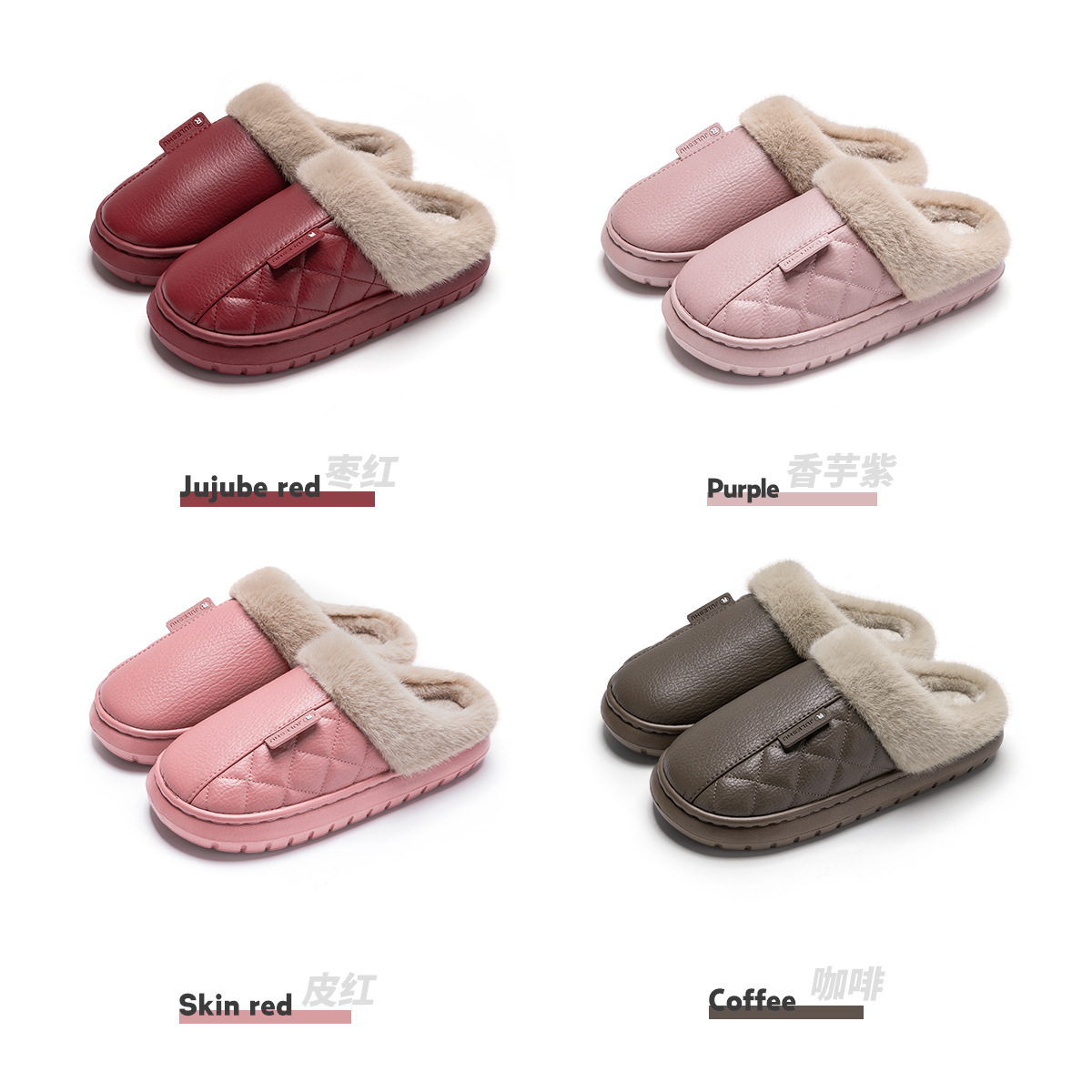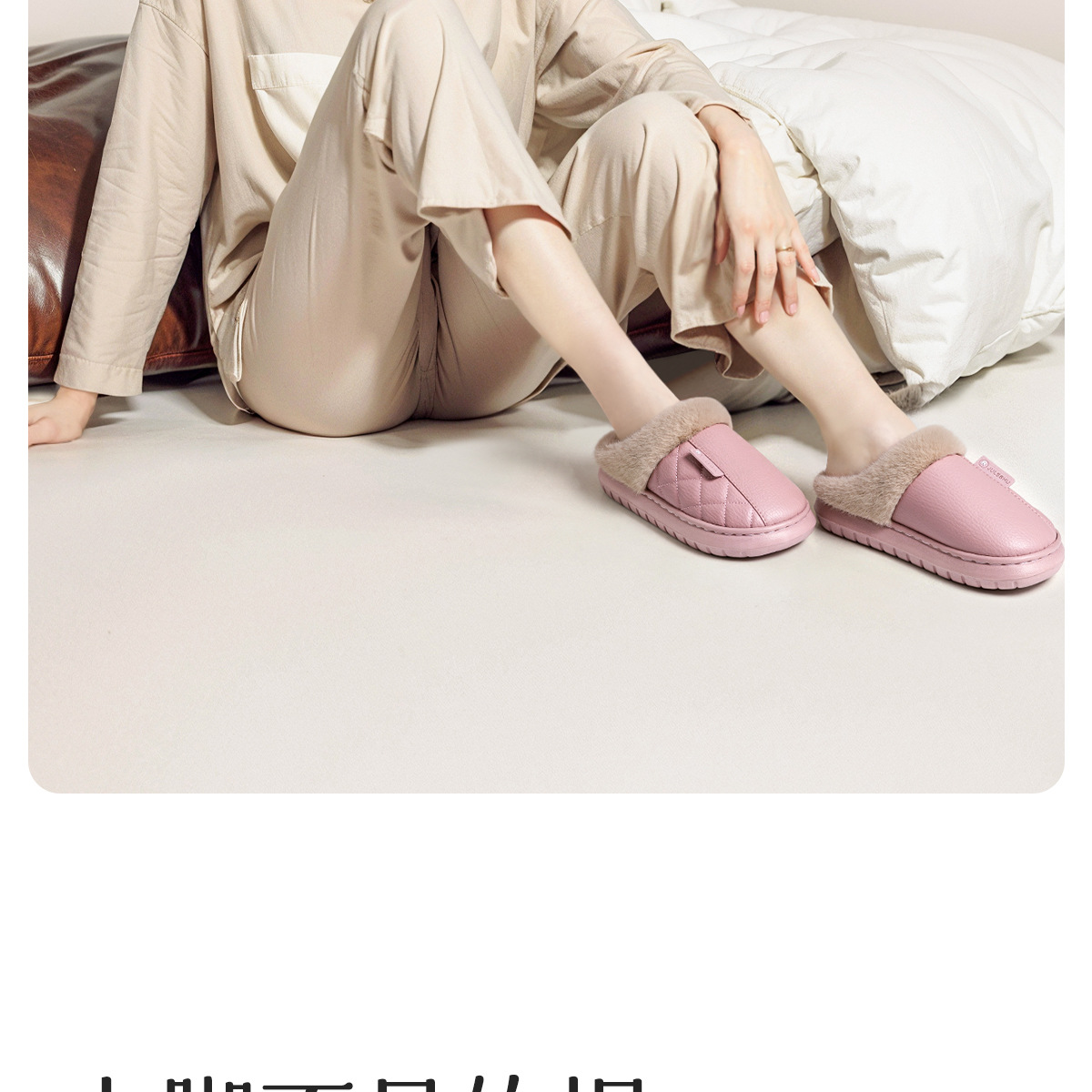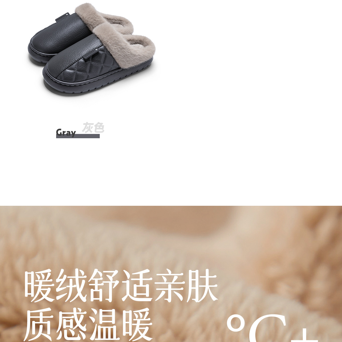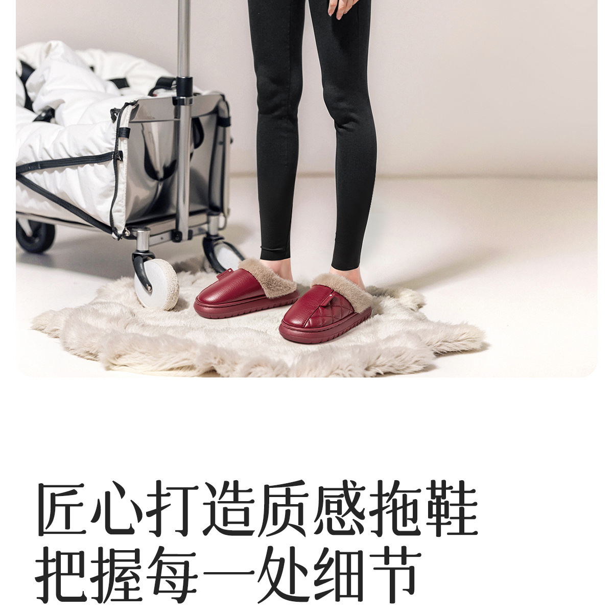 洁丽雅防水老人棉拖鞋女冬季防滑2025新款室内家居保暖pu皮拖鞋男