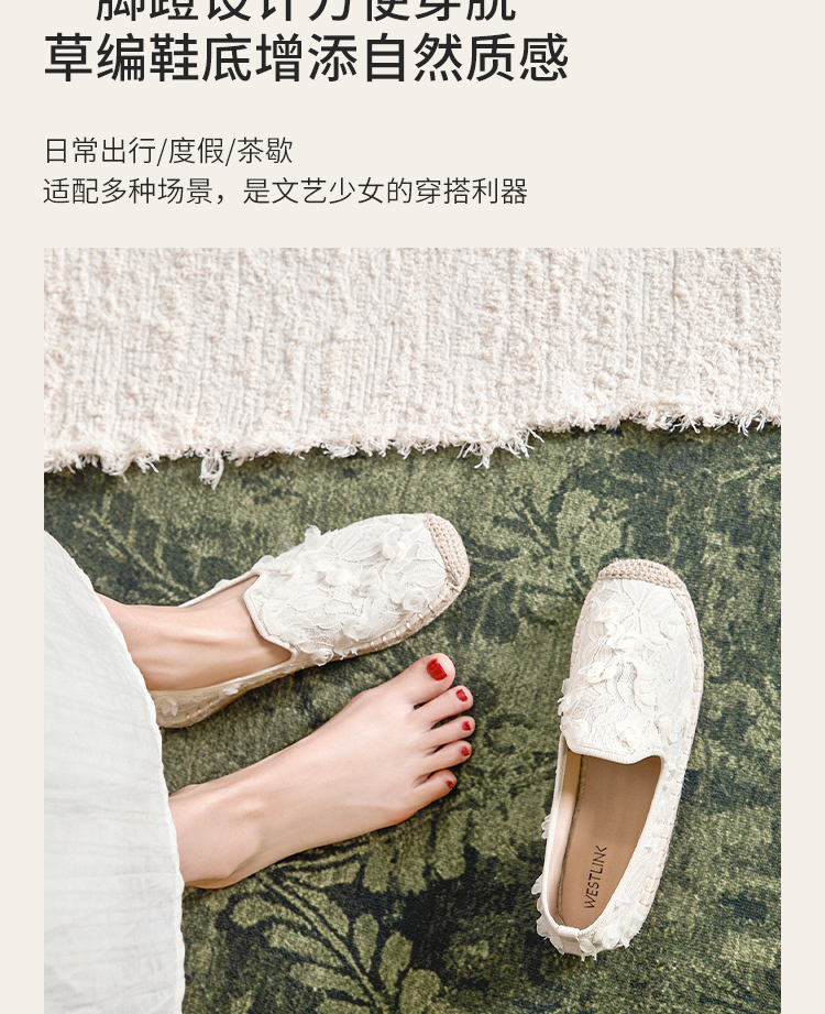 西遇一脚蹬渔夫鞋女新款夏季法式仙女风白色配裙子单鞋平底鞋V1056733