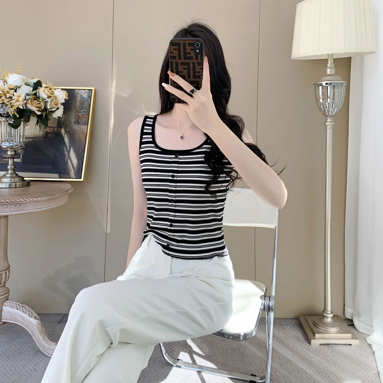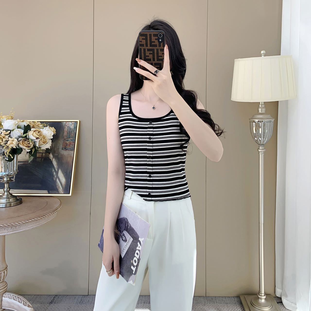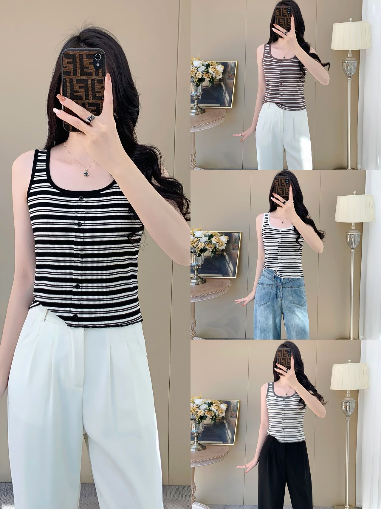 【100元3件】小香风条纹纽扣背心外穿内搭背心【FF25501】